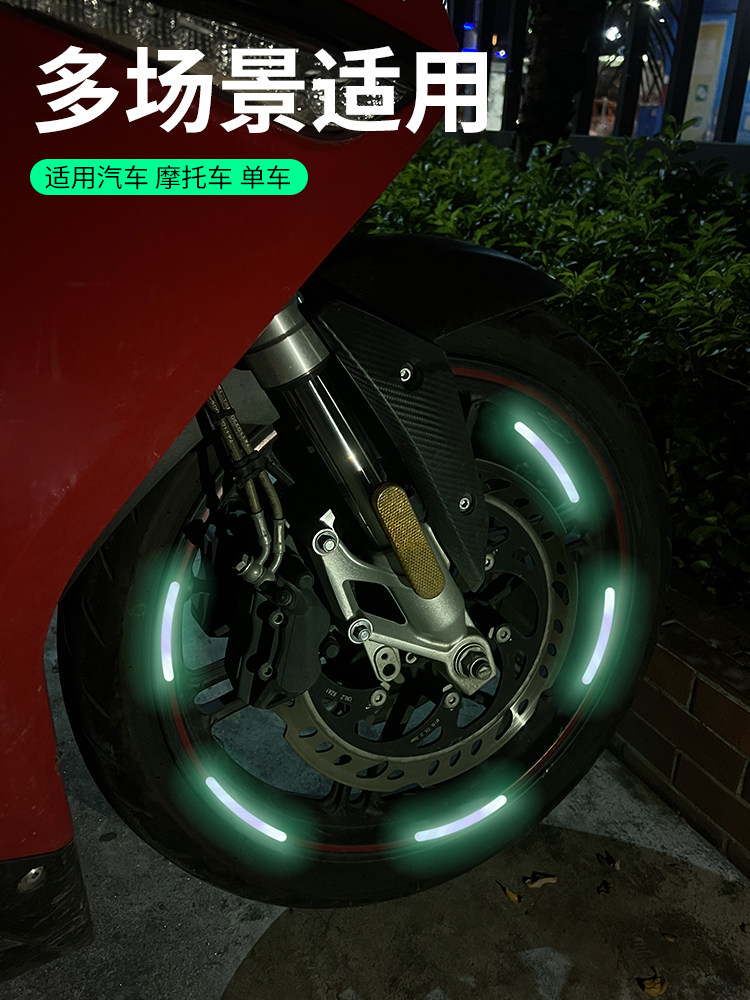 汽车轮毂反光贴个性创意炫彩轮胎警示贴纸电动车彩虹夜光装饰车贴