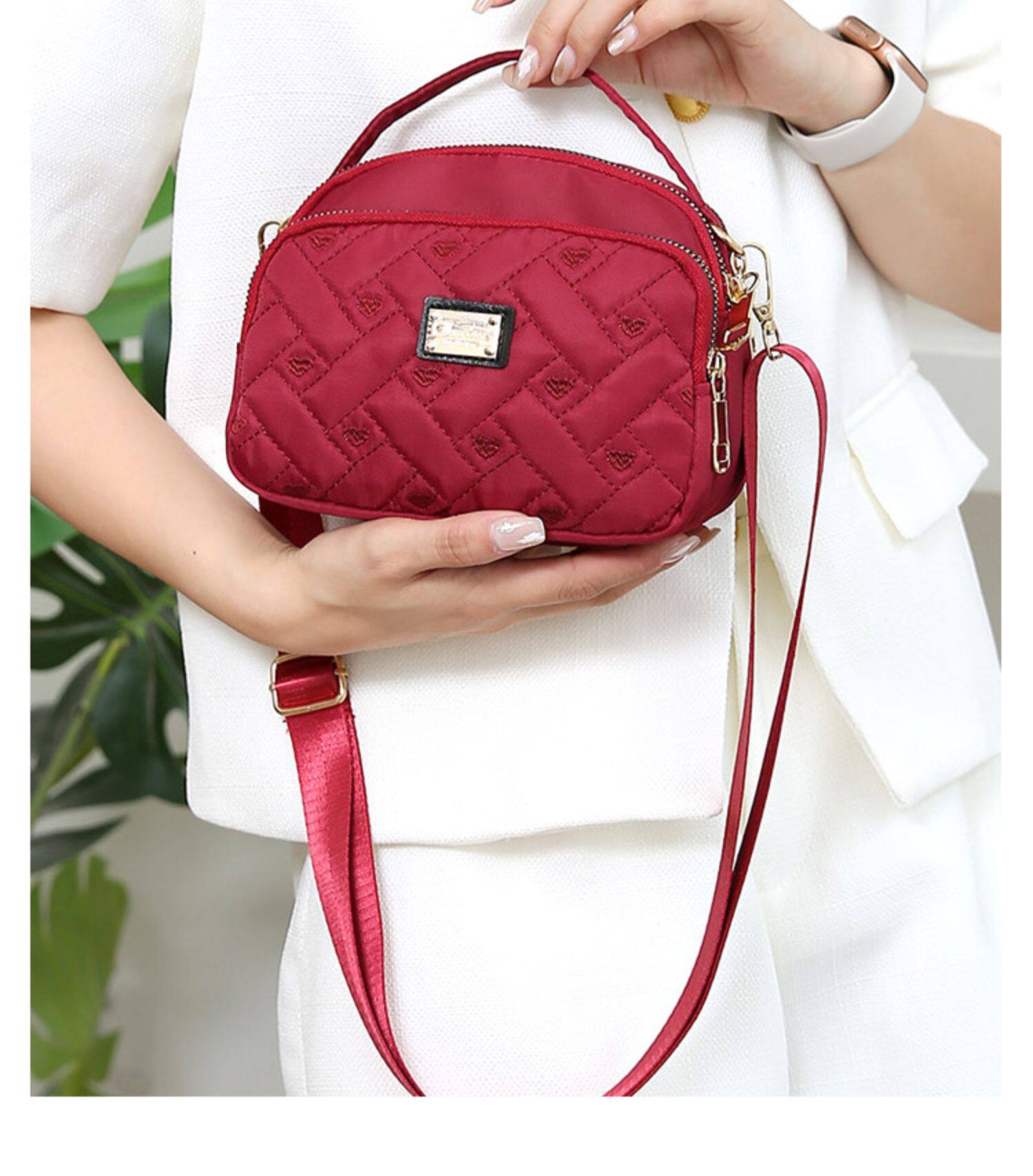 网红休闲小包尼龙布斜挎包新款简约时尚爱心包百搭单肩包防泼水