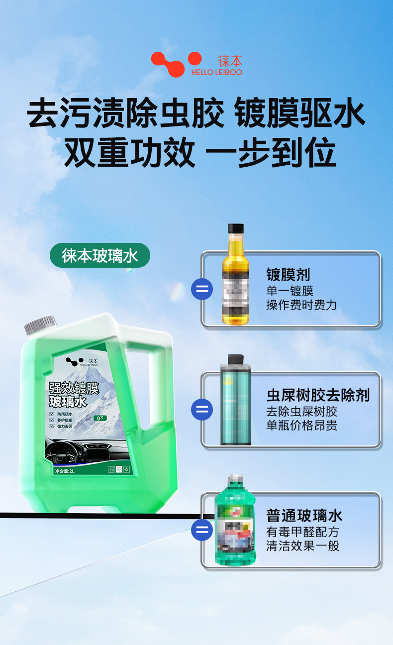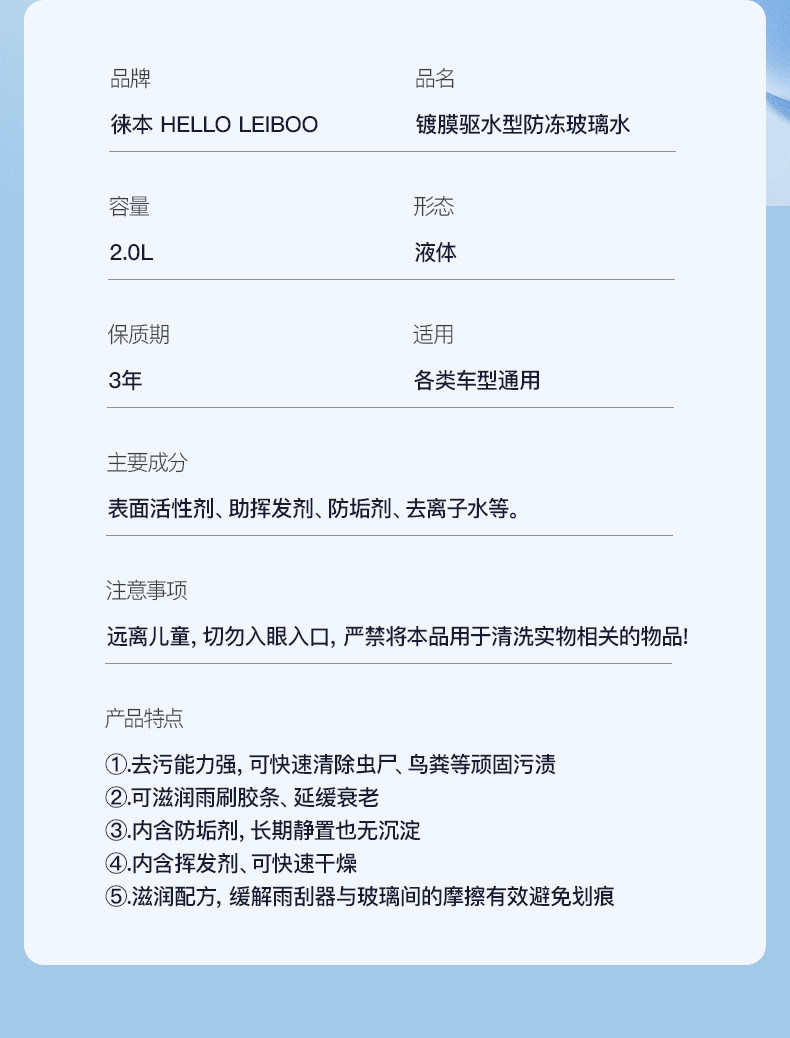 徕本去油膜玻璃水汽车用雨刮水强力除虫胶去除剂夏季车用四季通用