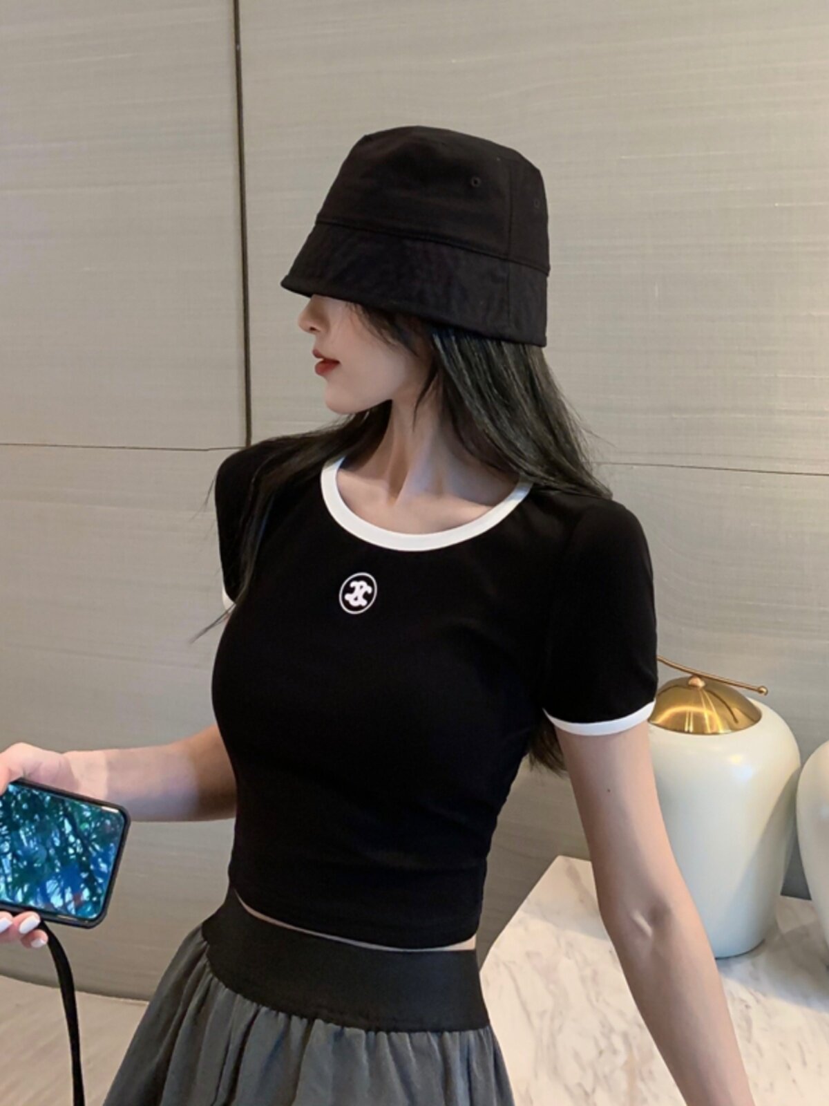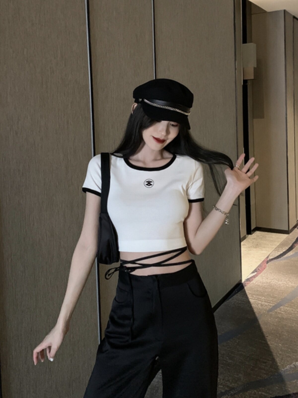 黑色小香风短款打底衫 / S