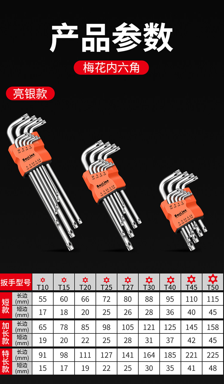 内六角扳手套装梅花米字六棱6角螺丝刀工具组合加长扳手六边形