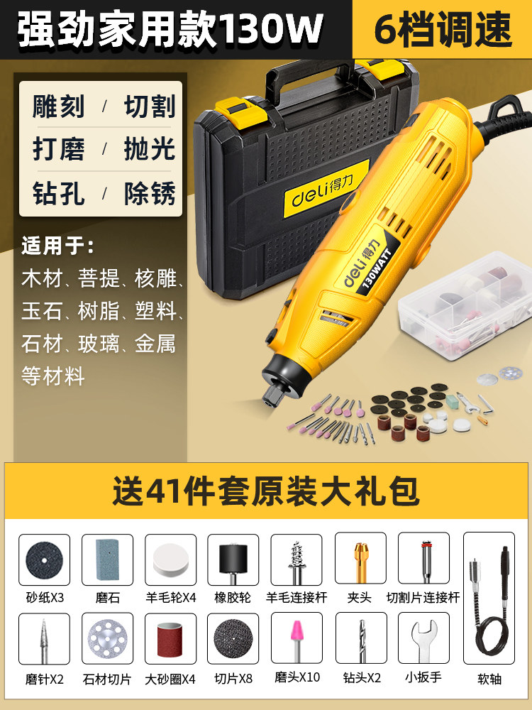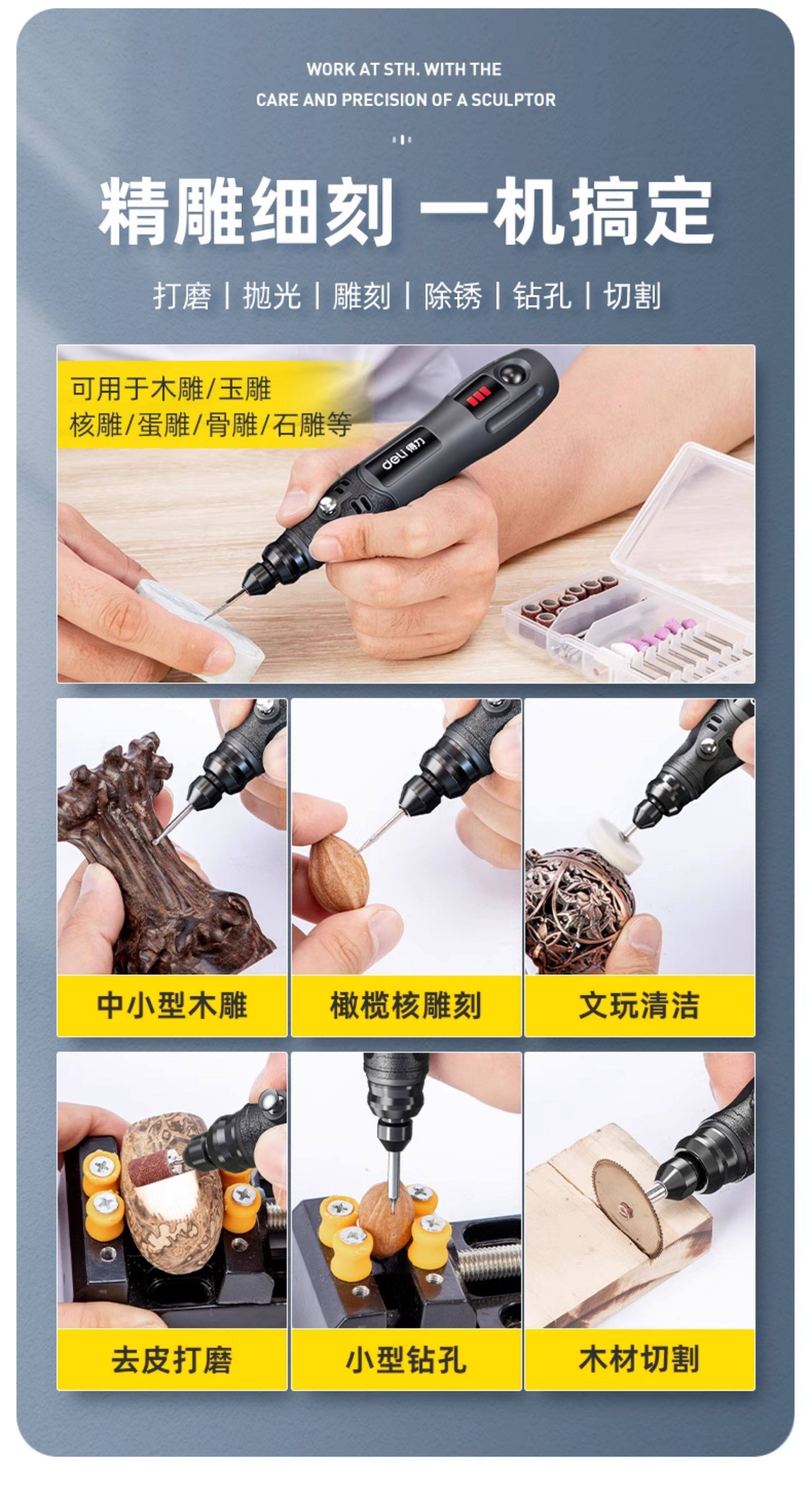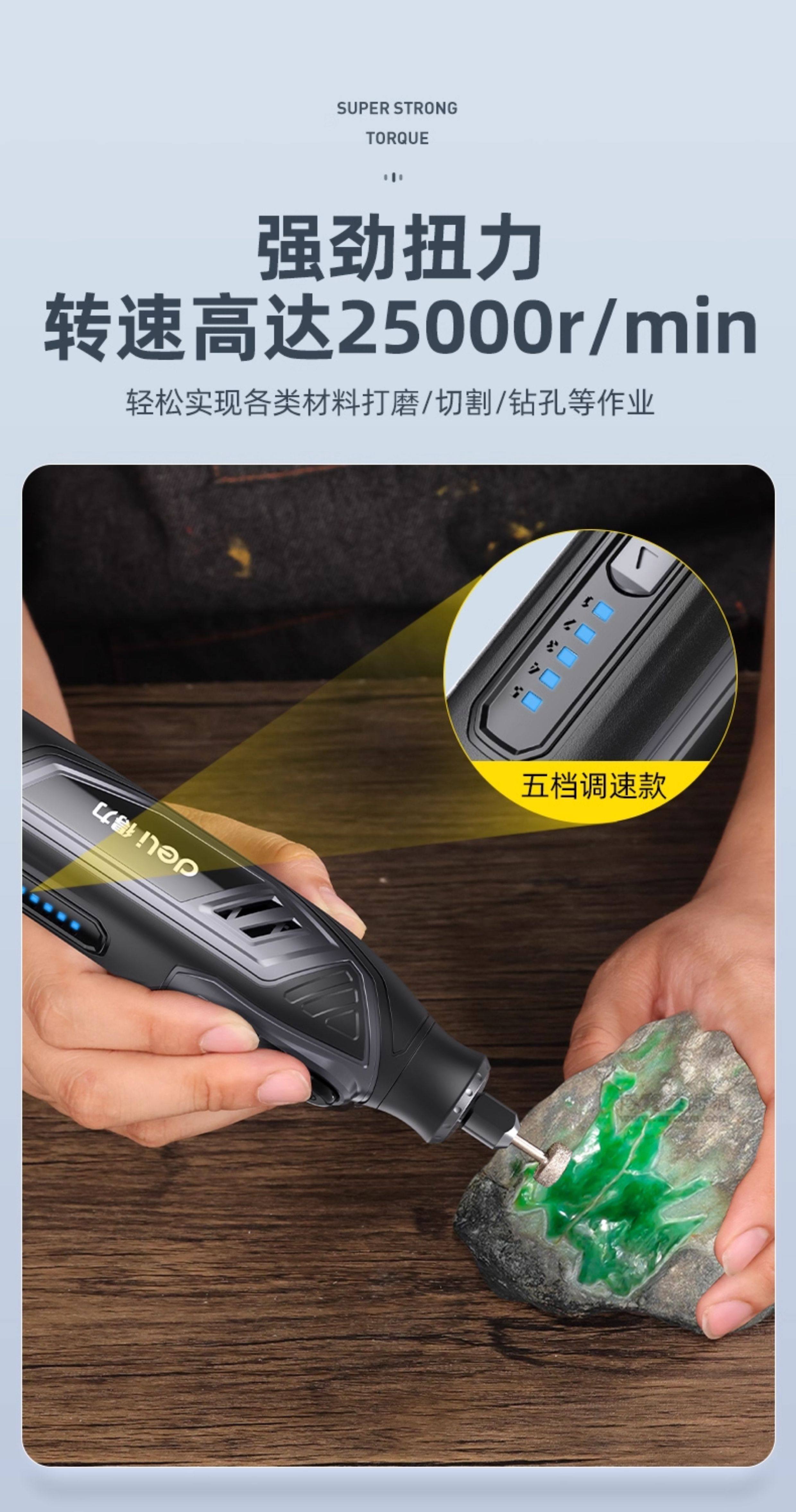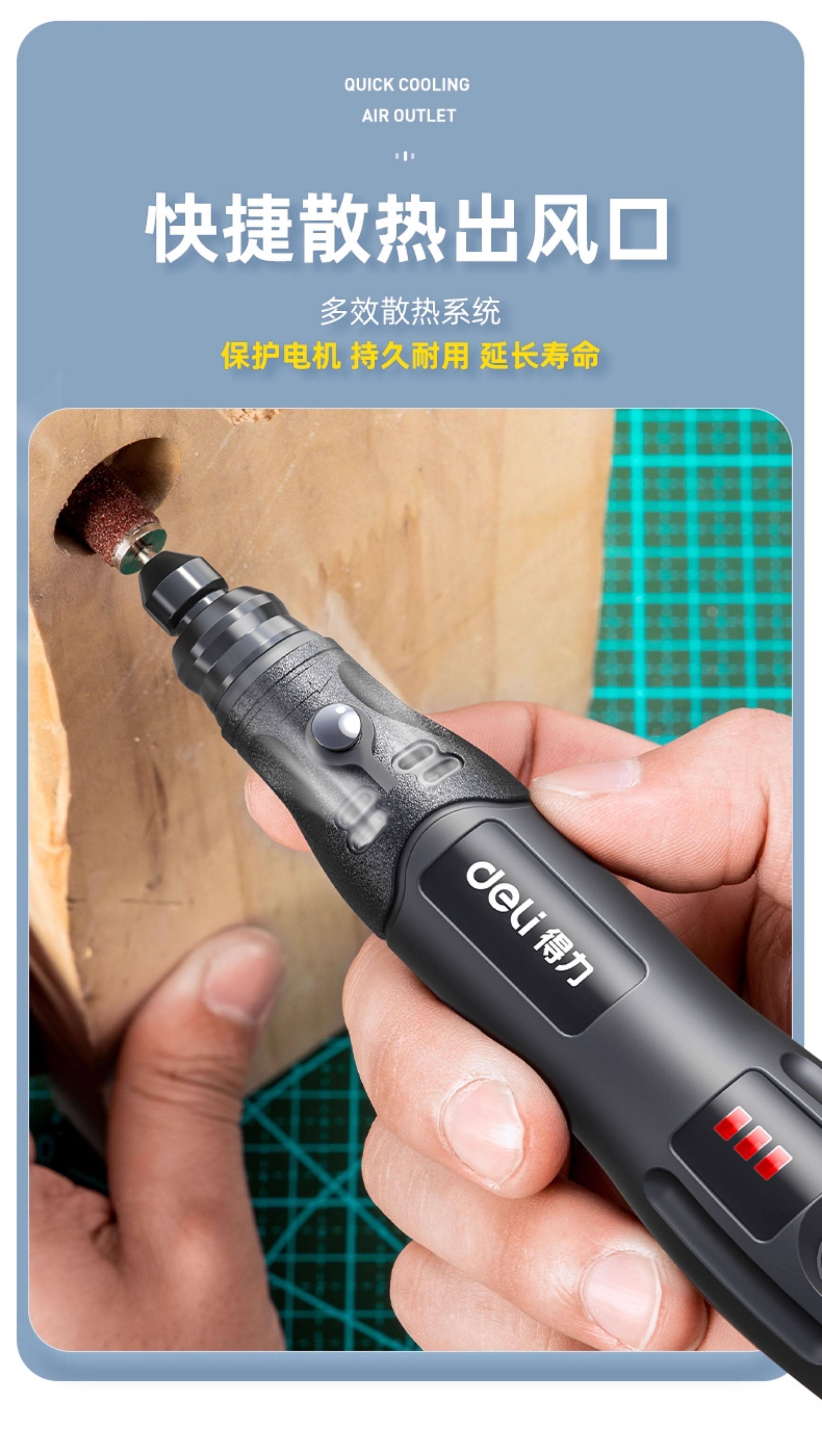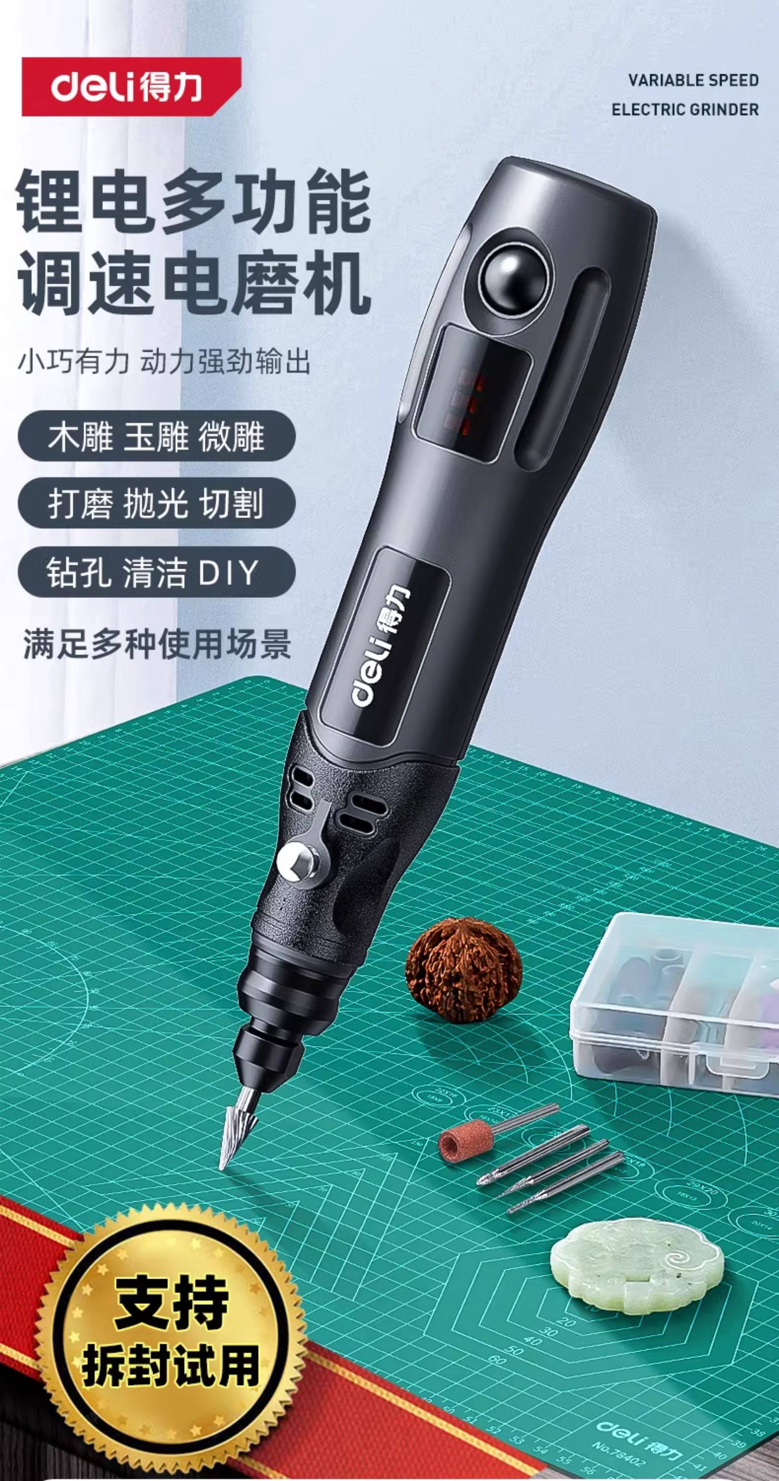 得力电磨机手持小型打磨抛光玉石神器木雕刻文玩核桃迷你电动工具