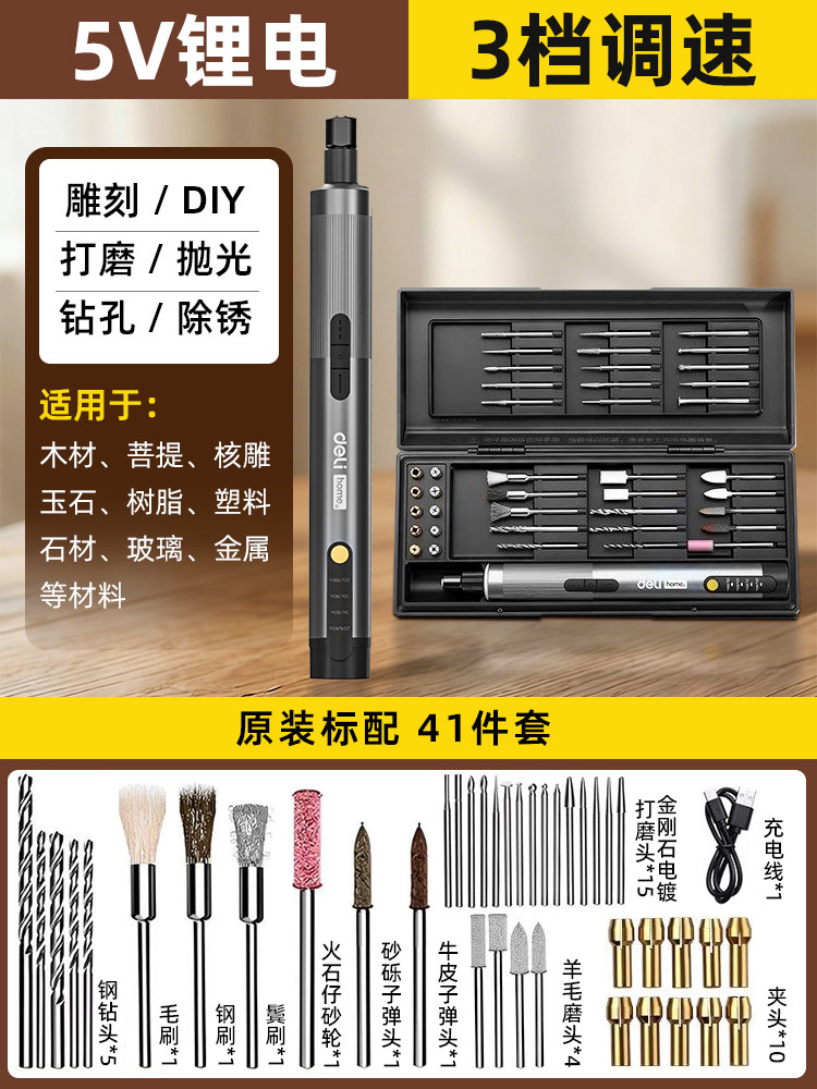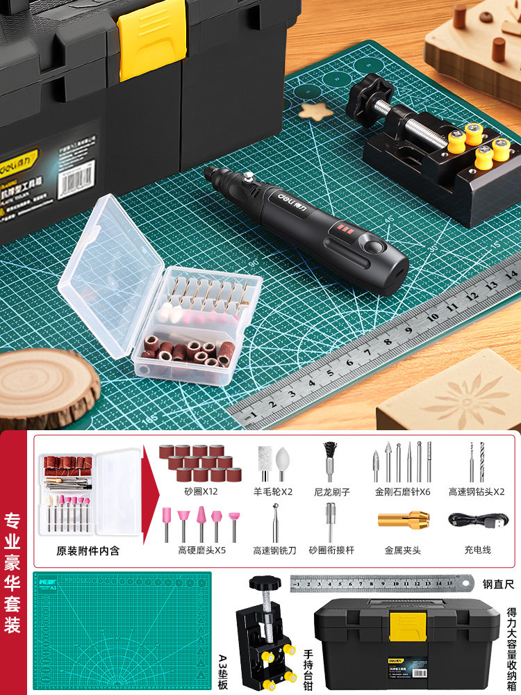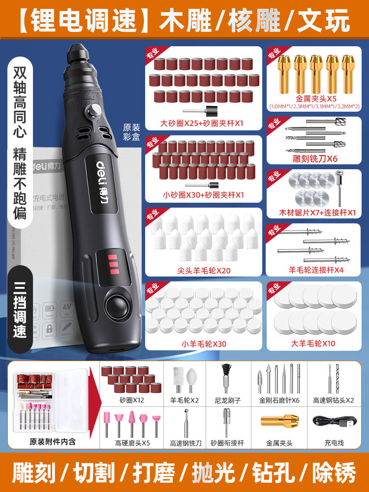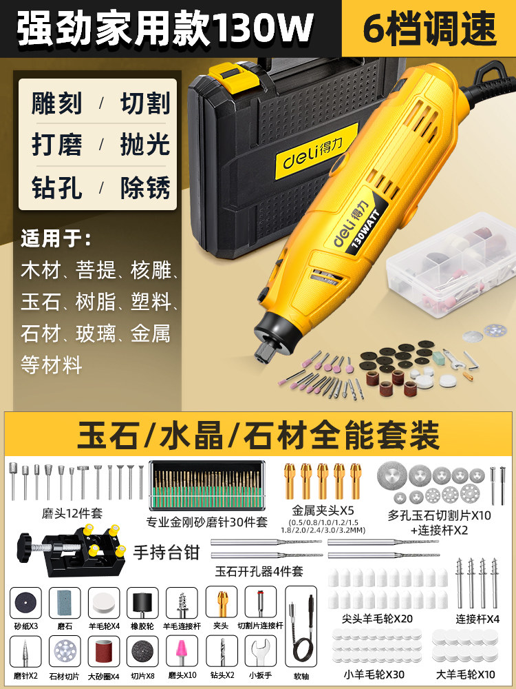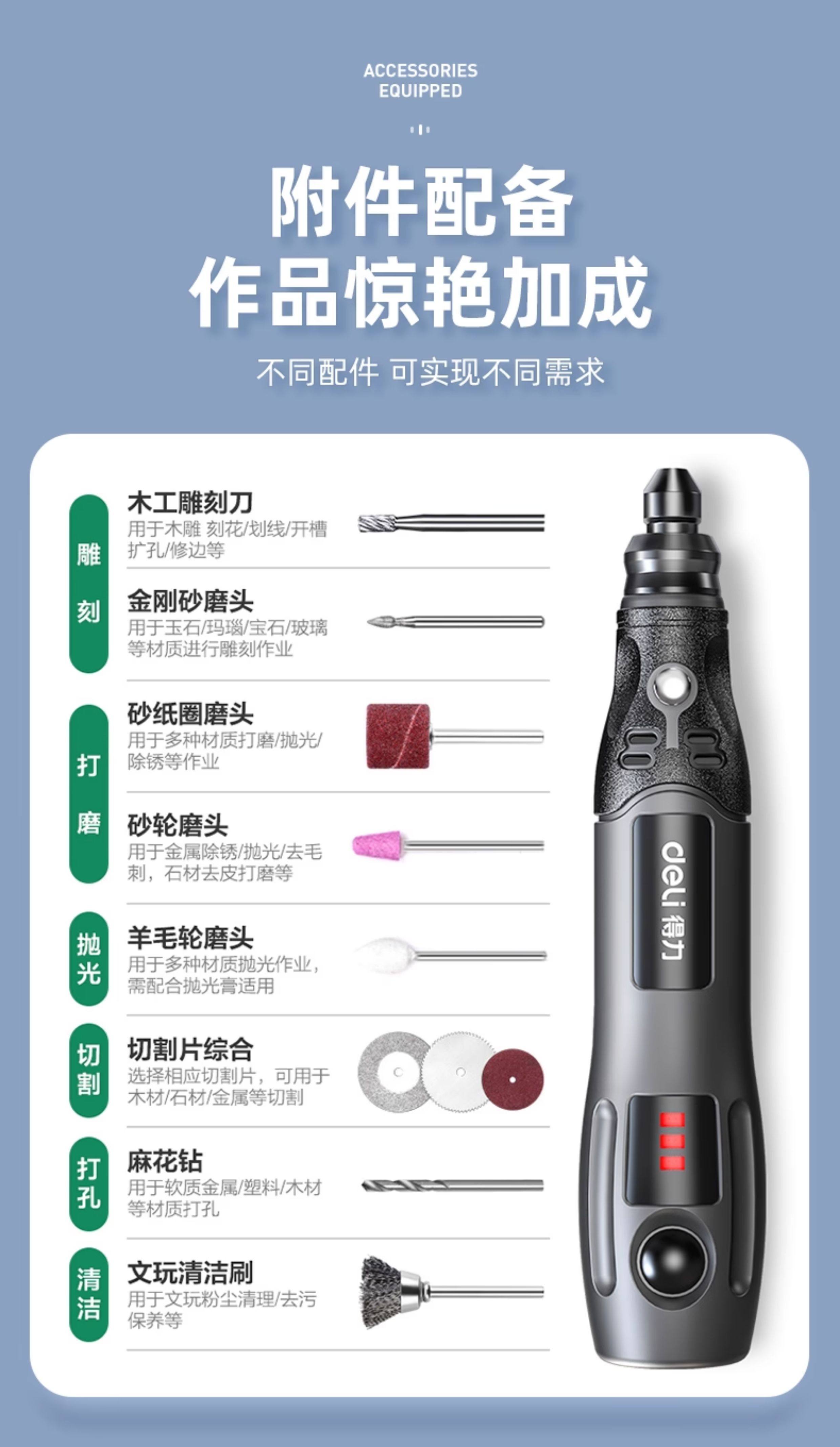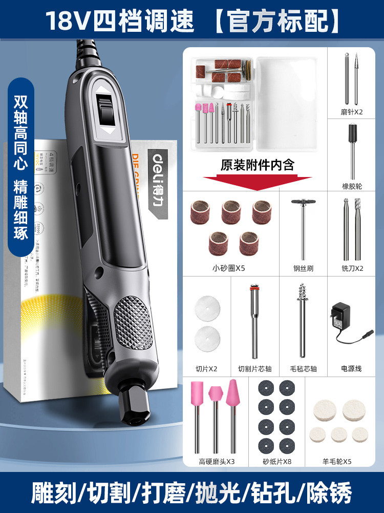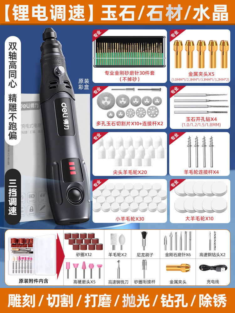 得力电磨机手持小型打磨抛光玉石神器木雕刻文玩核桃迷你电动工具