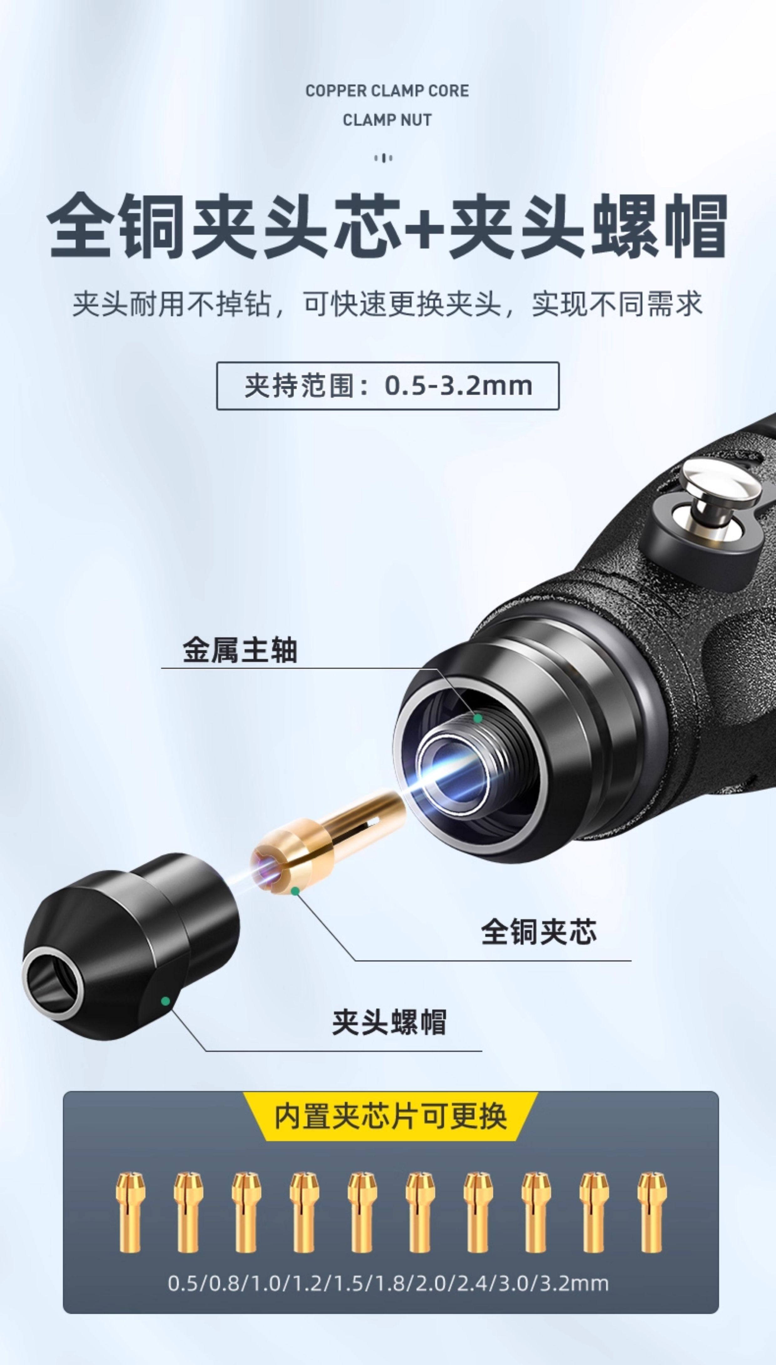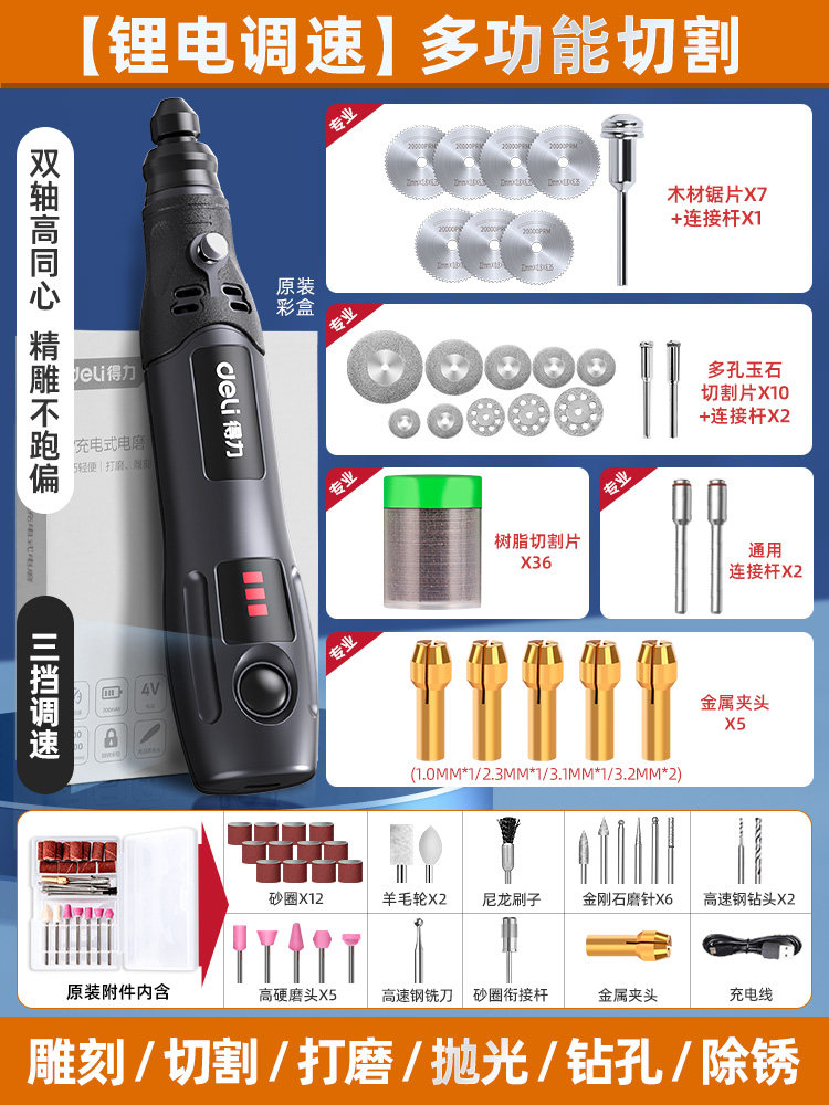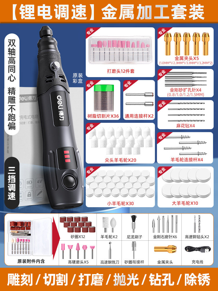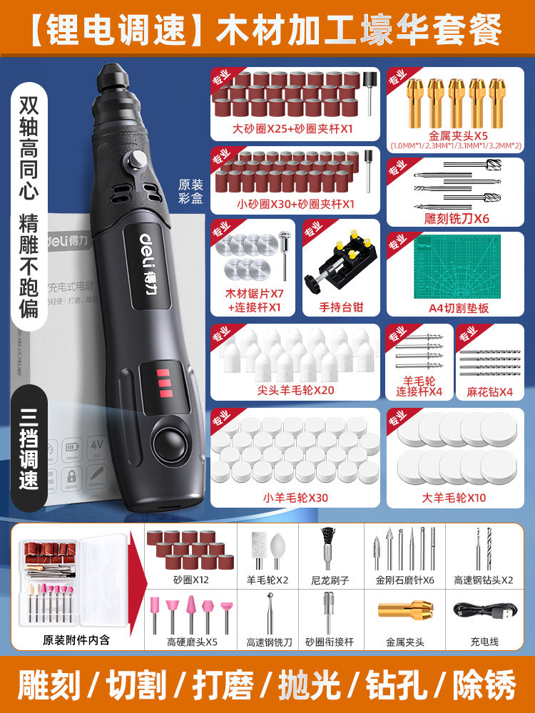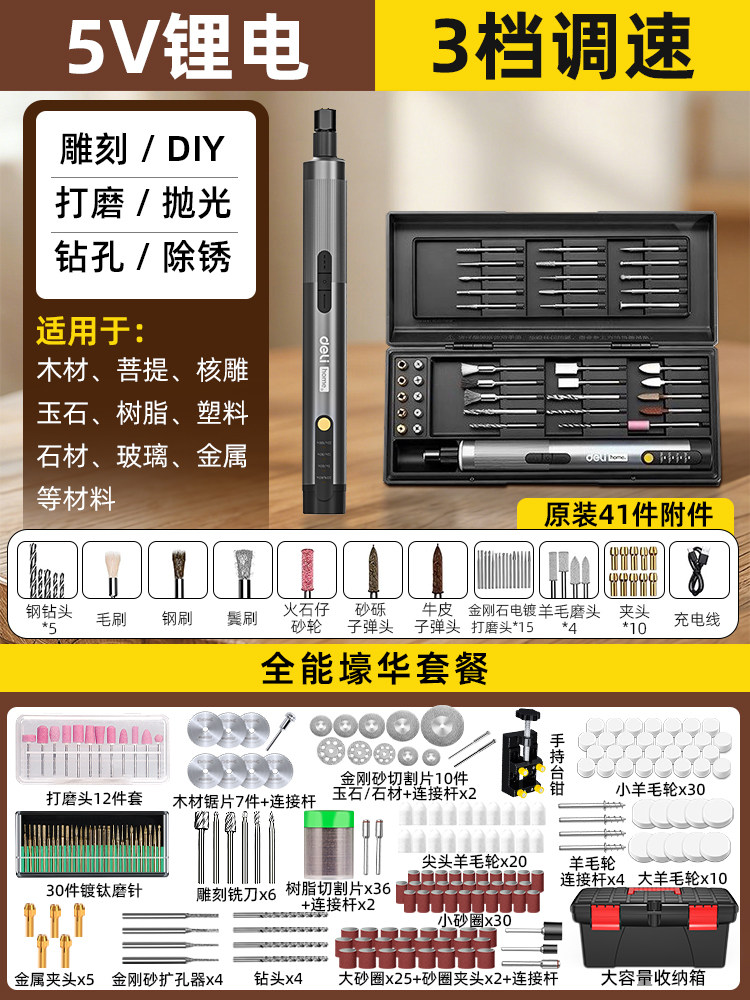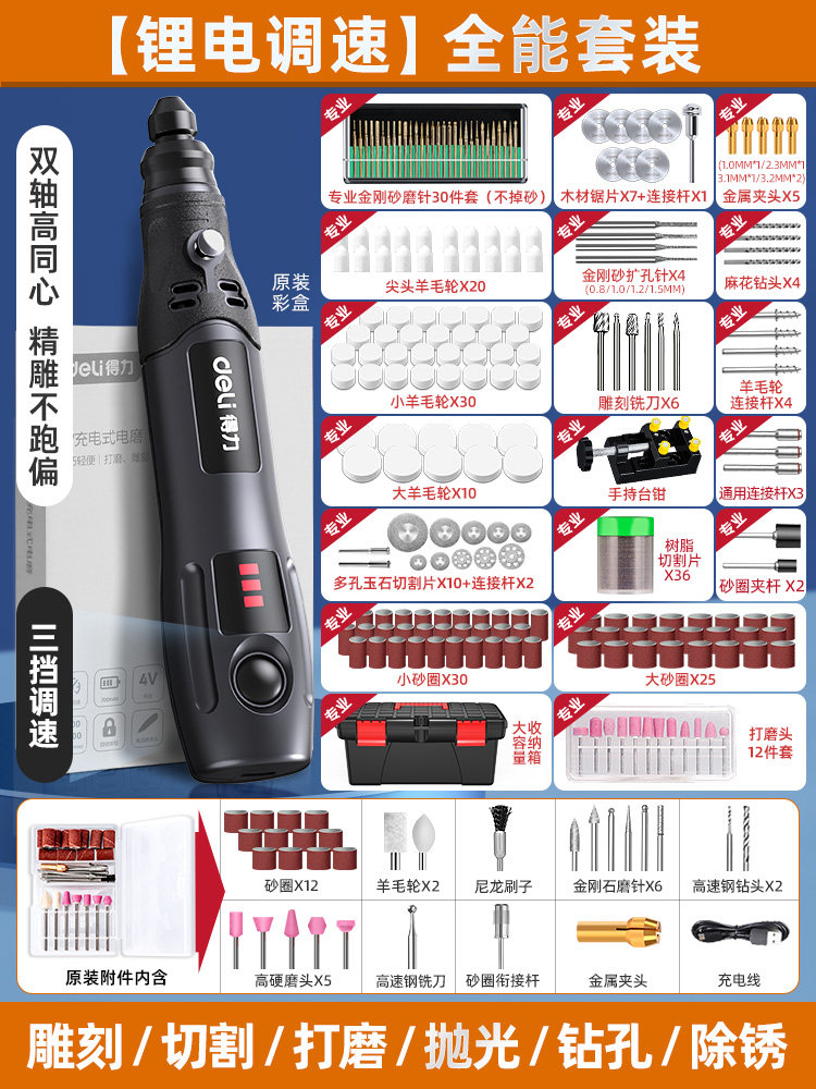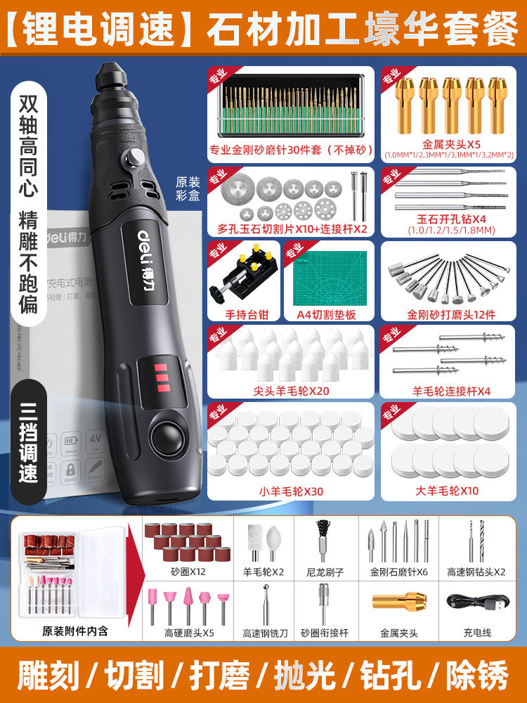 得力电磨机手持小型打磨抛光玉石神器木雕刻文玩核桃迷你电动工具