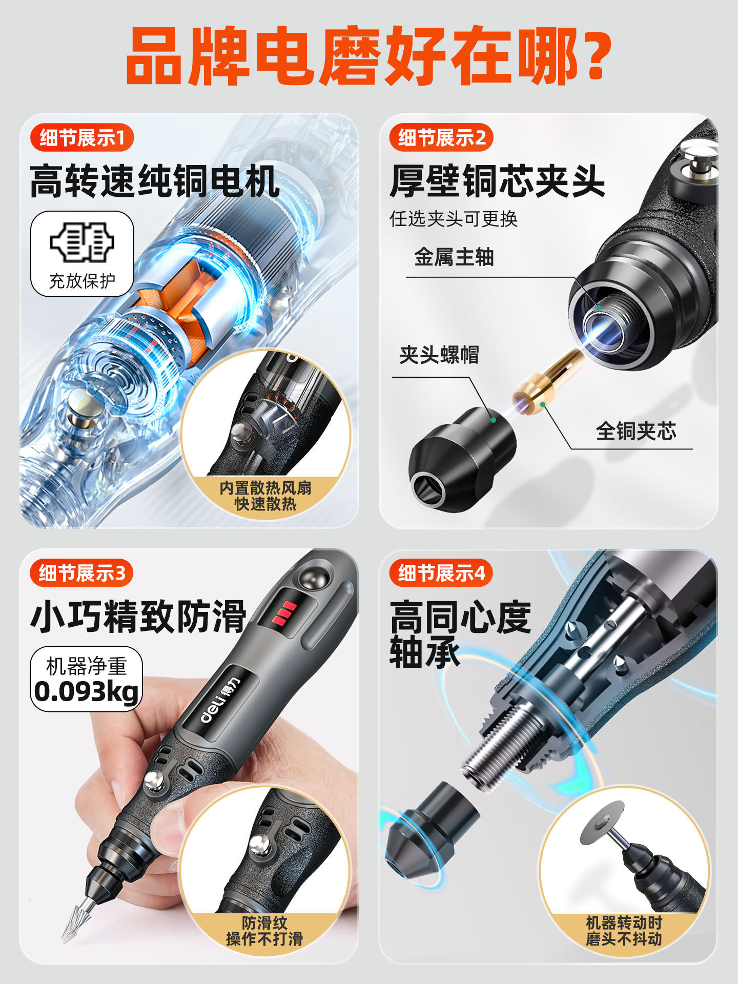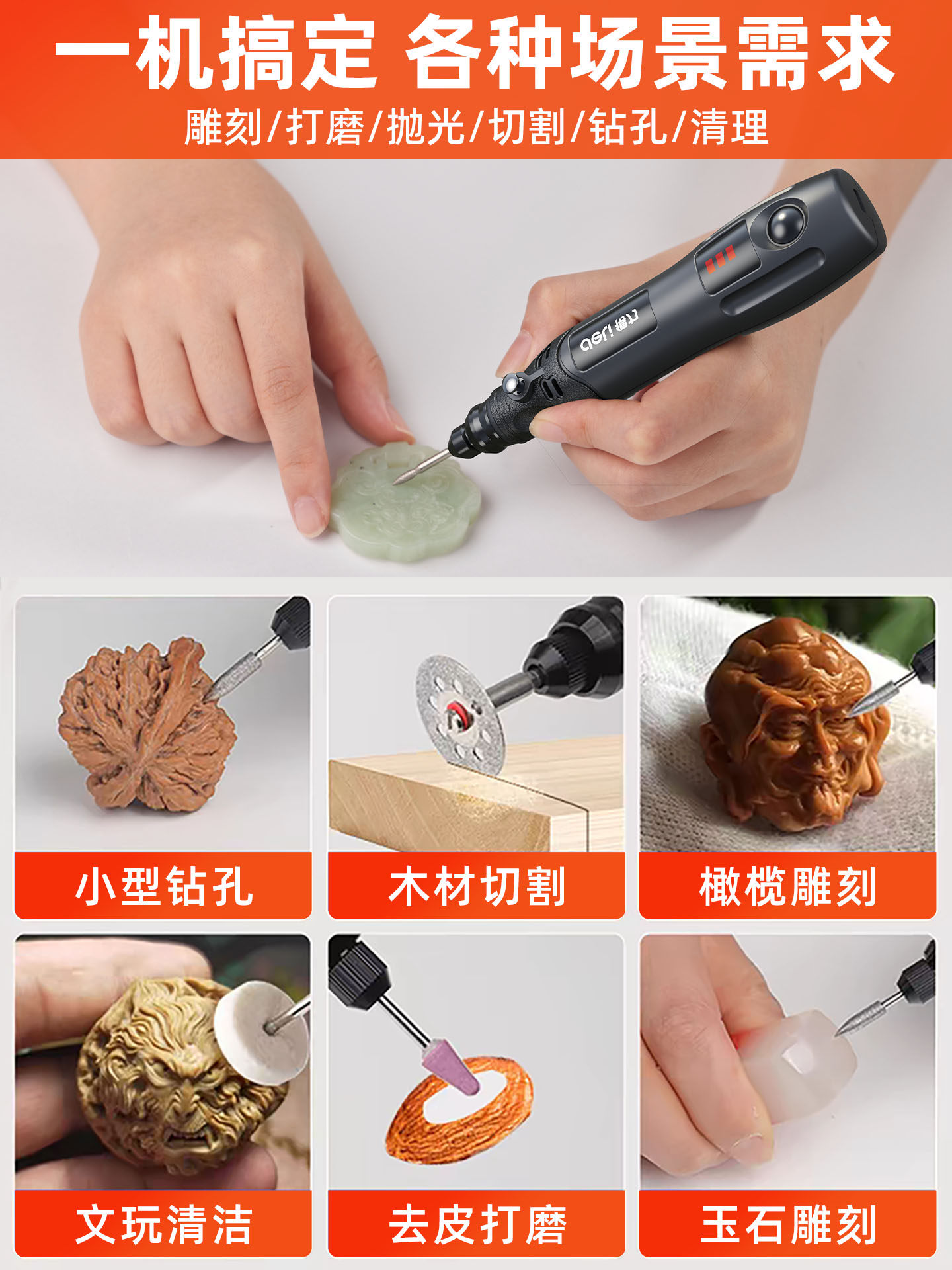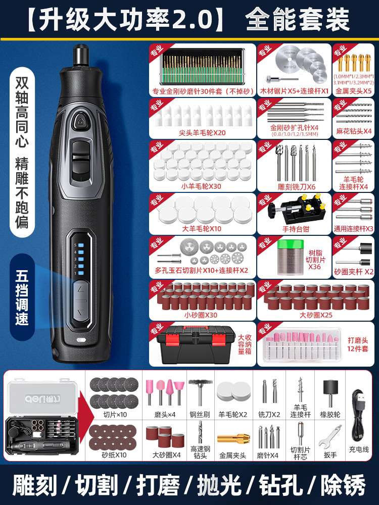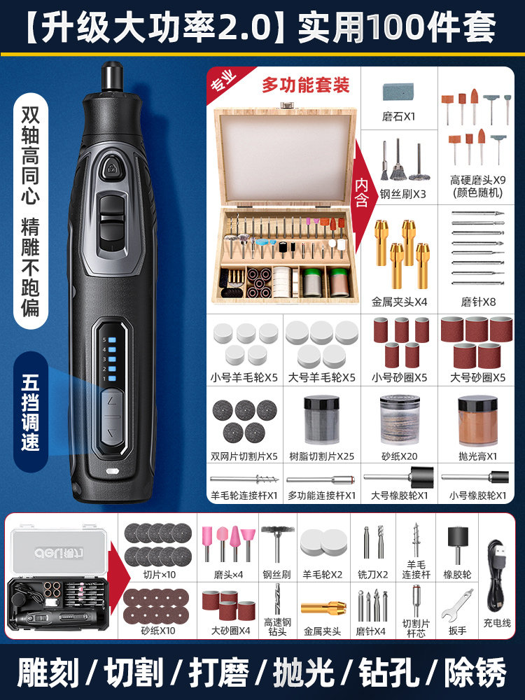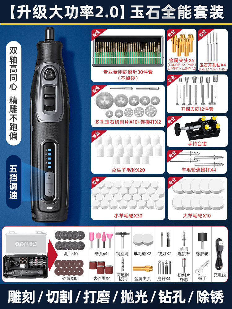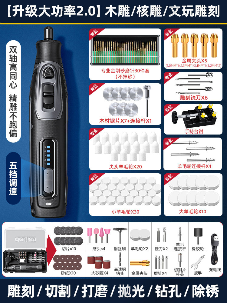 得力电磨机手持小型打磨抛光玉石神器木雕刻文玩核桃迷你电动工具