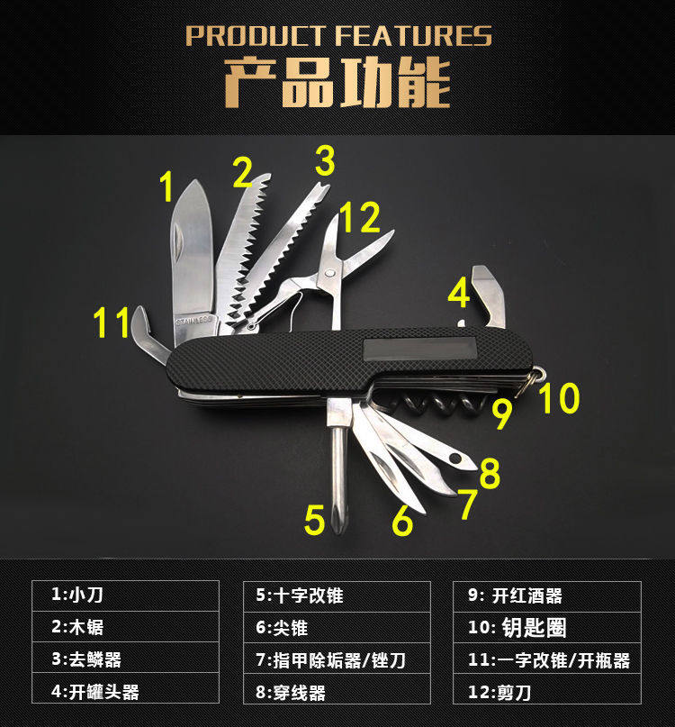 HomeProducts野外求生随身防身户外瑞士直刀多功能折叠迷你小刀具组合工具刀新