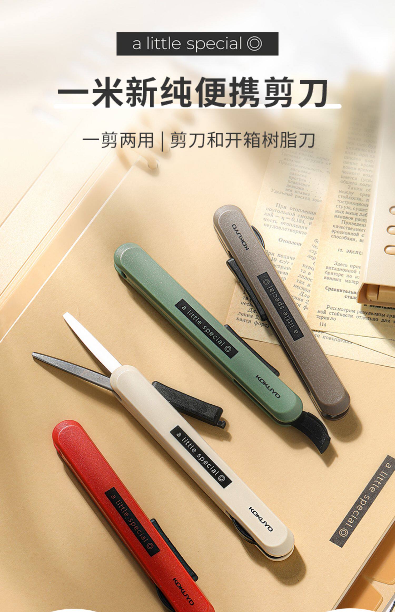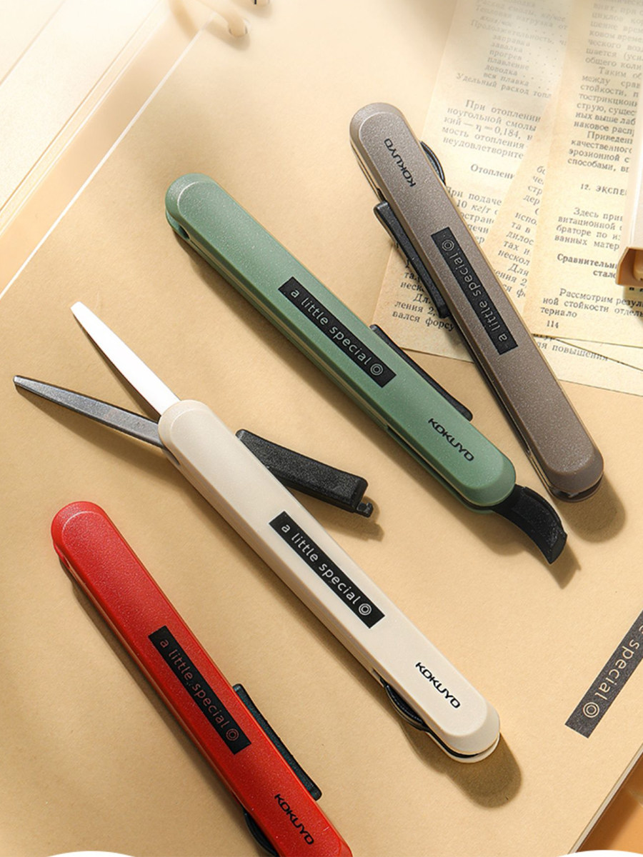 日本kokuyo国誉剪刀一米新纯便携式剪子随身迷你手帐家用diy手工美工形可伸缩收纳学生剪纸裁缝办公开箱小刀