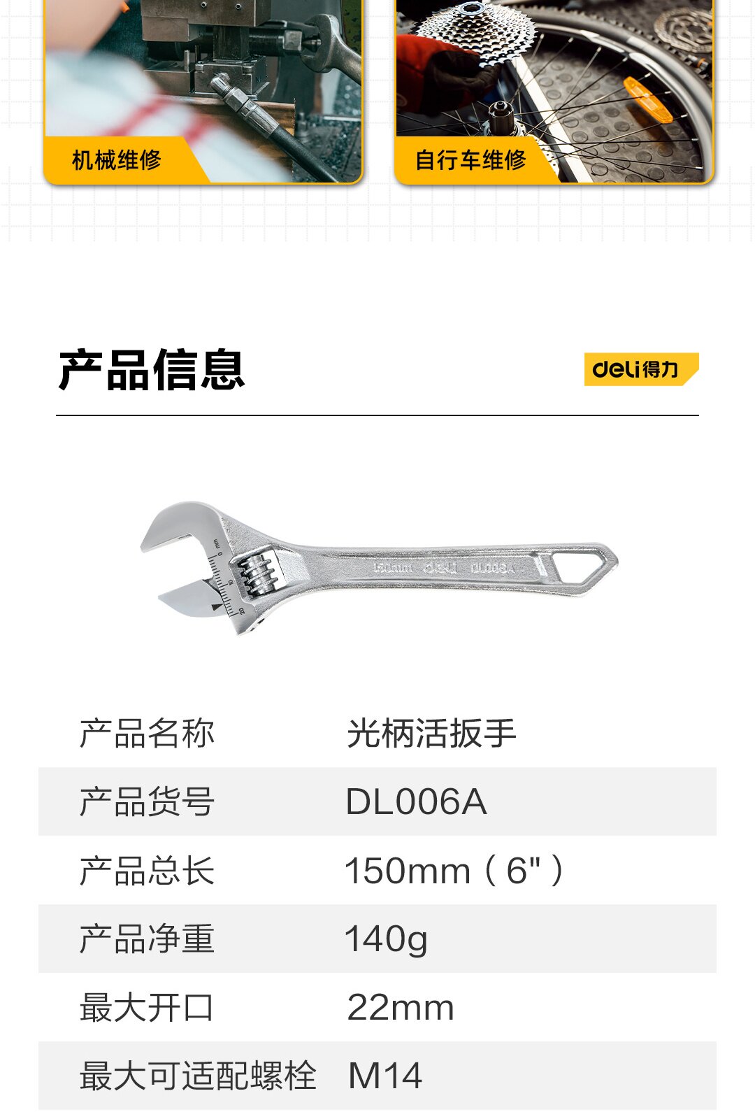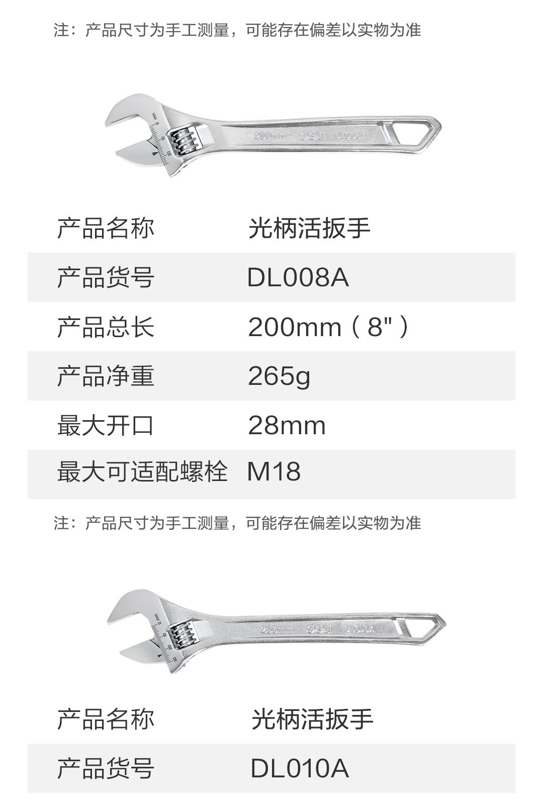 HomeProducts得力工具A系活扳手大小号开口多用扳子带刻度活动扳手DL010A