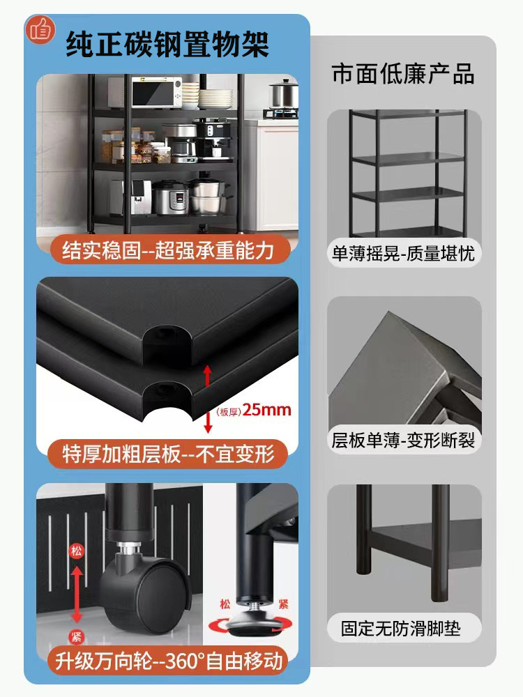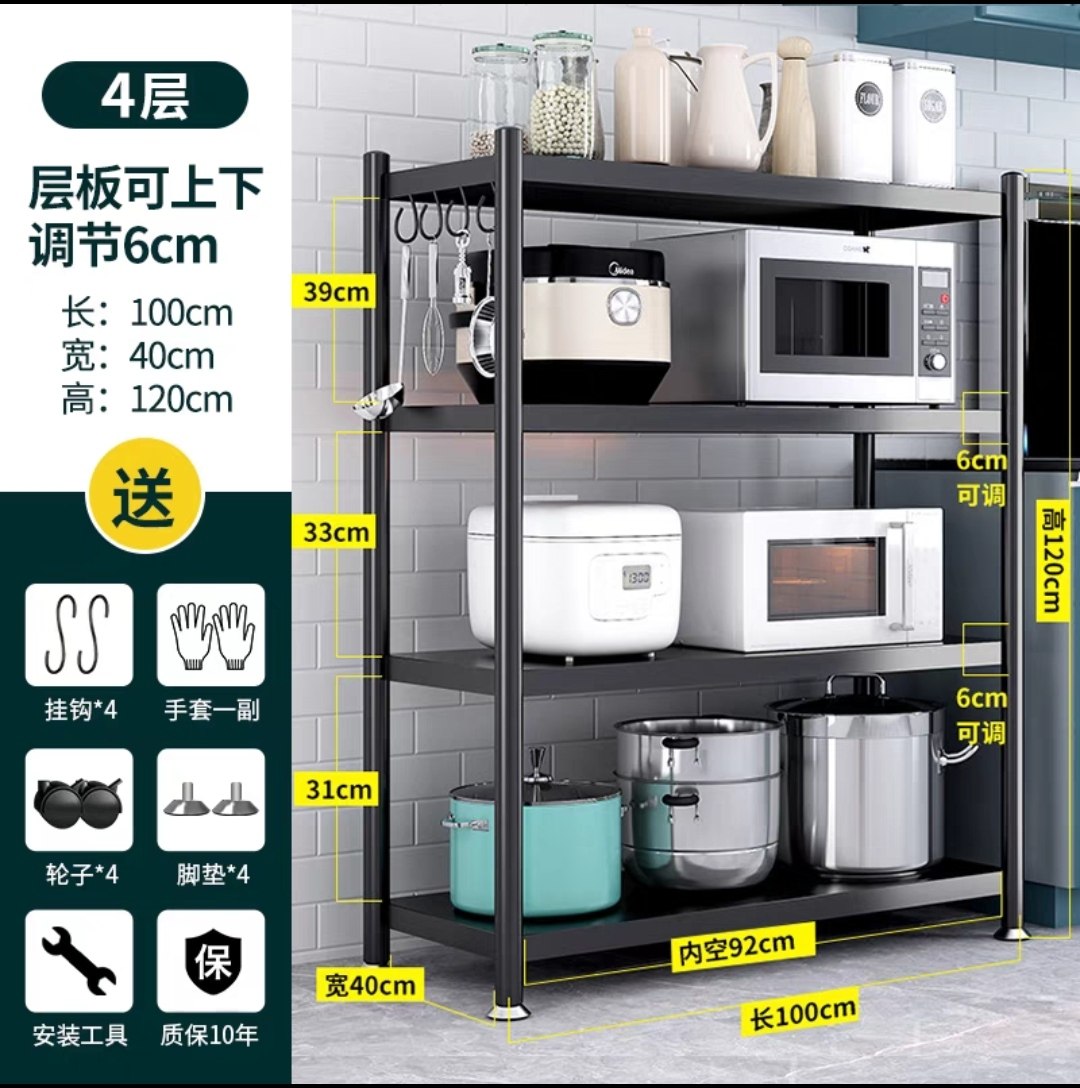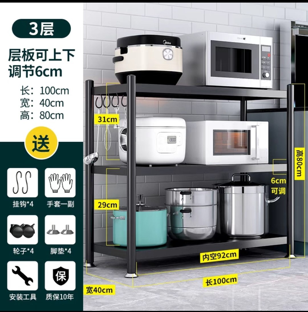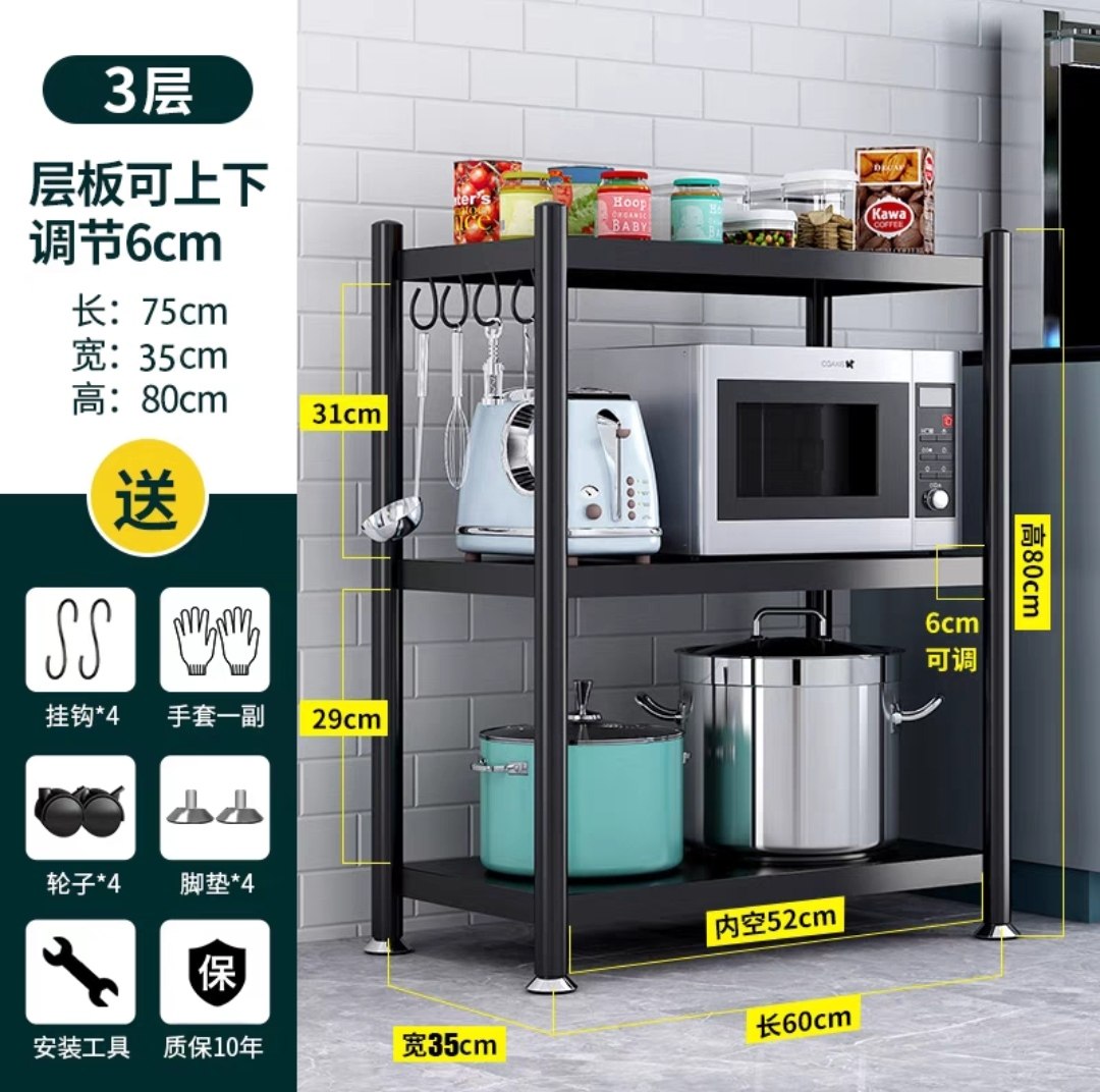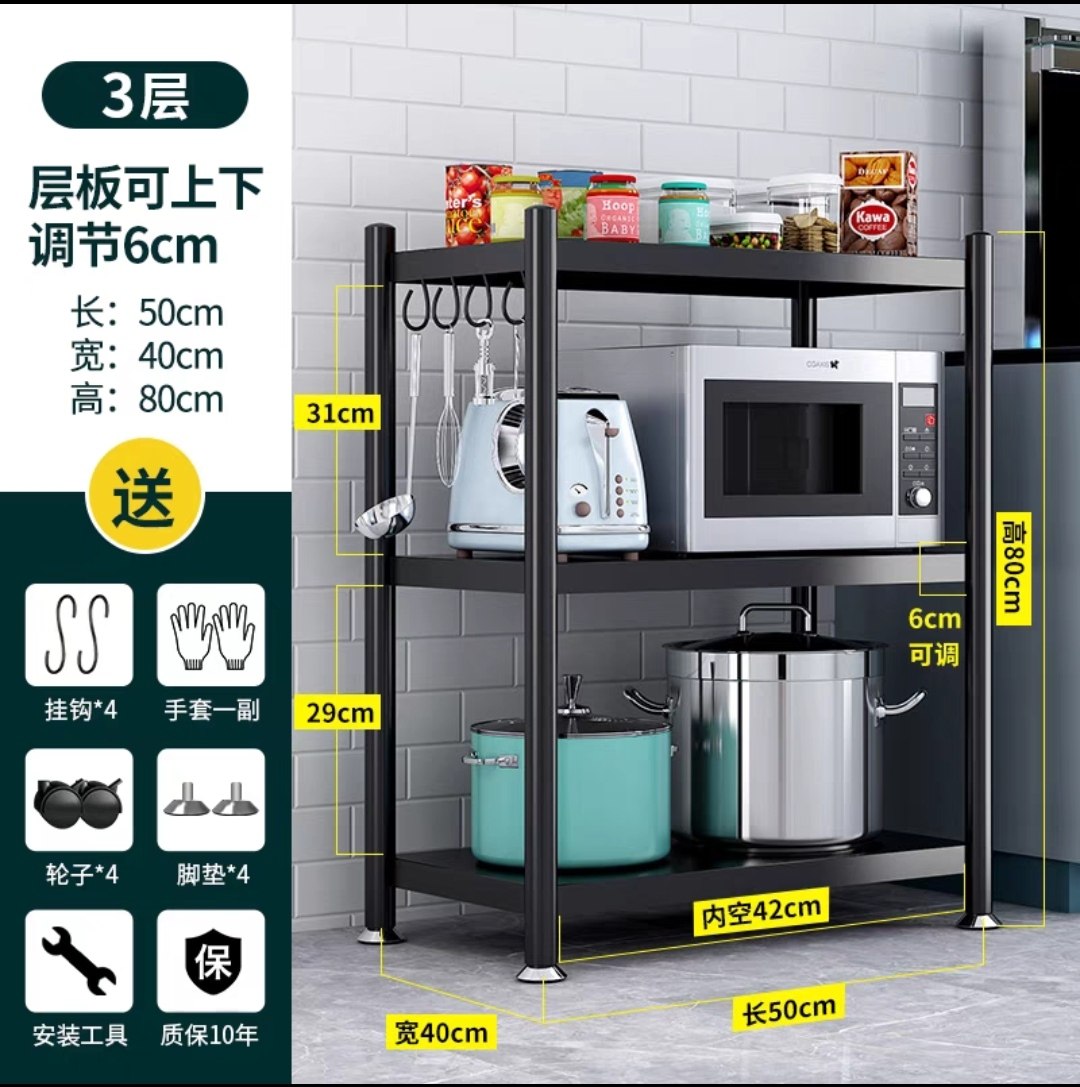 厨房置物架落地多层多功能移动储物架子家用微波炉烤箱锅具收纳架