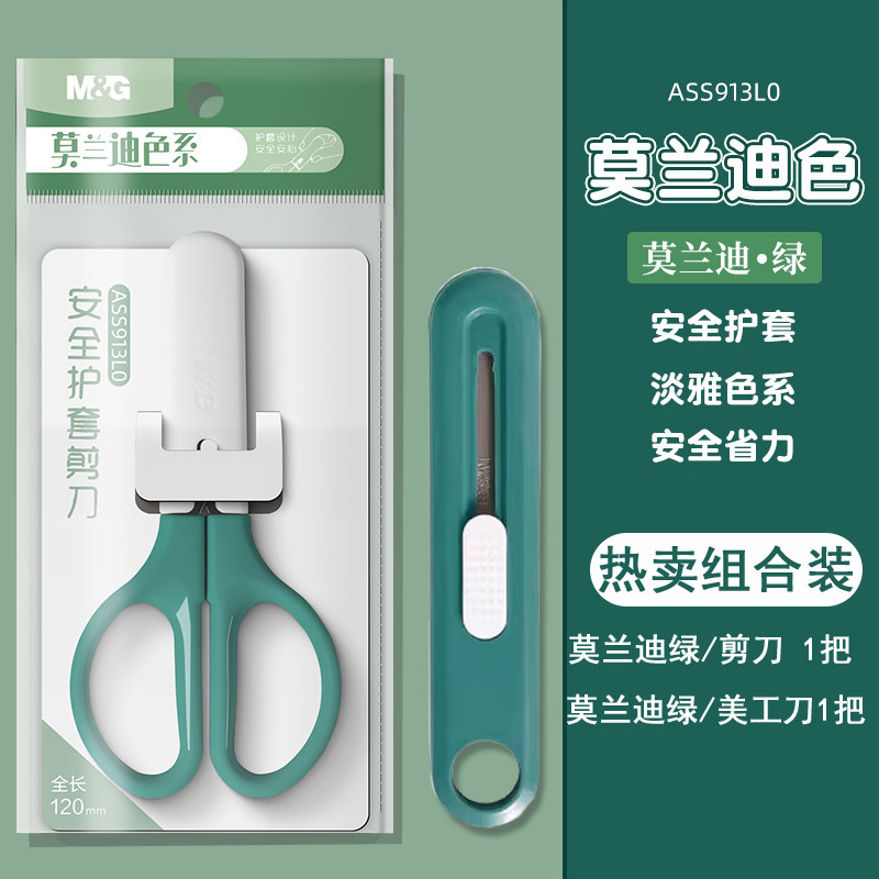 绿色剪刀+绿色裁纸刀【各1把】