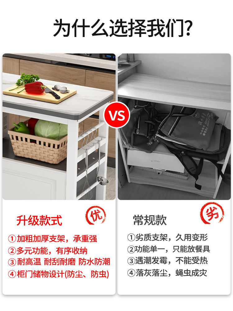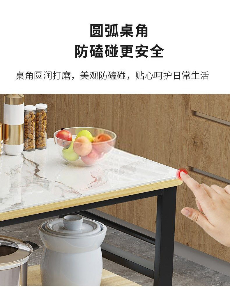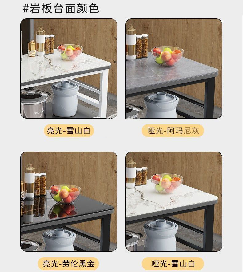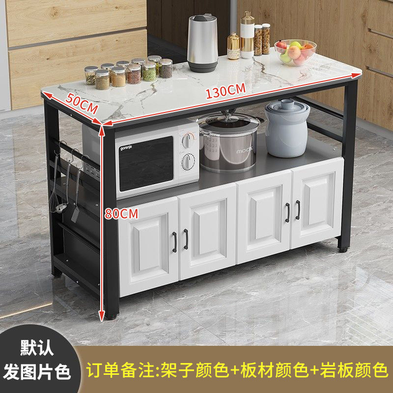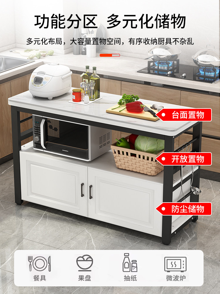 厨房岩板切菜桌操作台落地家用多层置物架微波炉烤箱储物柜双层桌