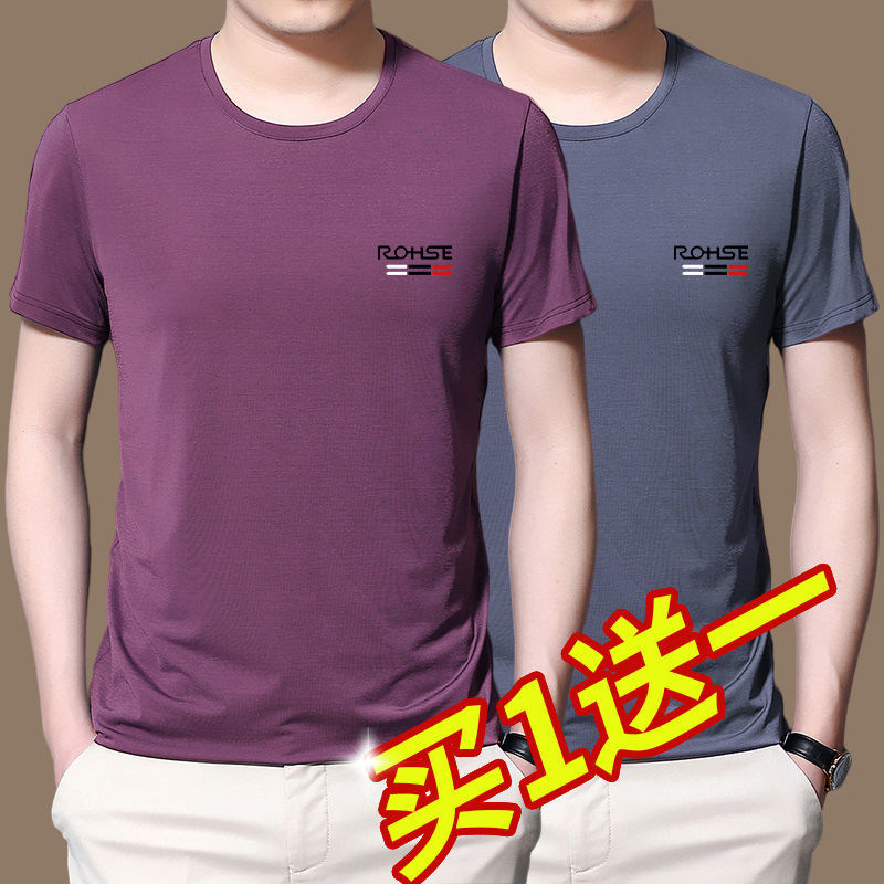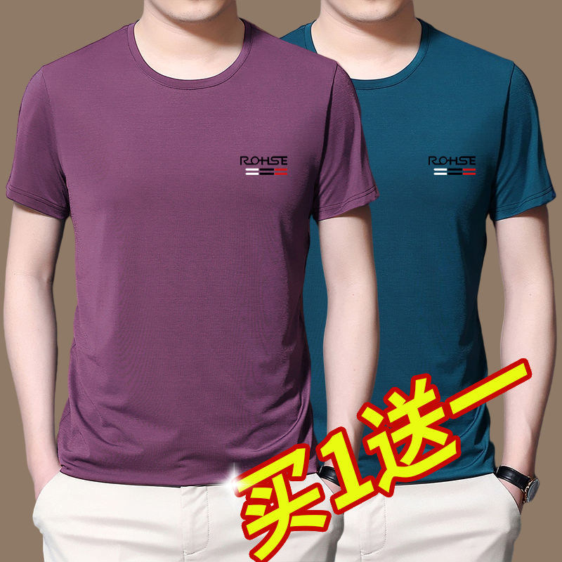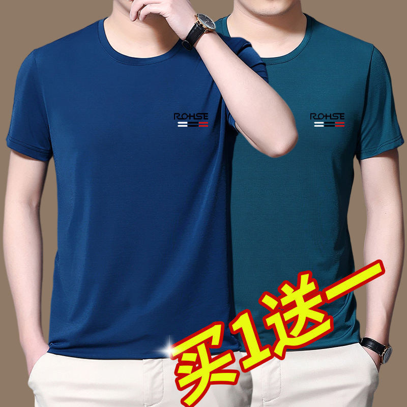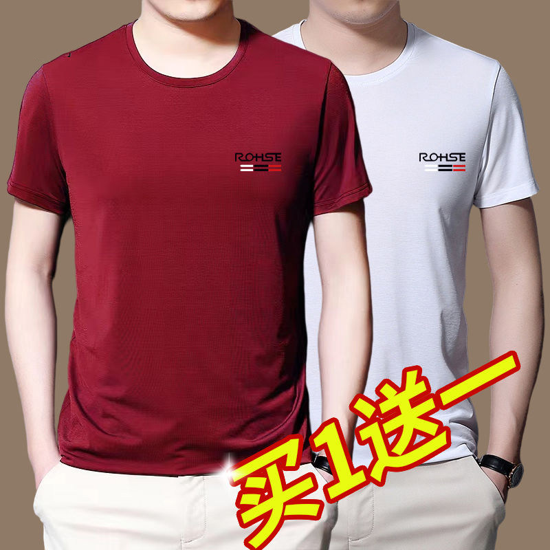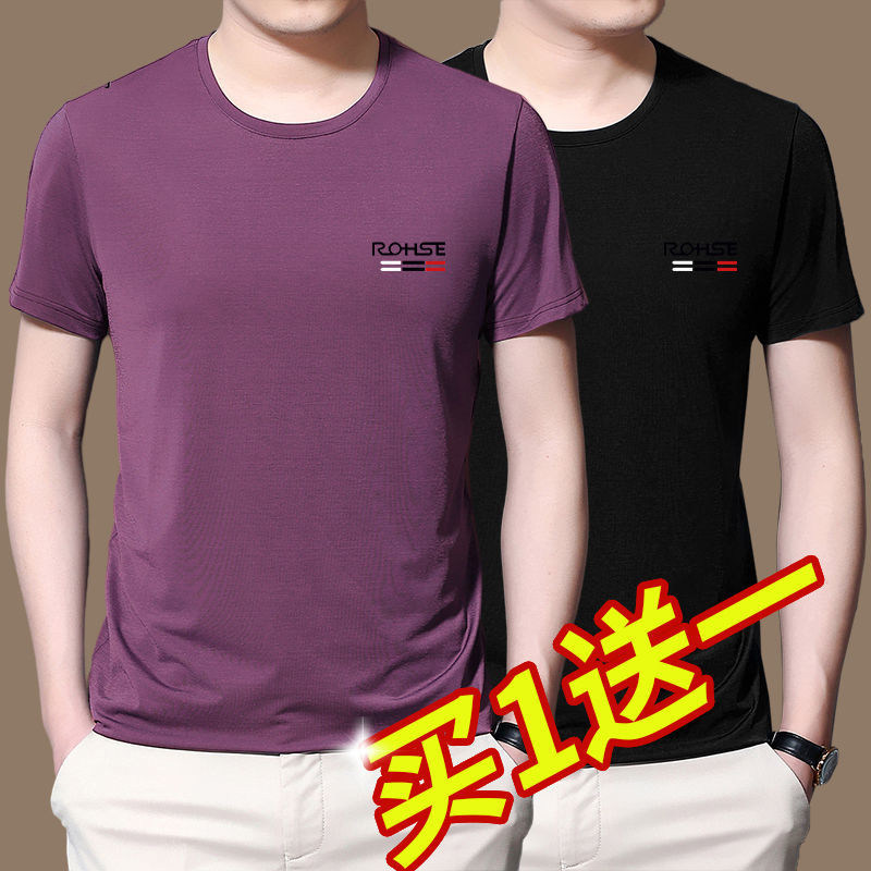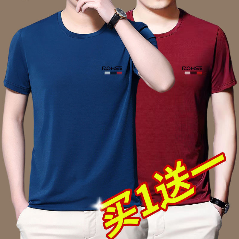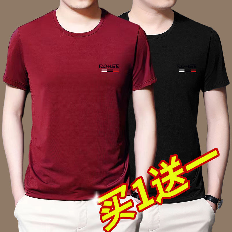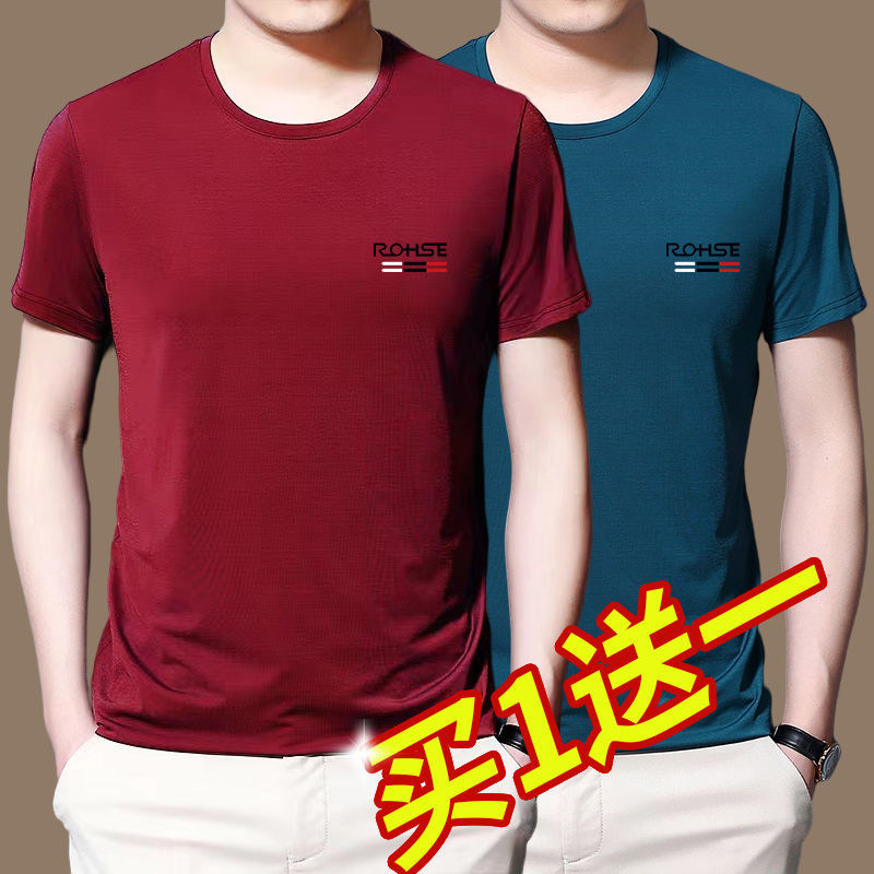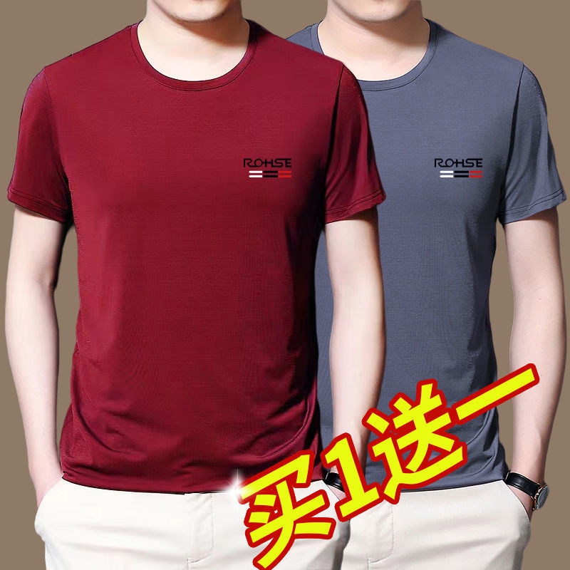 2件短袖T恤男夏季圆领冰丝半袖体恤中年男士打底衫冰感透气男款潮