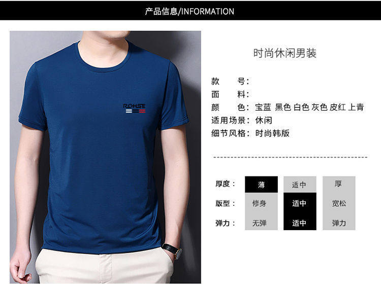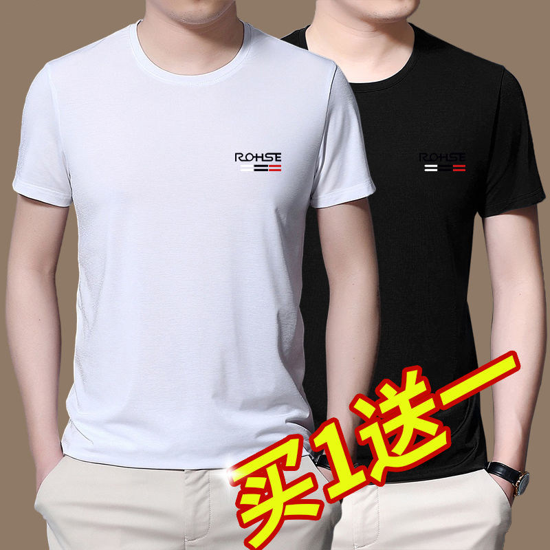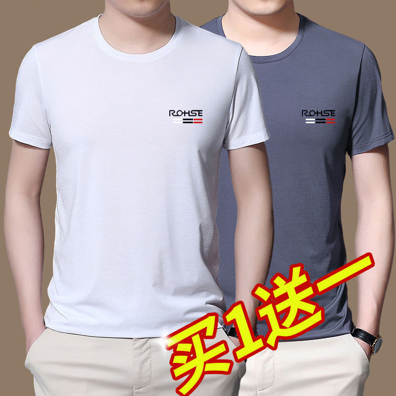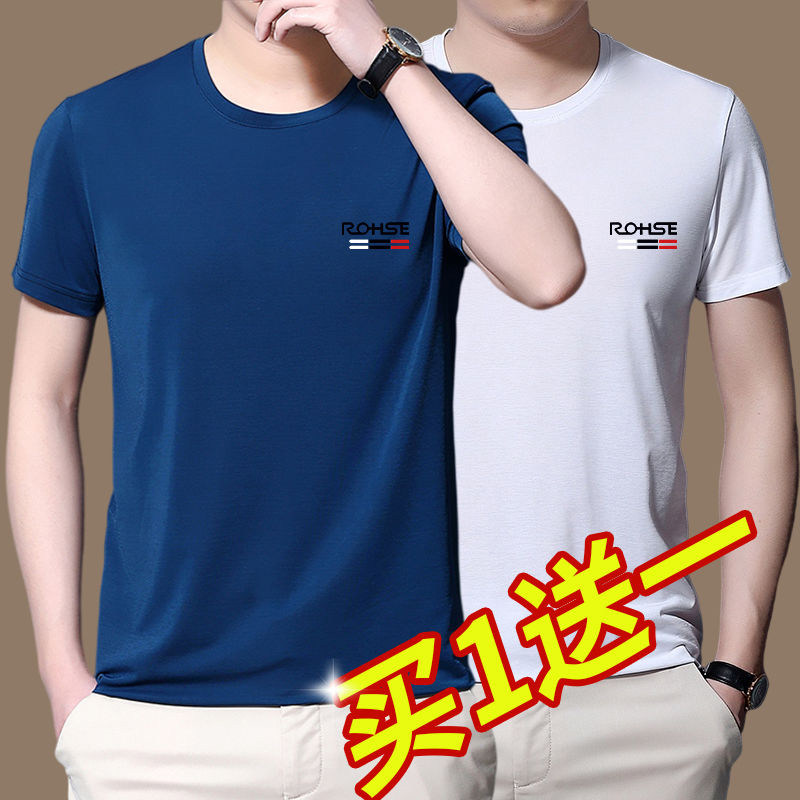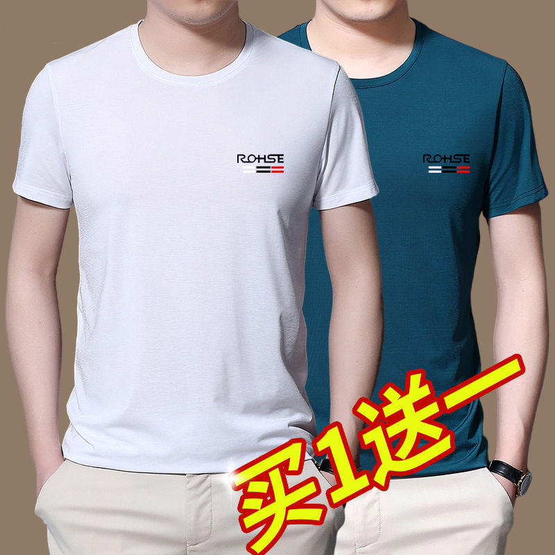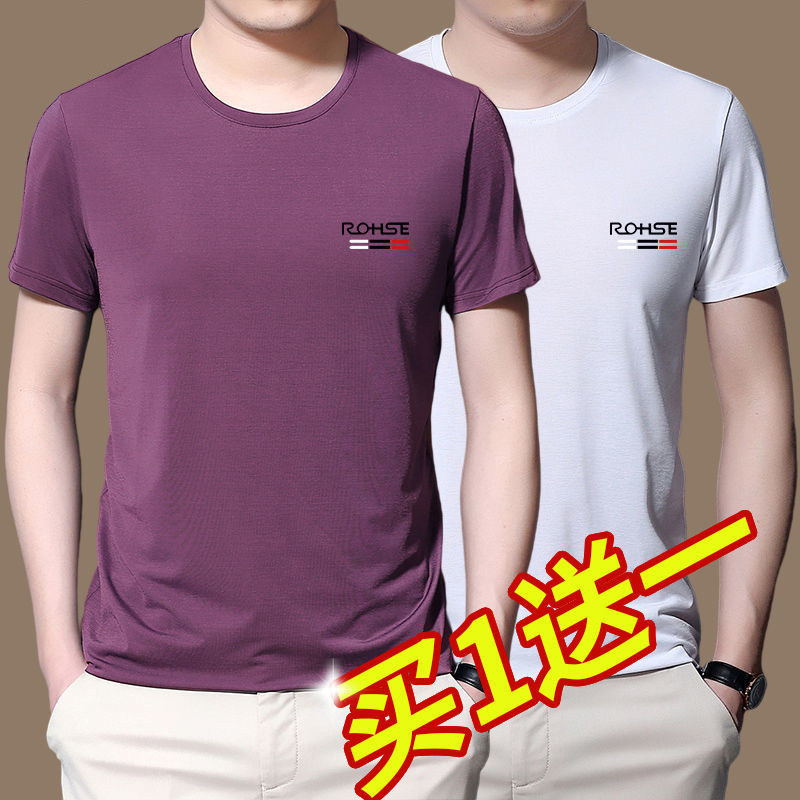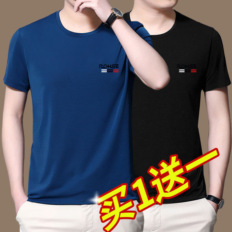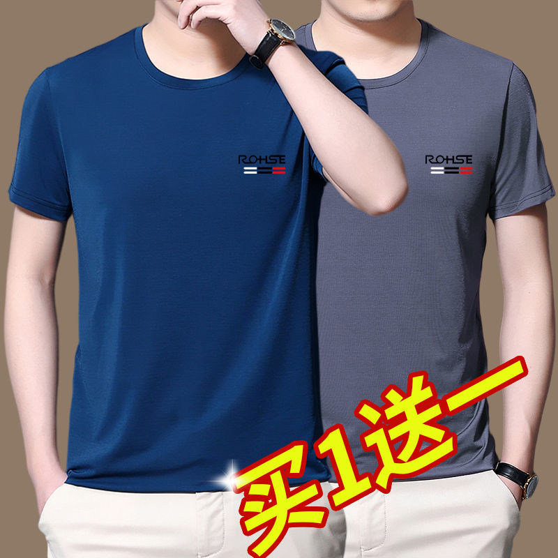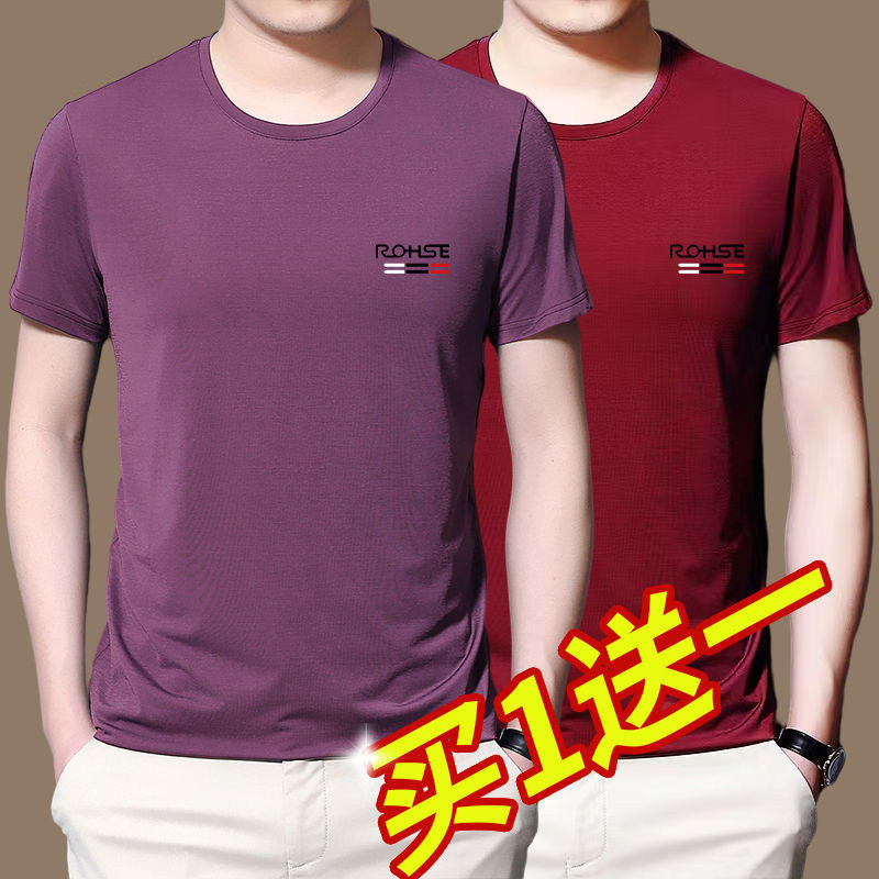 2件短袖T恤男夏季圆领冰丝半袖体恤中年男士打底衫冰感透气男款潮
