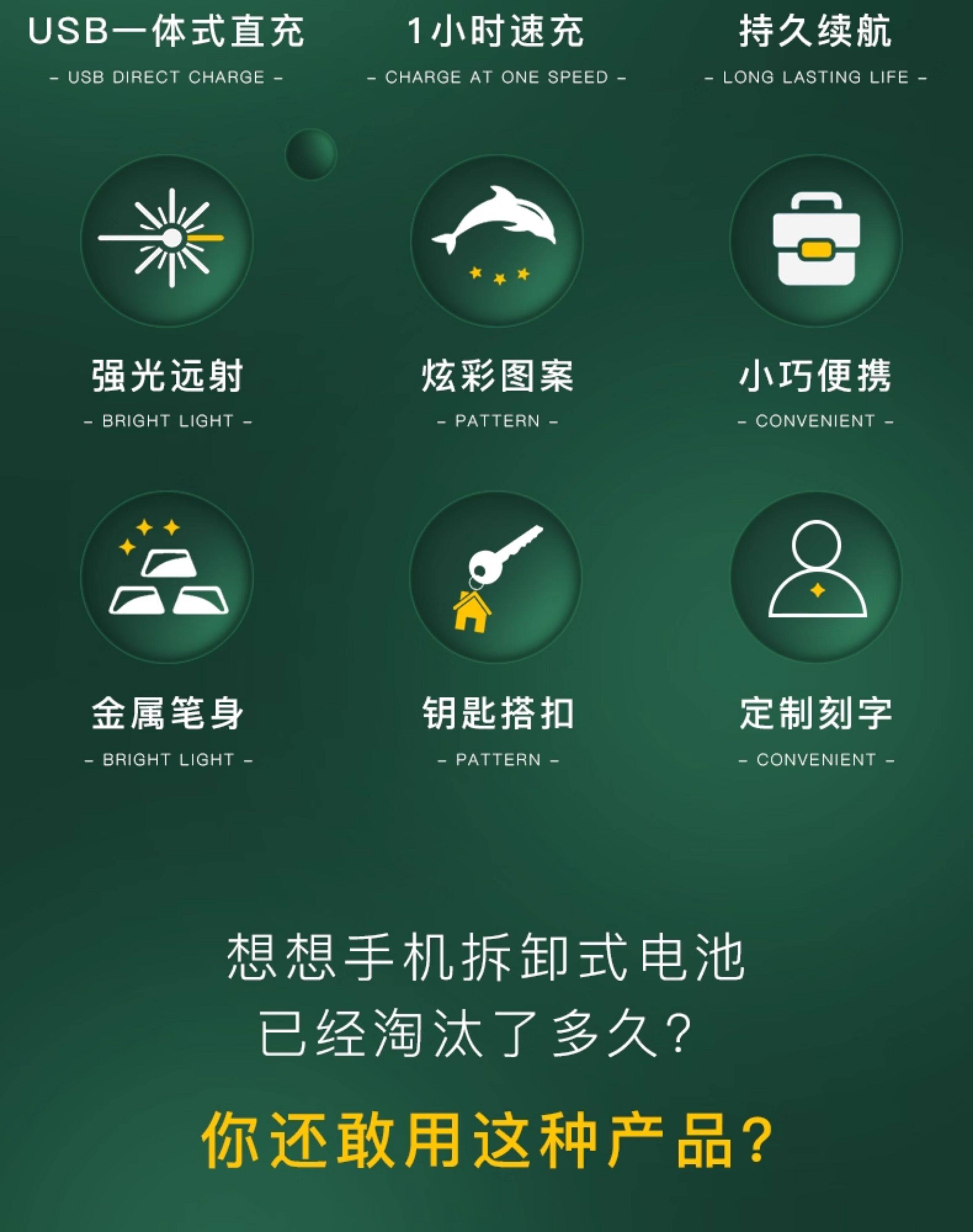 莫兰迪绿【强光远射★USB充电接口★送挂绳】绿光 / 收藏加购 极速发货
