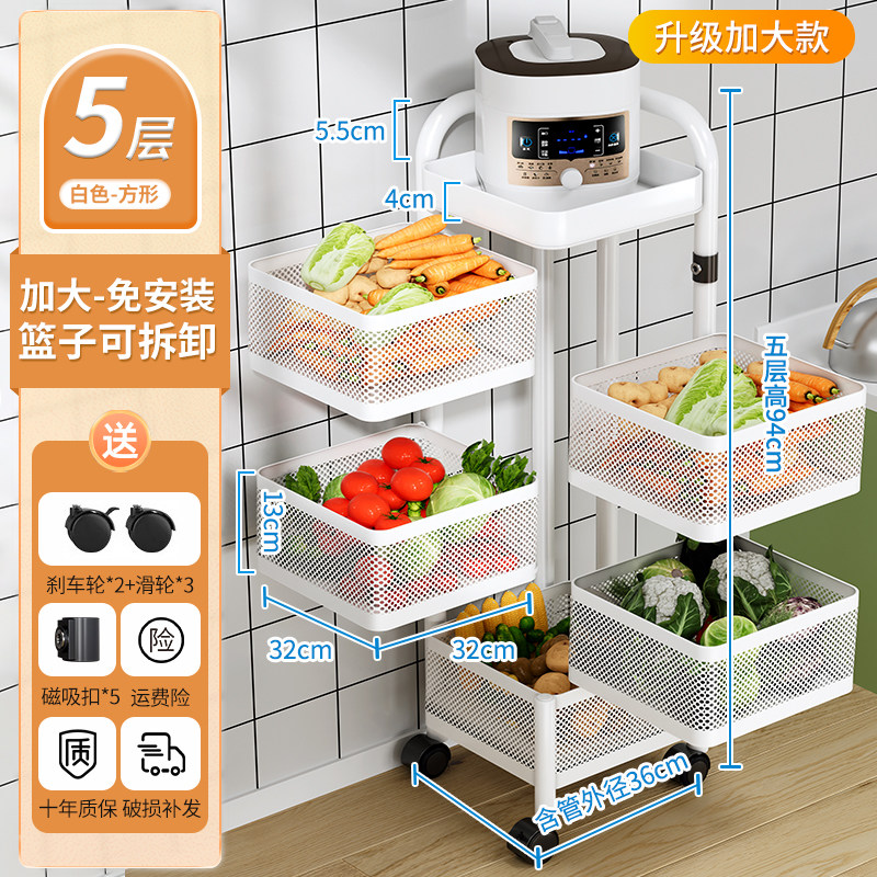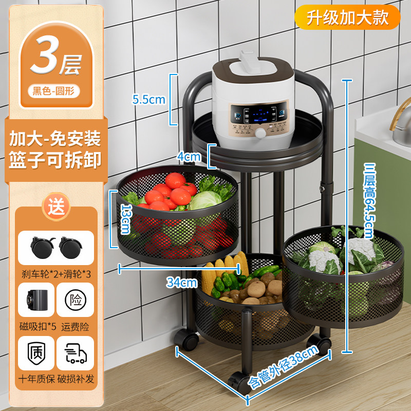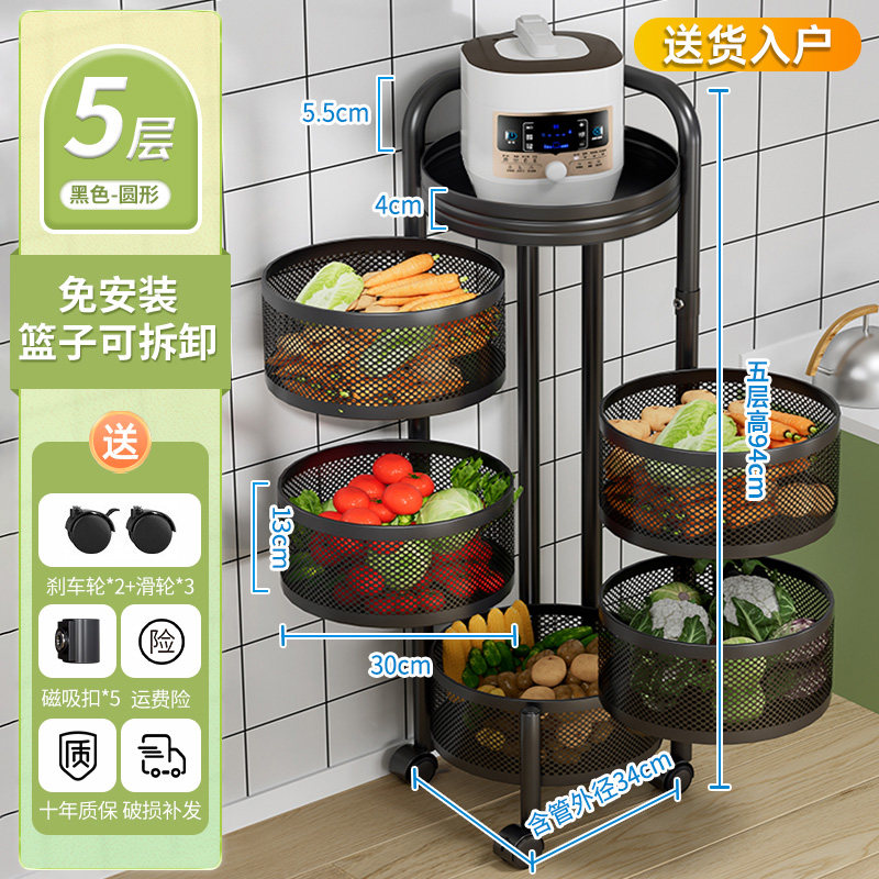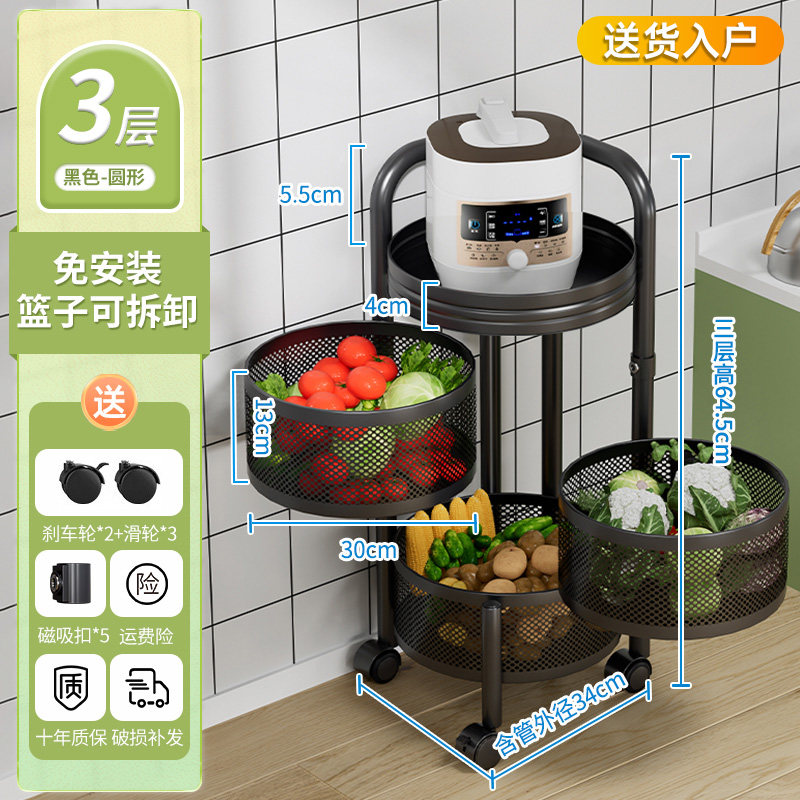 厨房蔬菜置物架落地多层家用旋转放菜架子多功能水果零食收纳菜篮