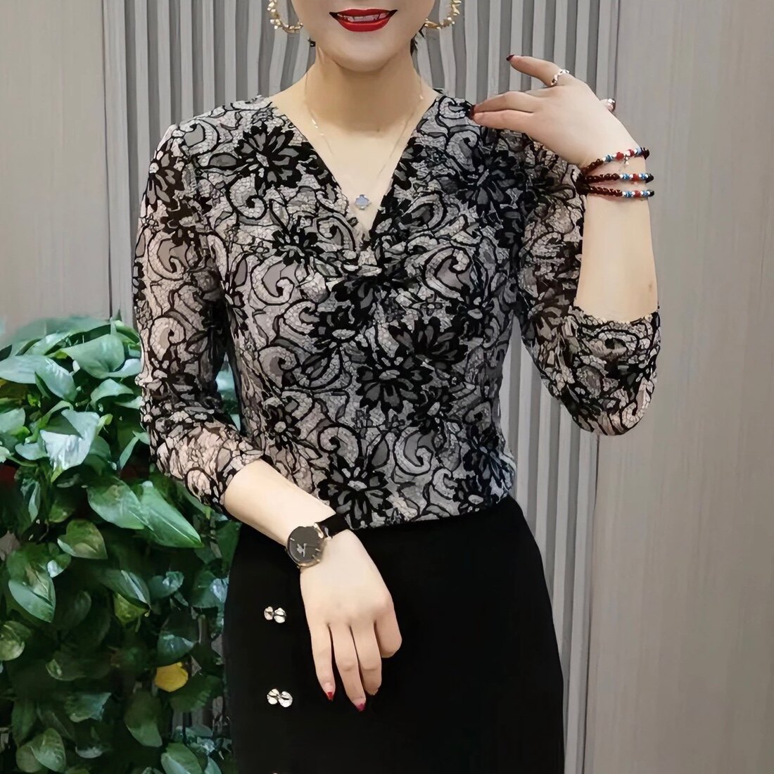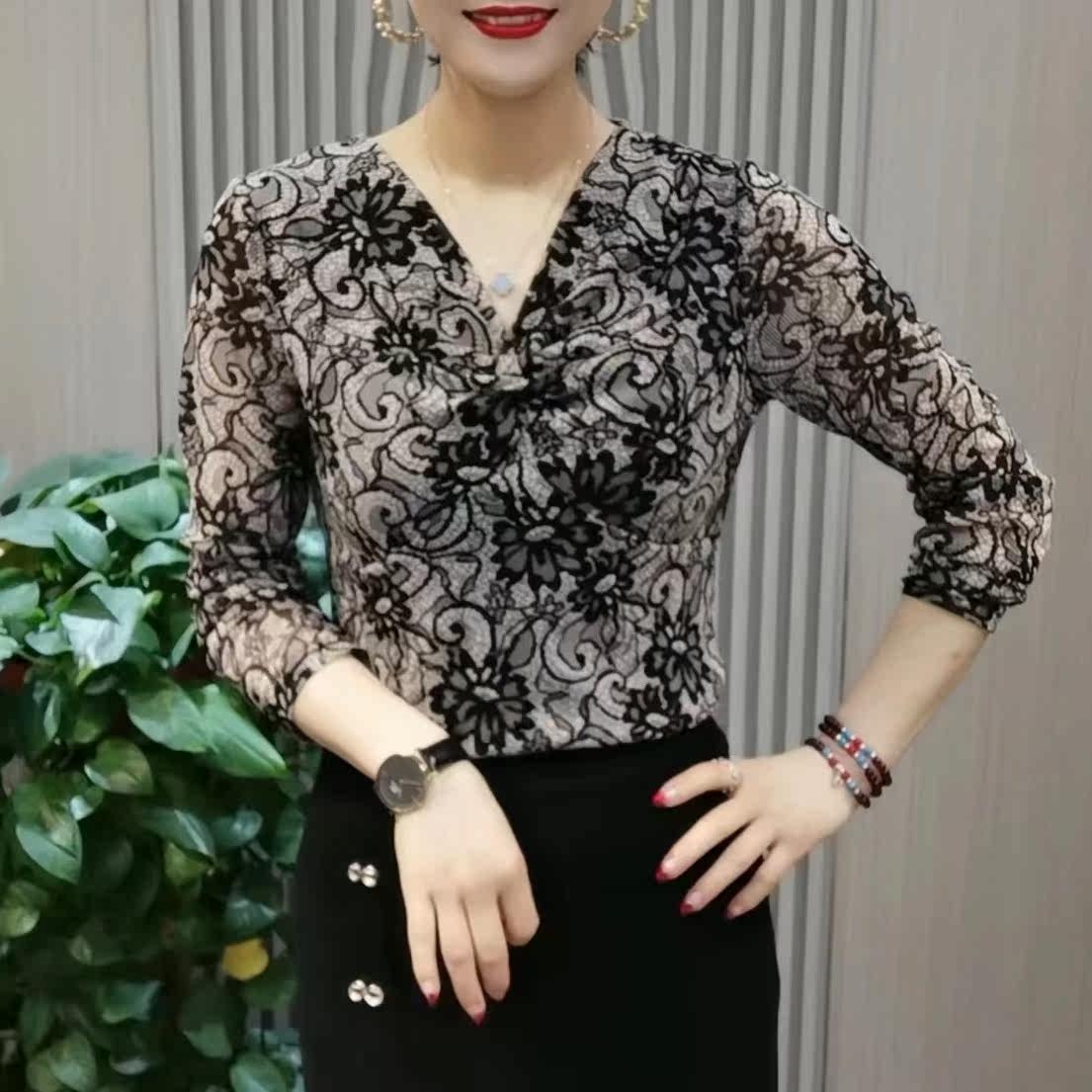 2026春装新款时尚洋气V领气质显瘦长袖百搭小衫打底衫女