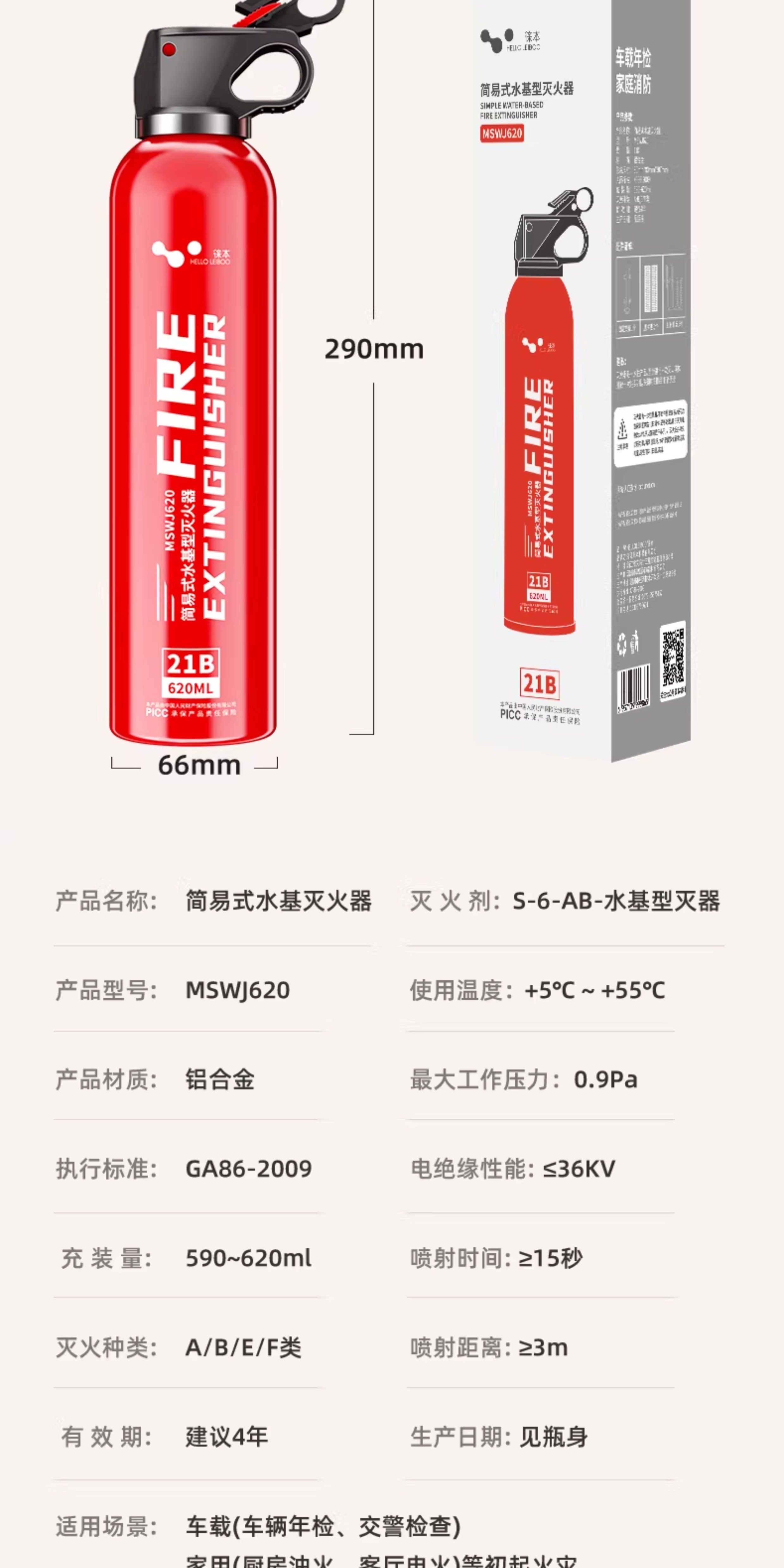 车载灭火器2026新款21B水基私家车用小型耐高温防爆年检消防器材