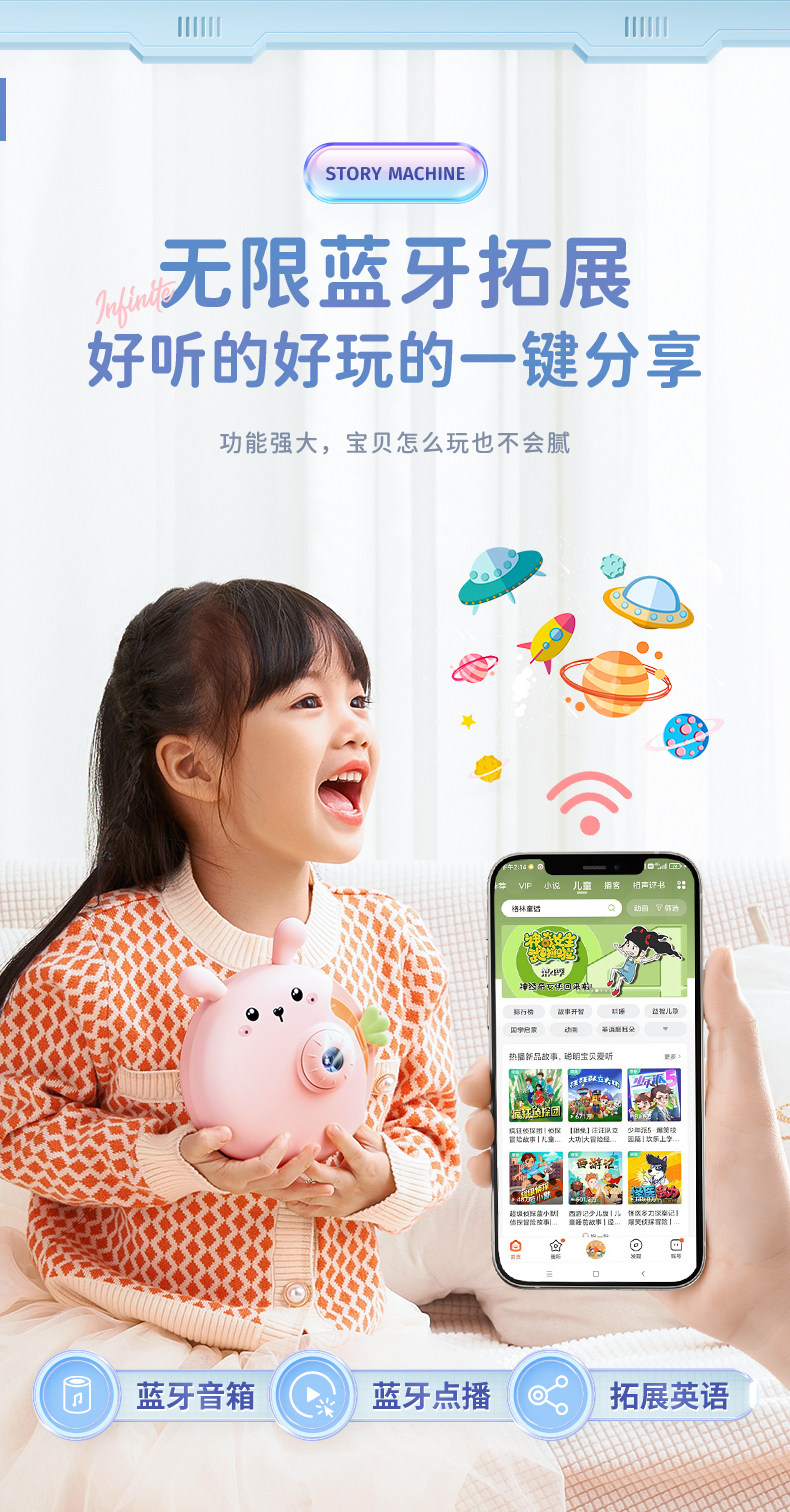 常规1.0【粉小兔】8套投影故事+1001个语音故事国学+蓝牙音响
