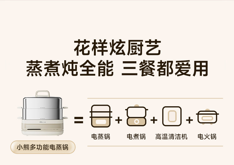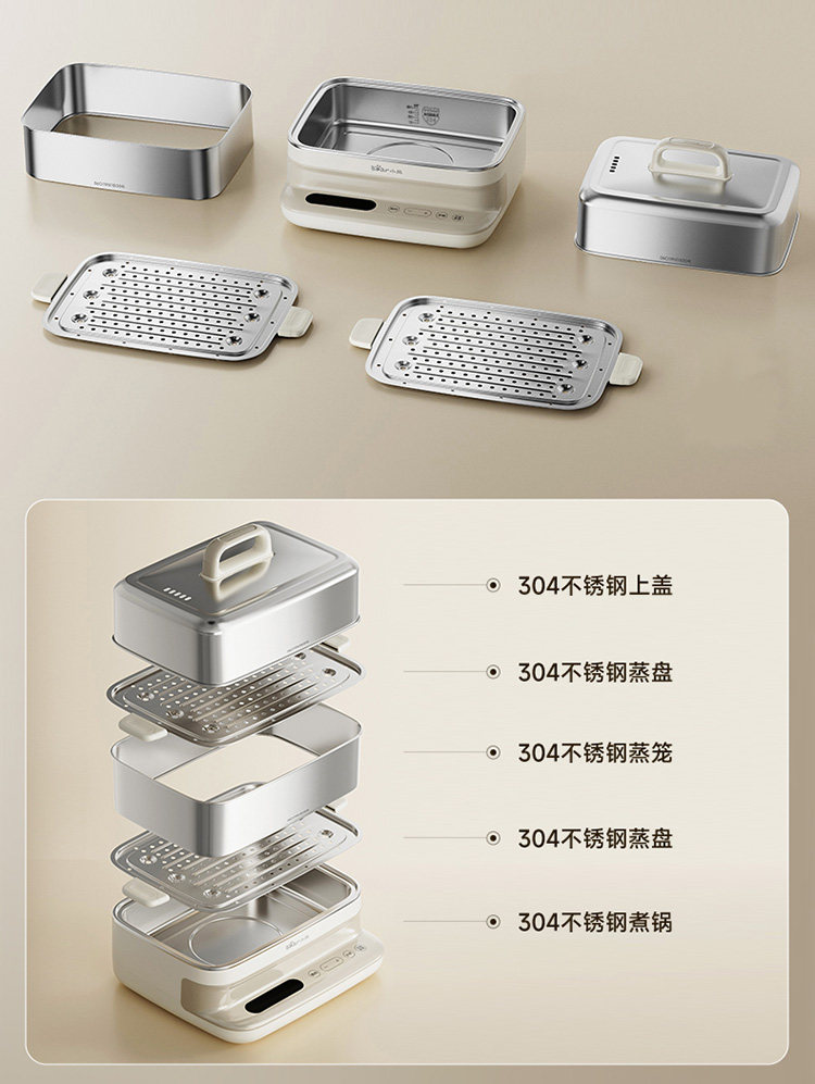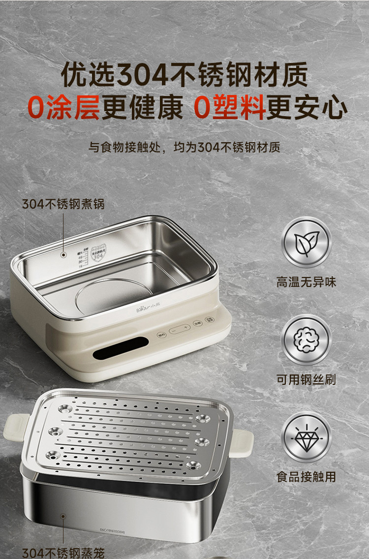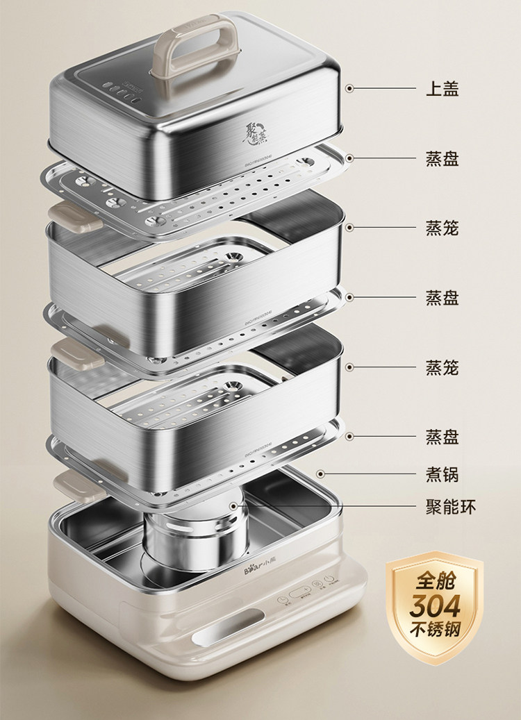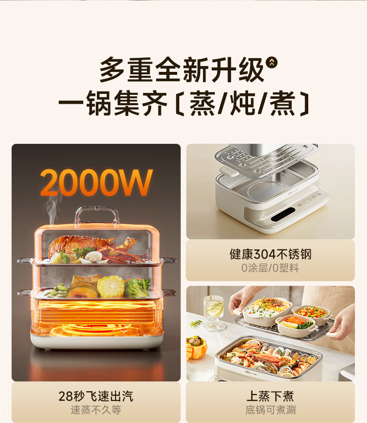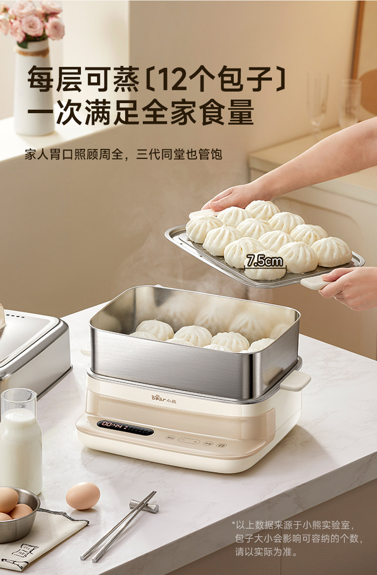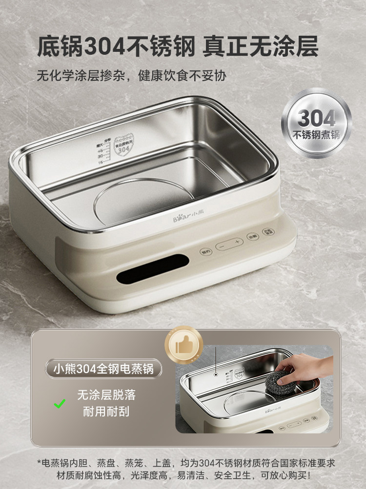 小熊电蒸锅多功能蒸煮一体锅不锈钢大容量早餐机蒸锅家用2026新款