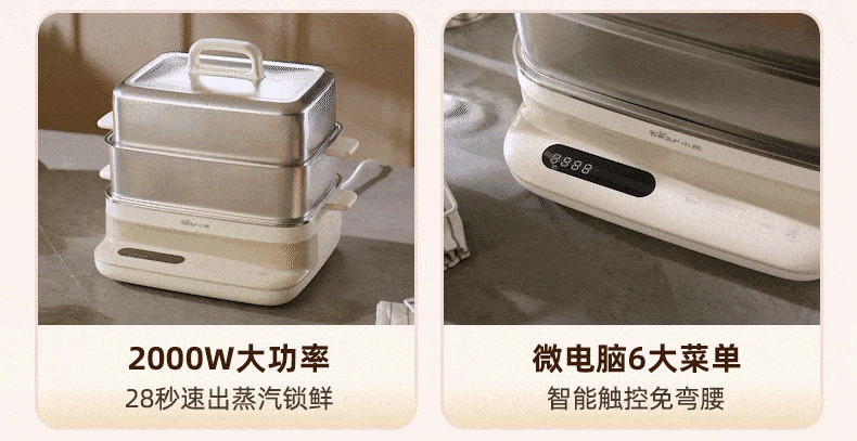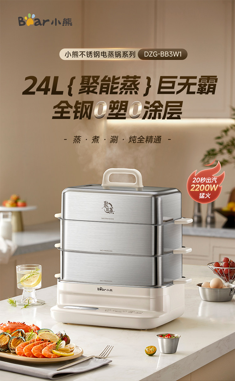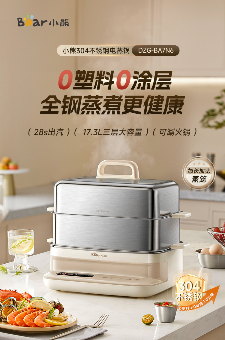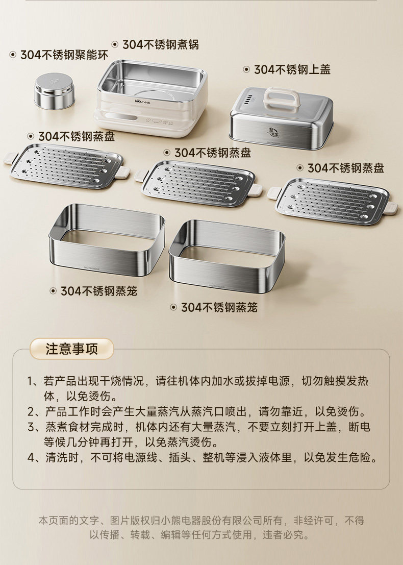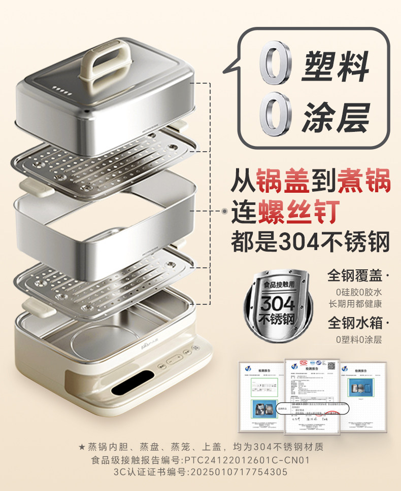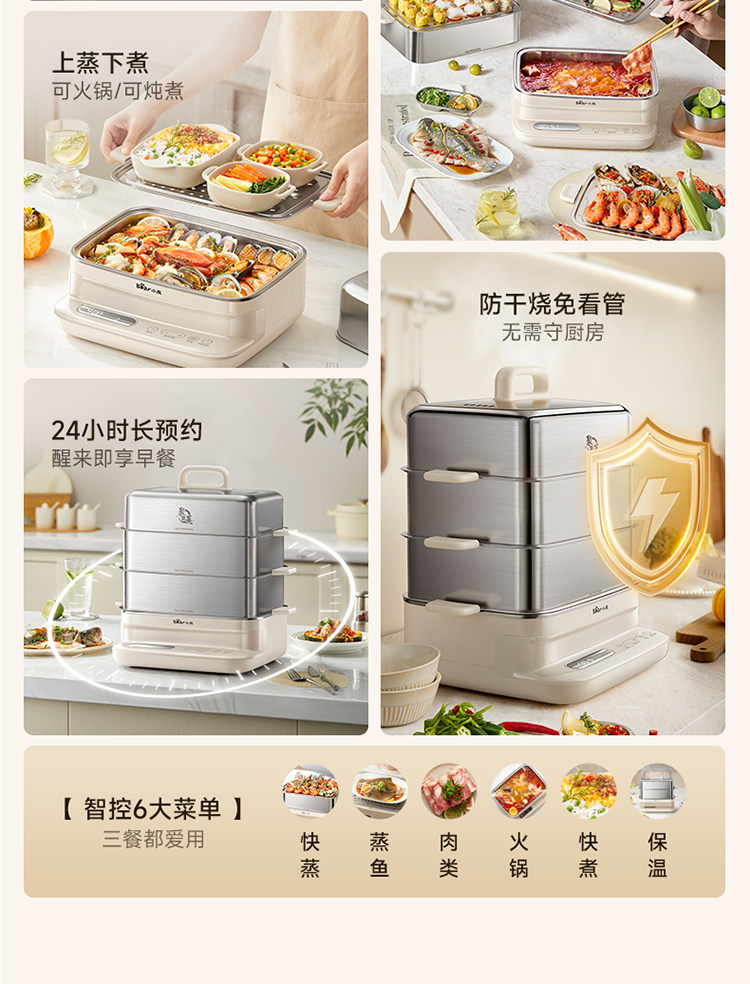 小熊电蒸锅多功能蒸煮一体锅不锈钢大容量早餐机蒸锅家用2026新款