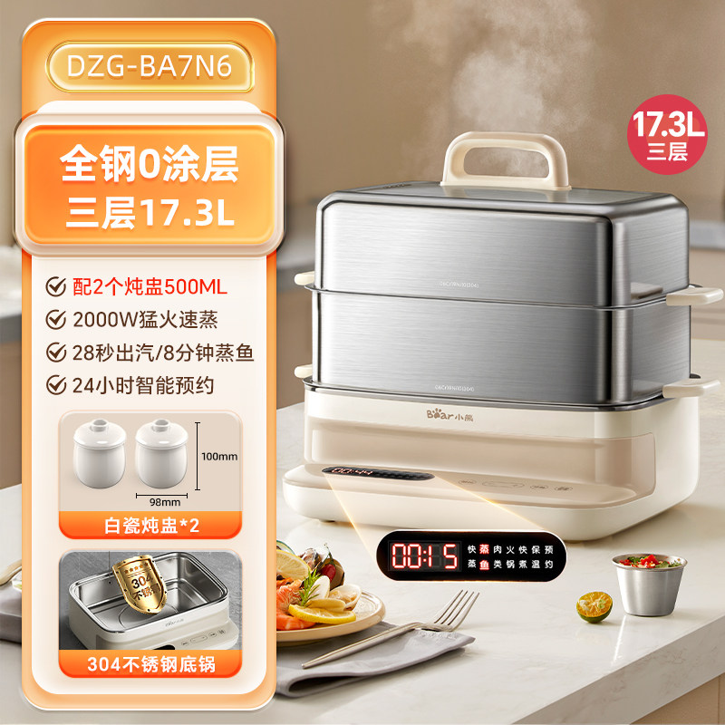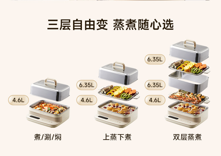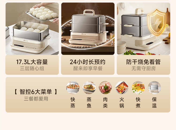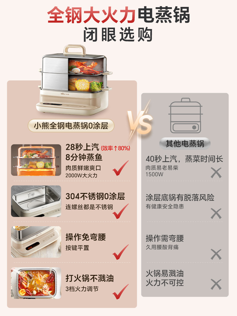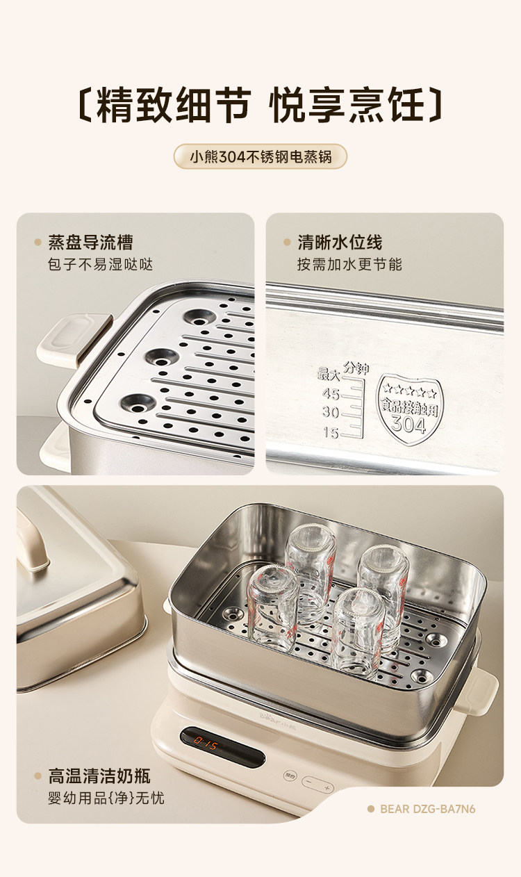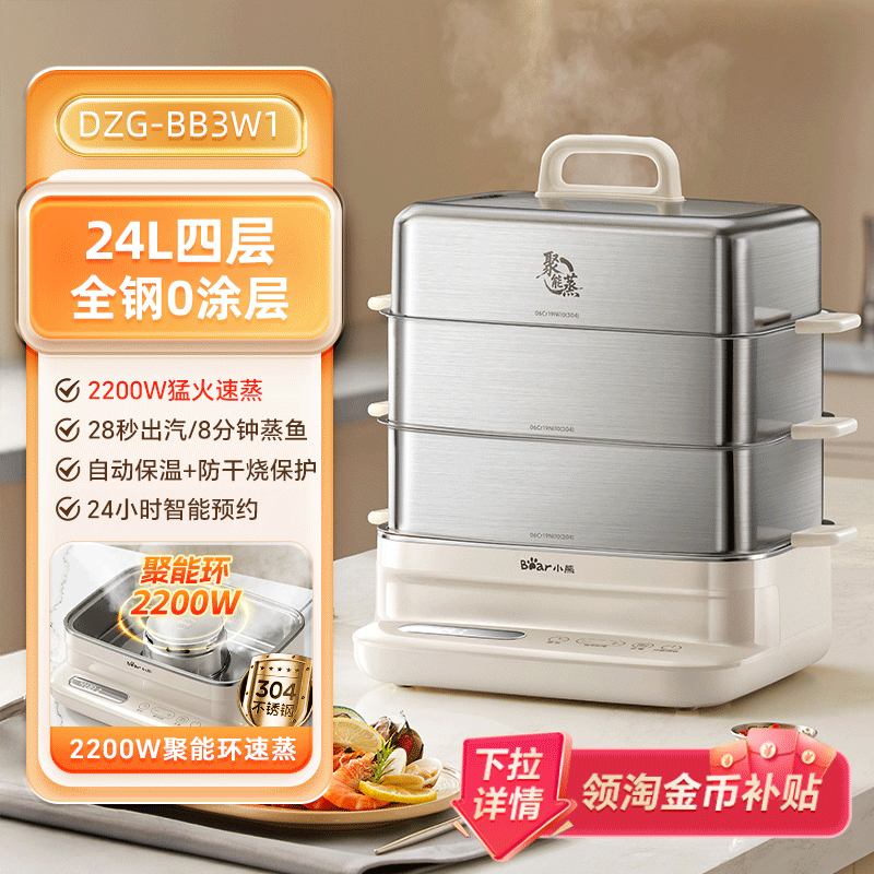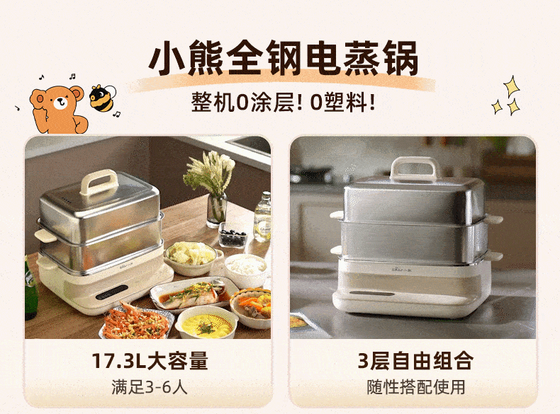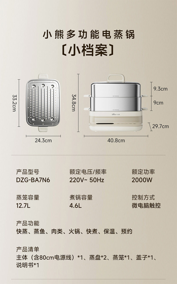 小熊电蒸锅多功能蒸煮一体锅不锈钢大容量早餐机蒸锅家用2026新款