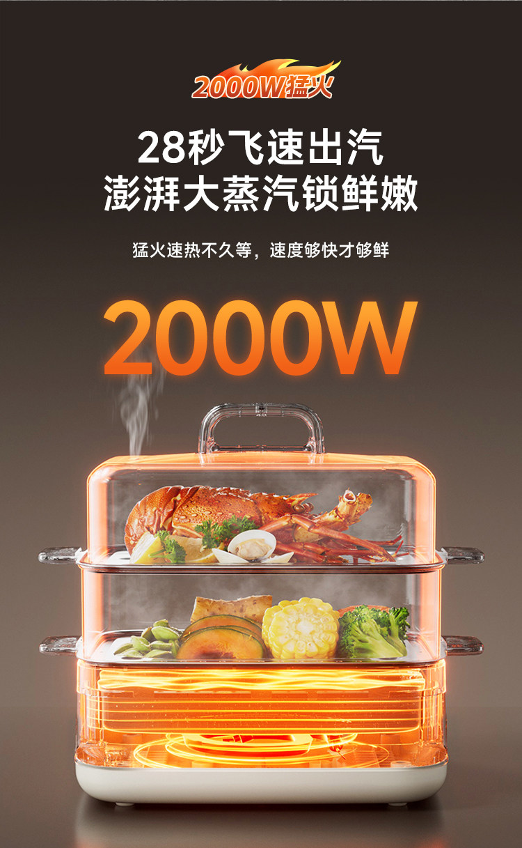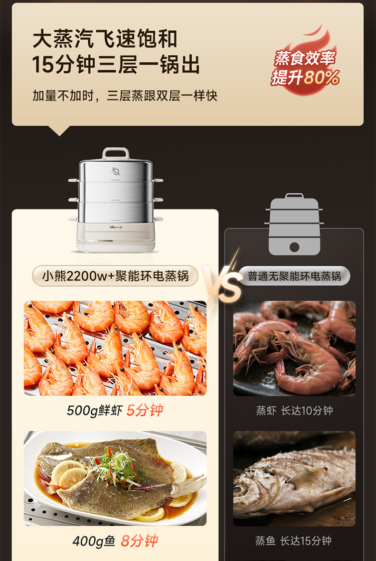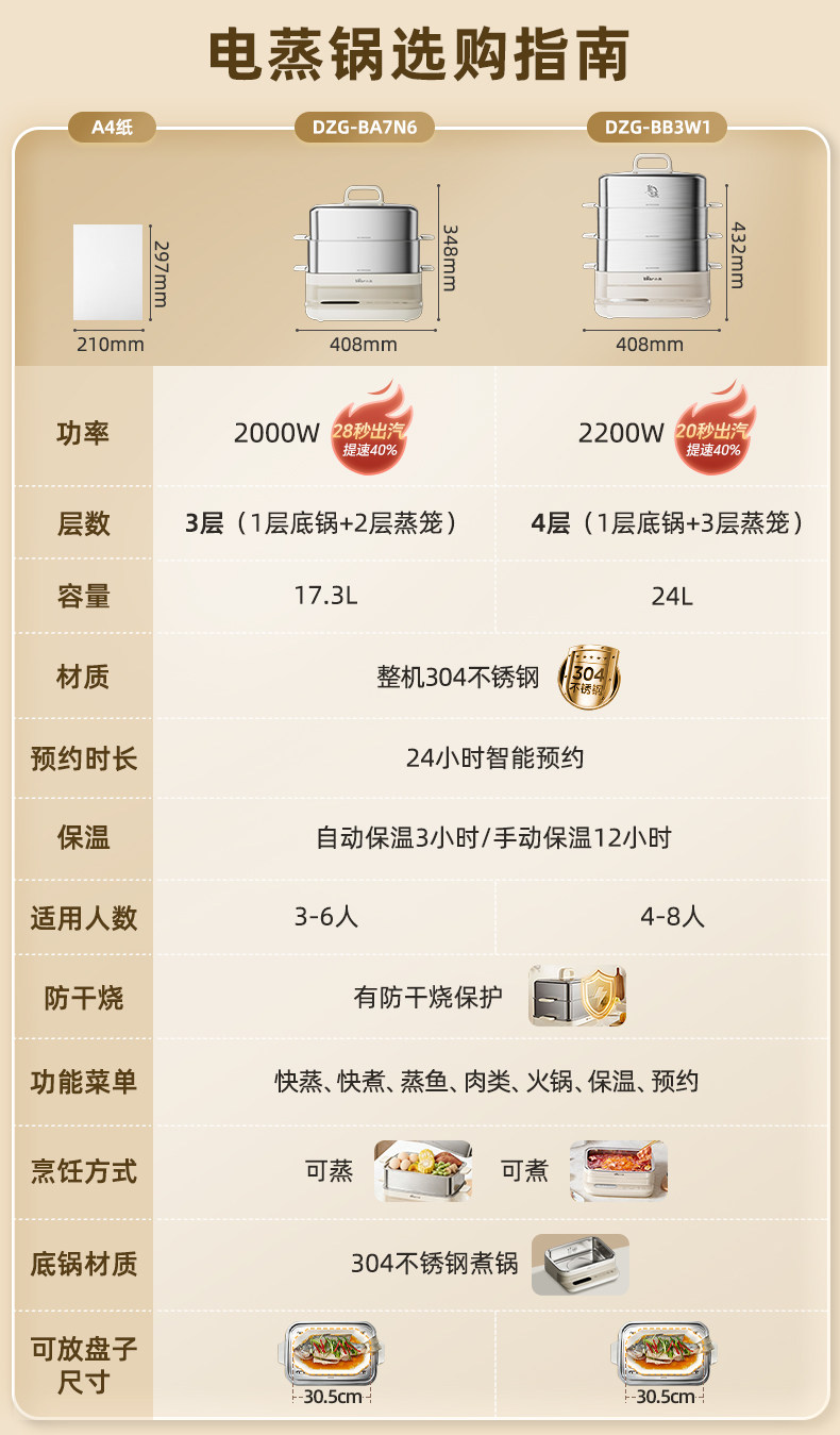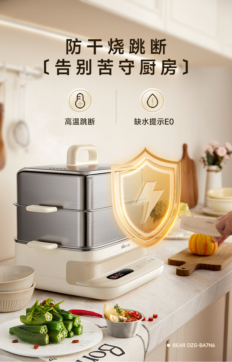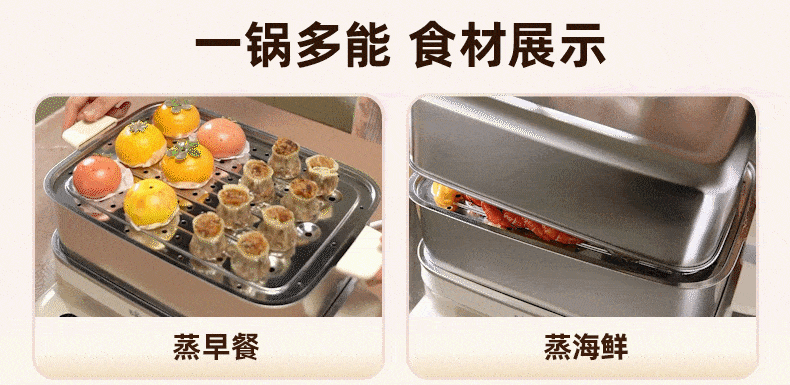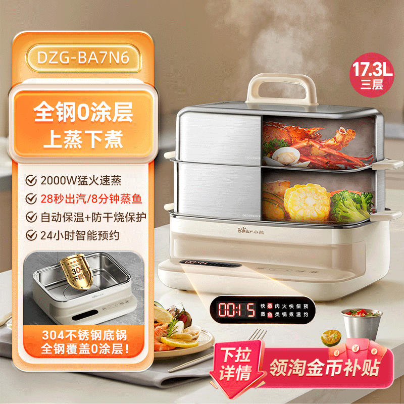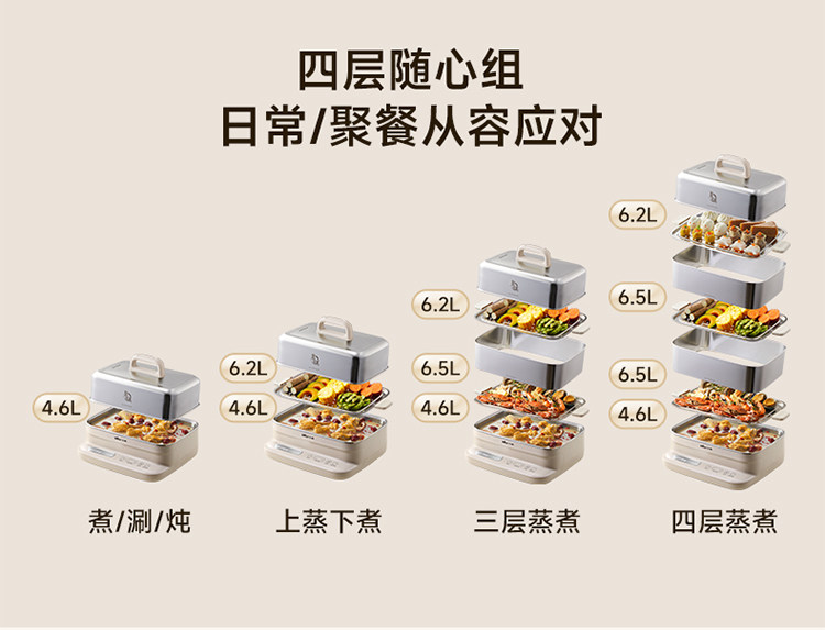 小熊电蒸锅多功能蒸煮一体锅不锈钢大容量早餐机蒸锅家用2026新款