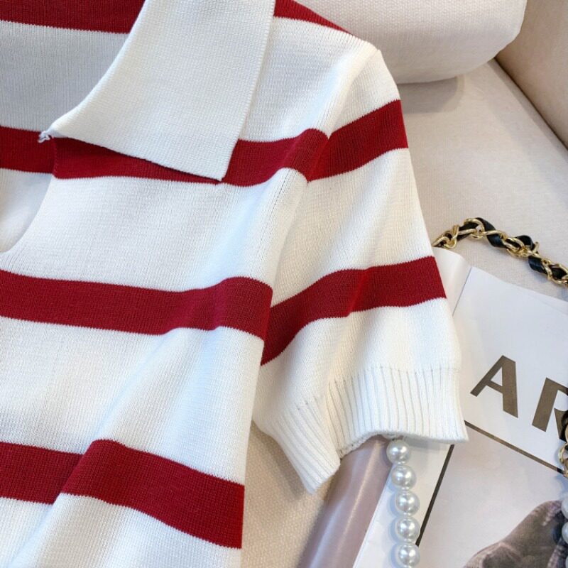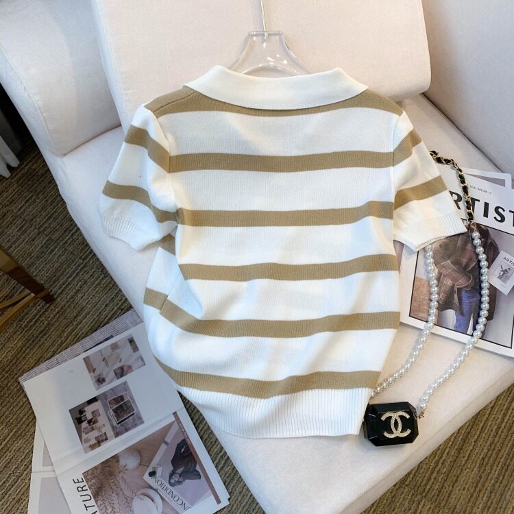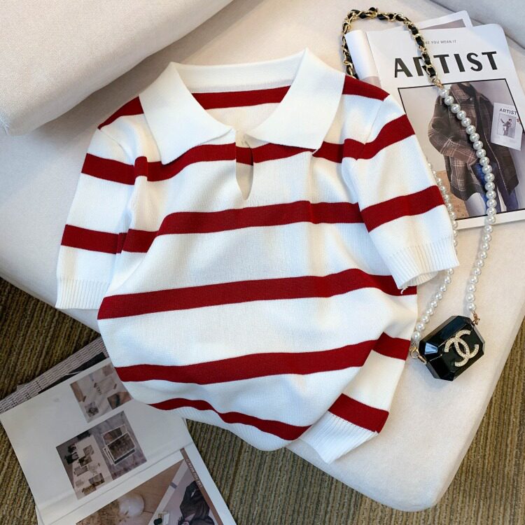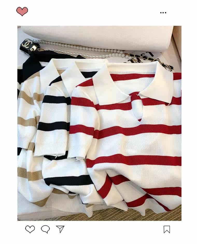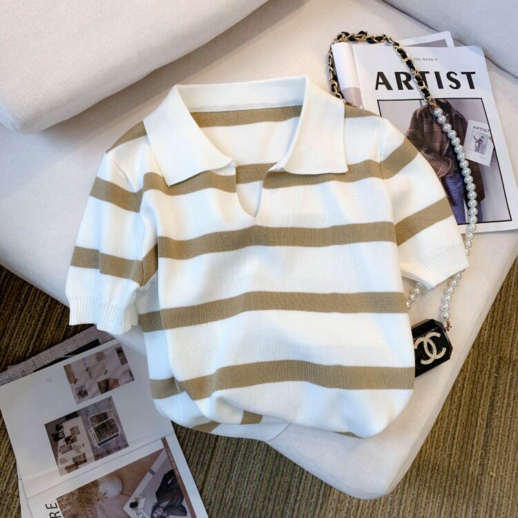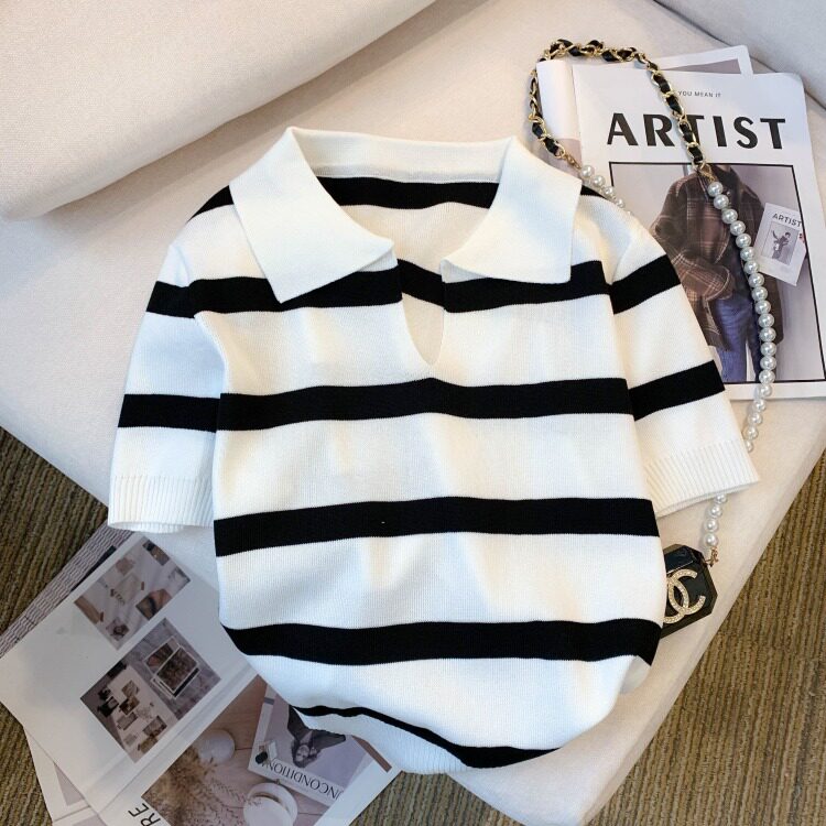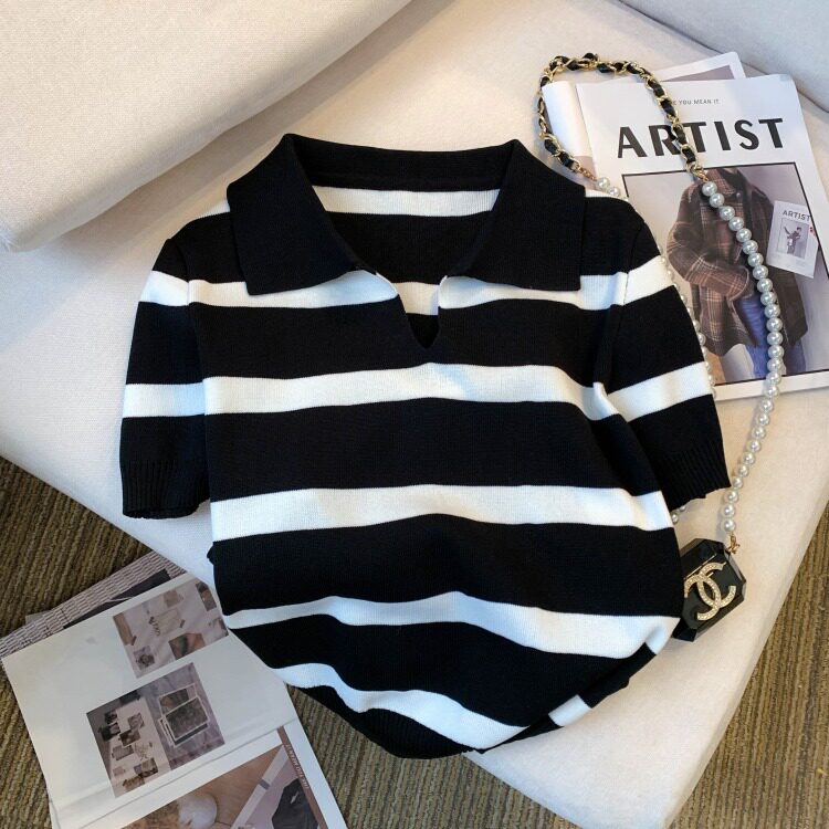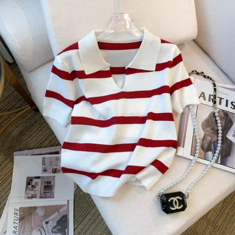 小个子短款条纹短袖t恤女夏2026新款韩版简约小众时尚Polo领上衣