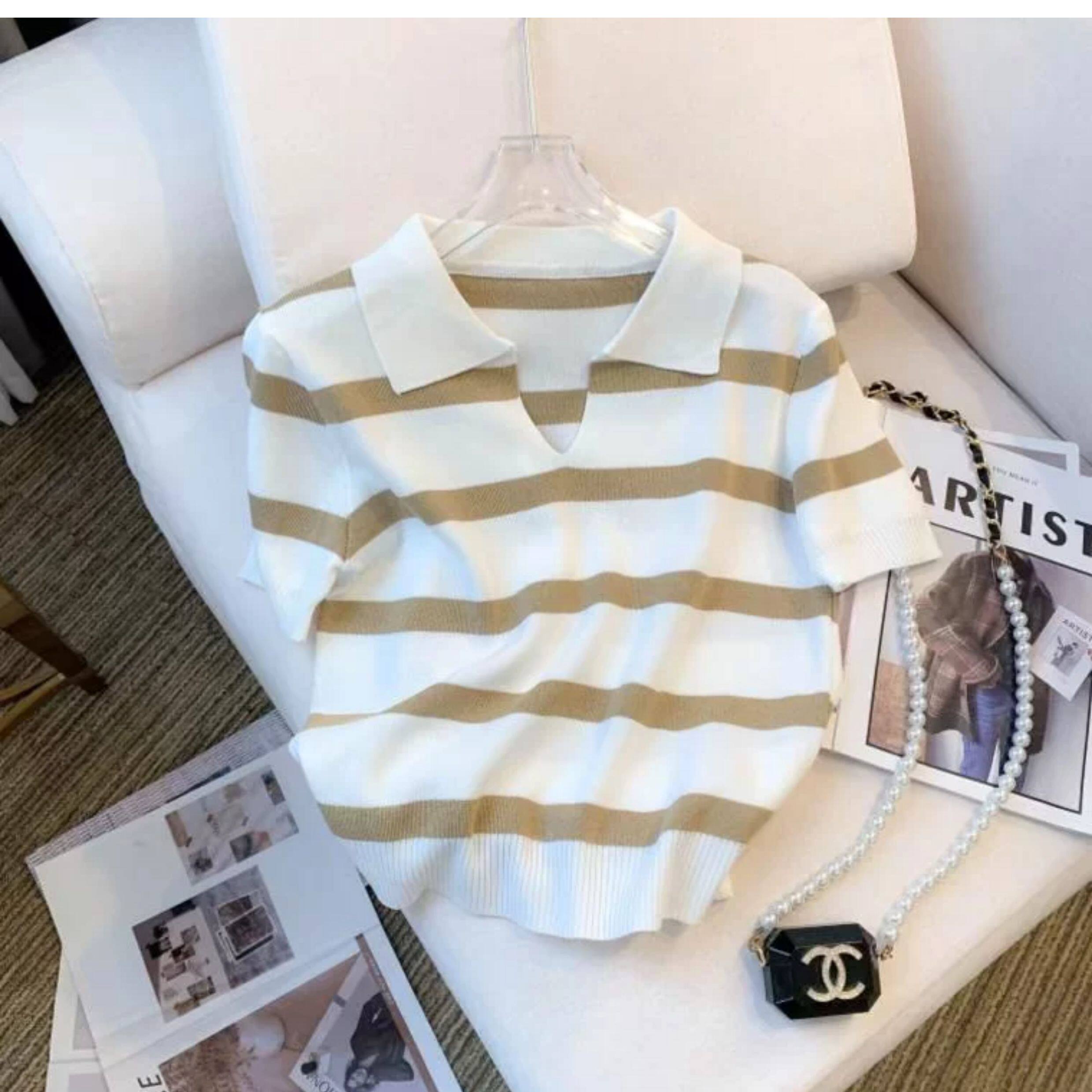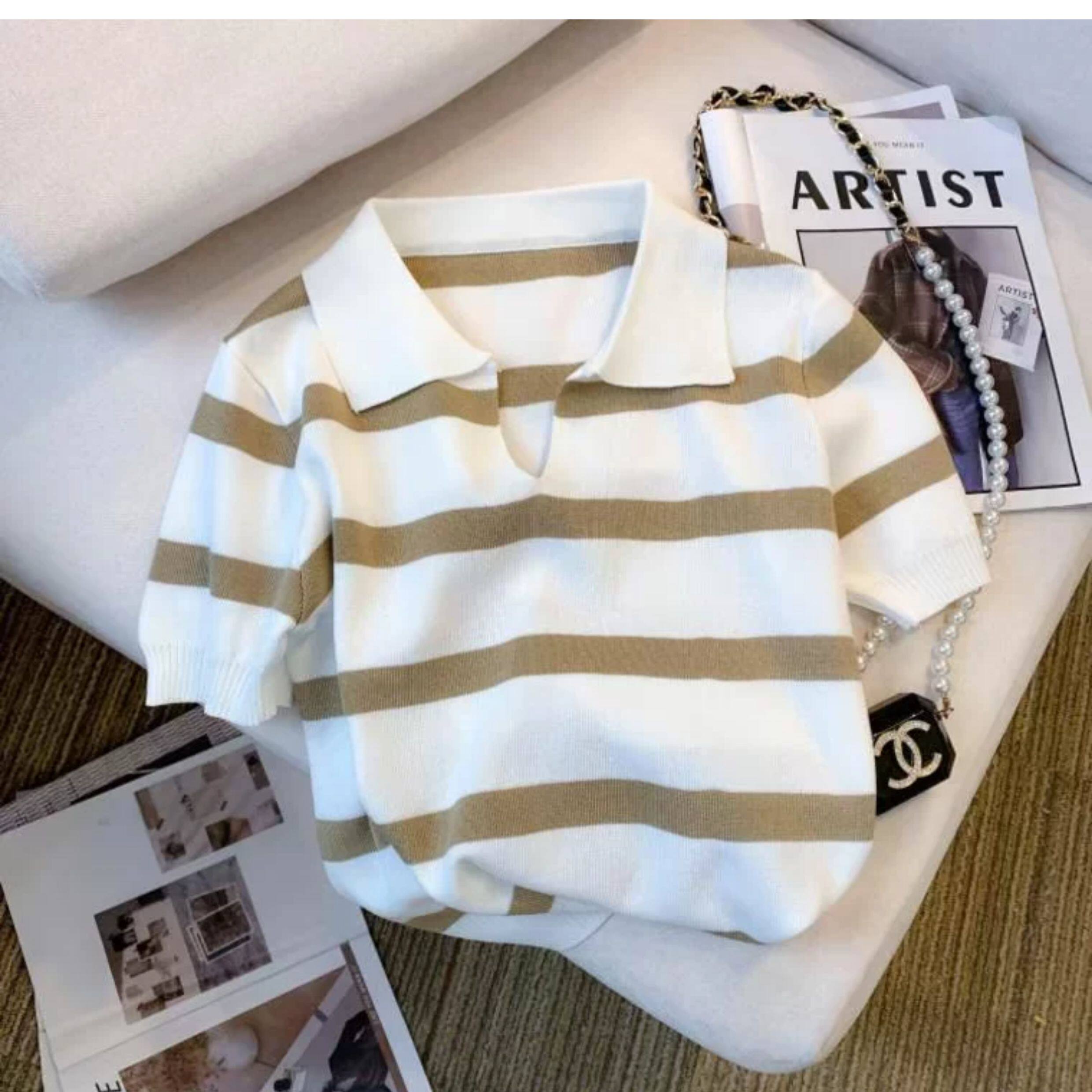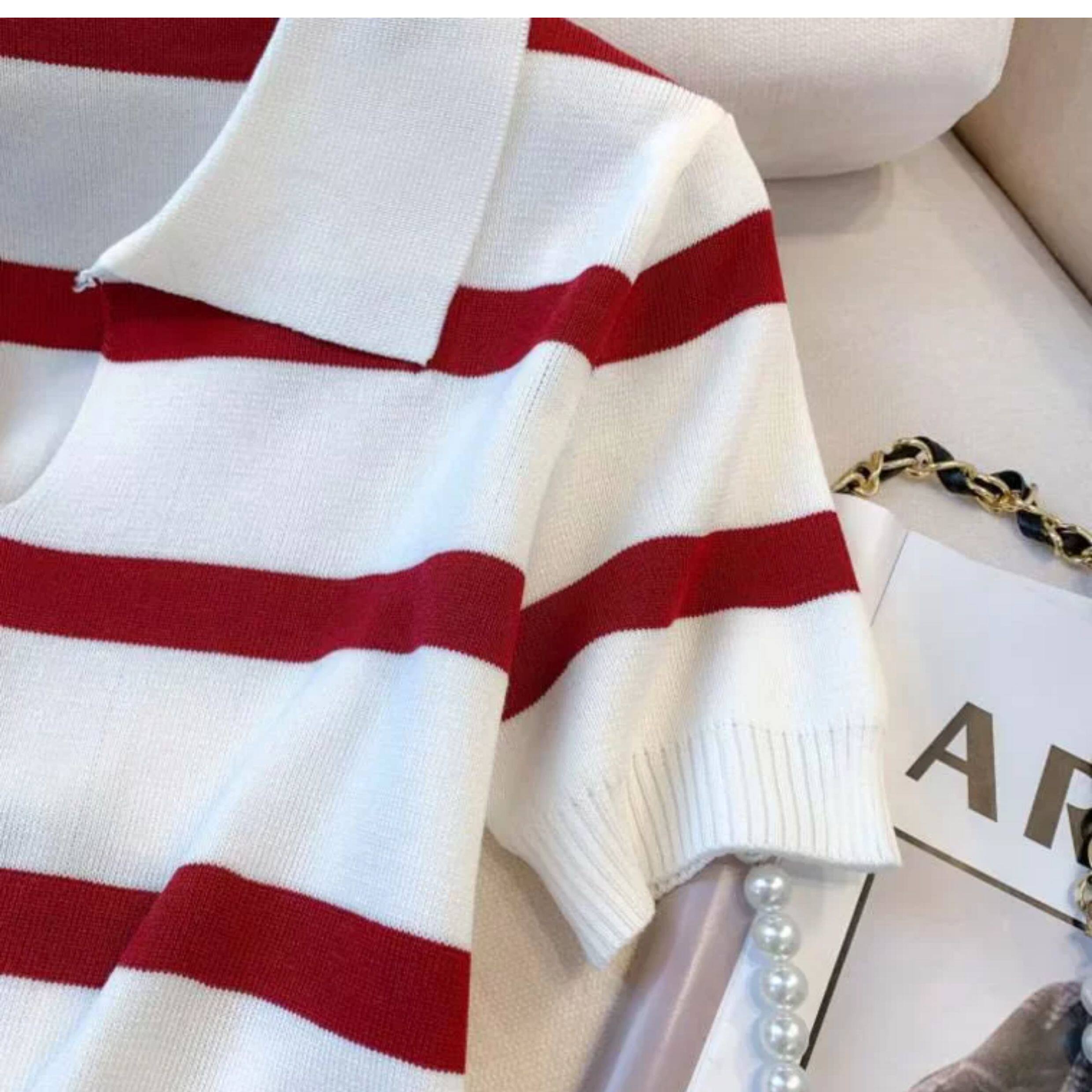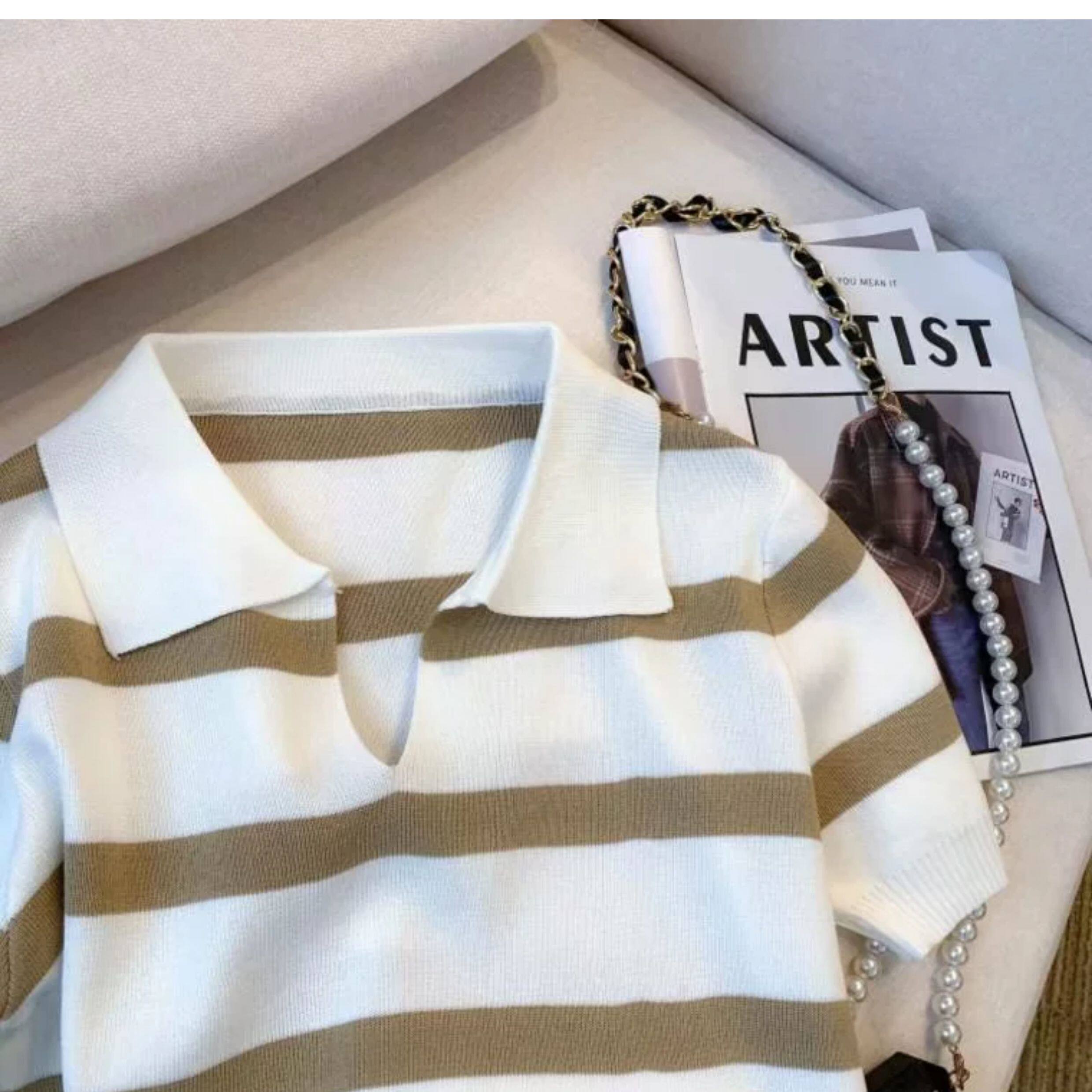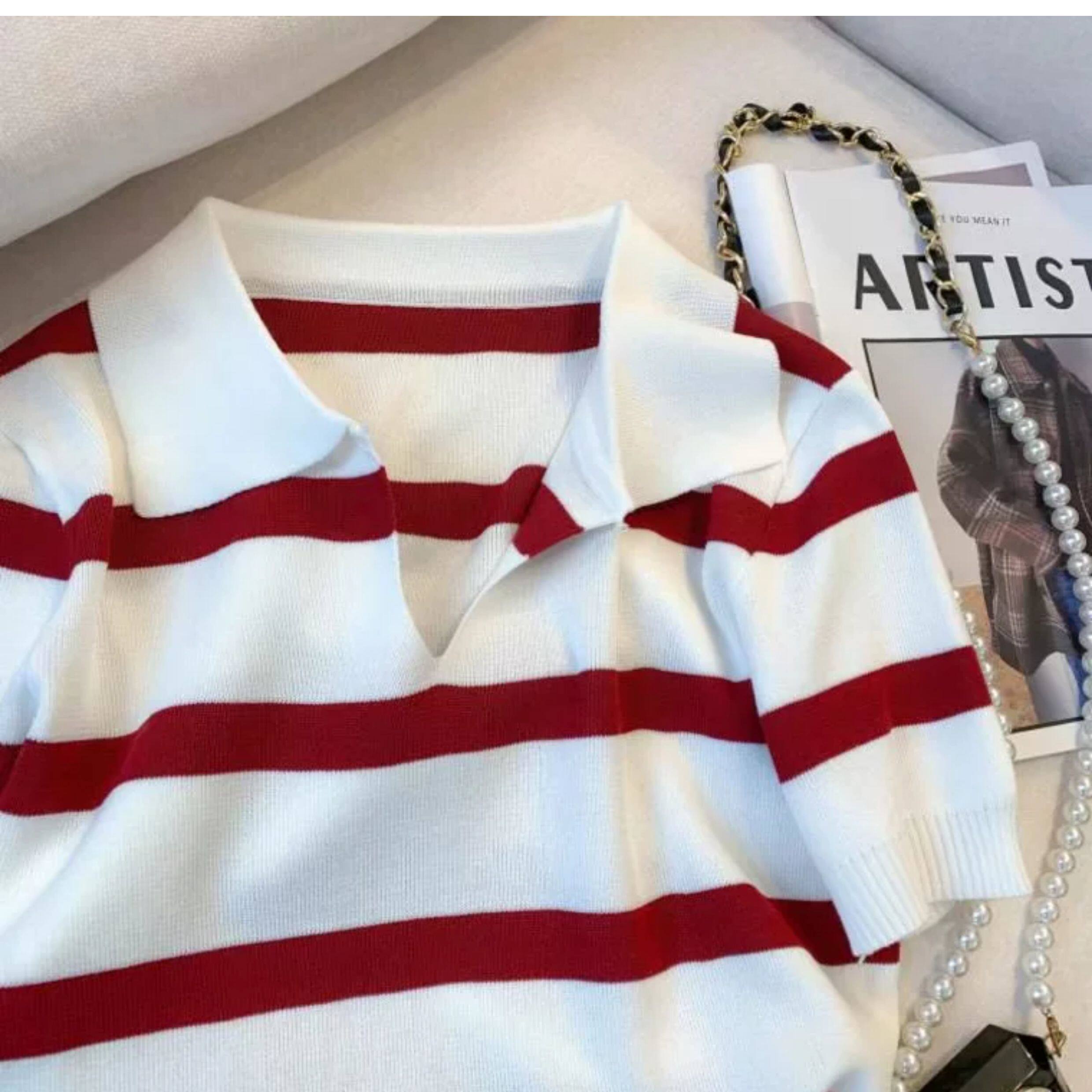 小个子短款条纹短袖t恤女夏2026新款韩版简约小众时尚Polo领上衣