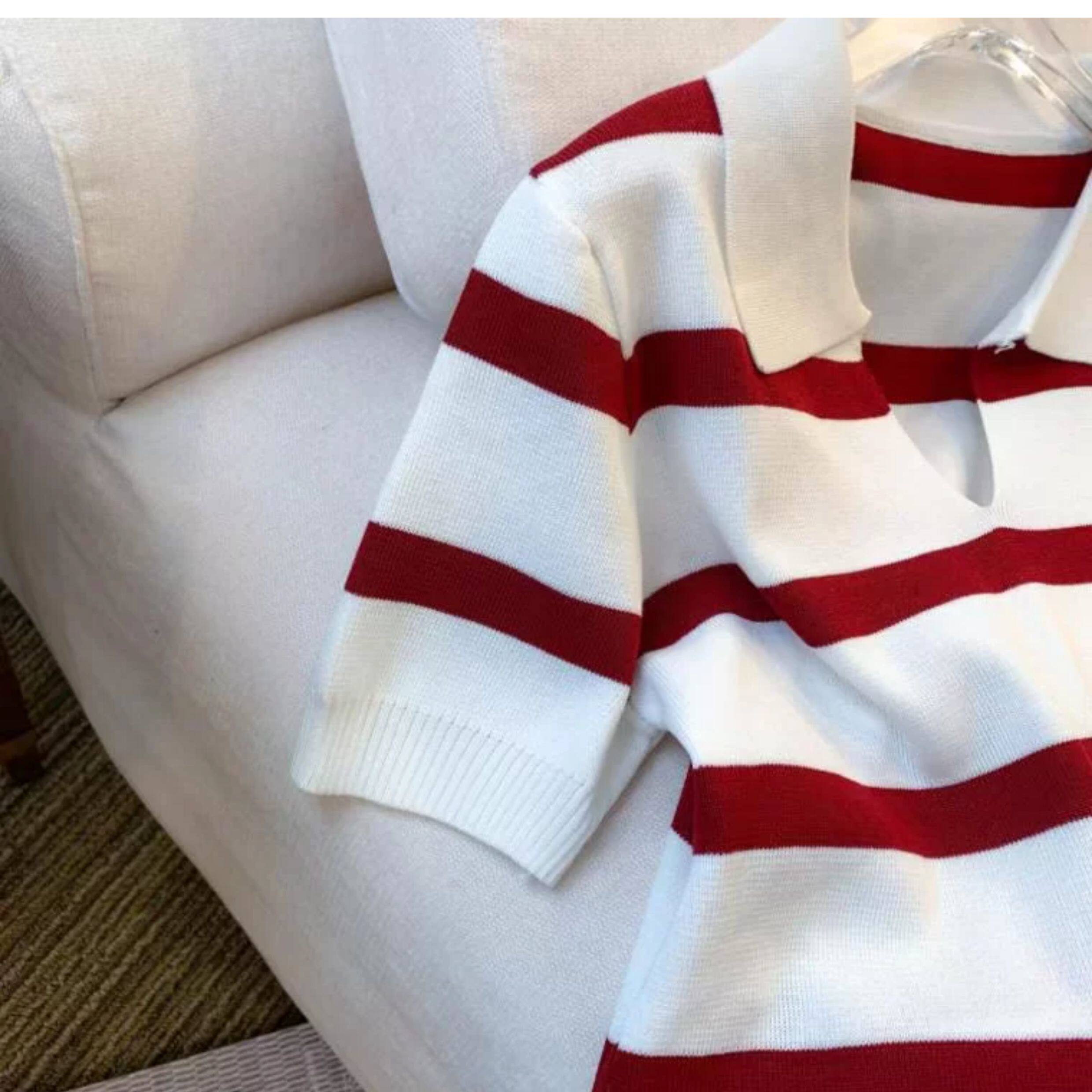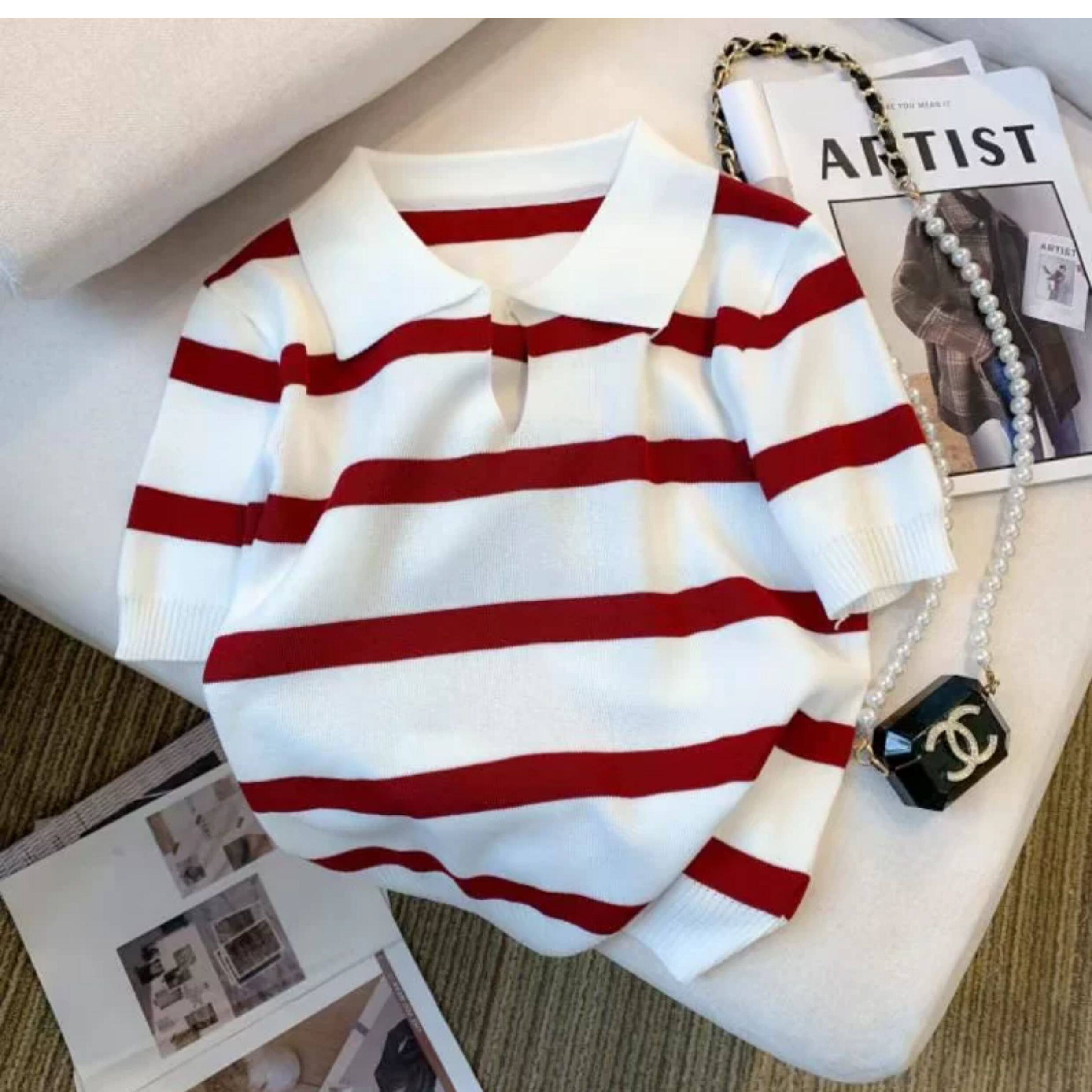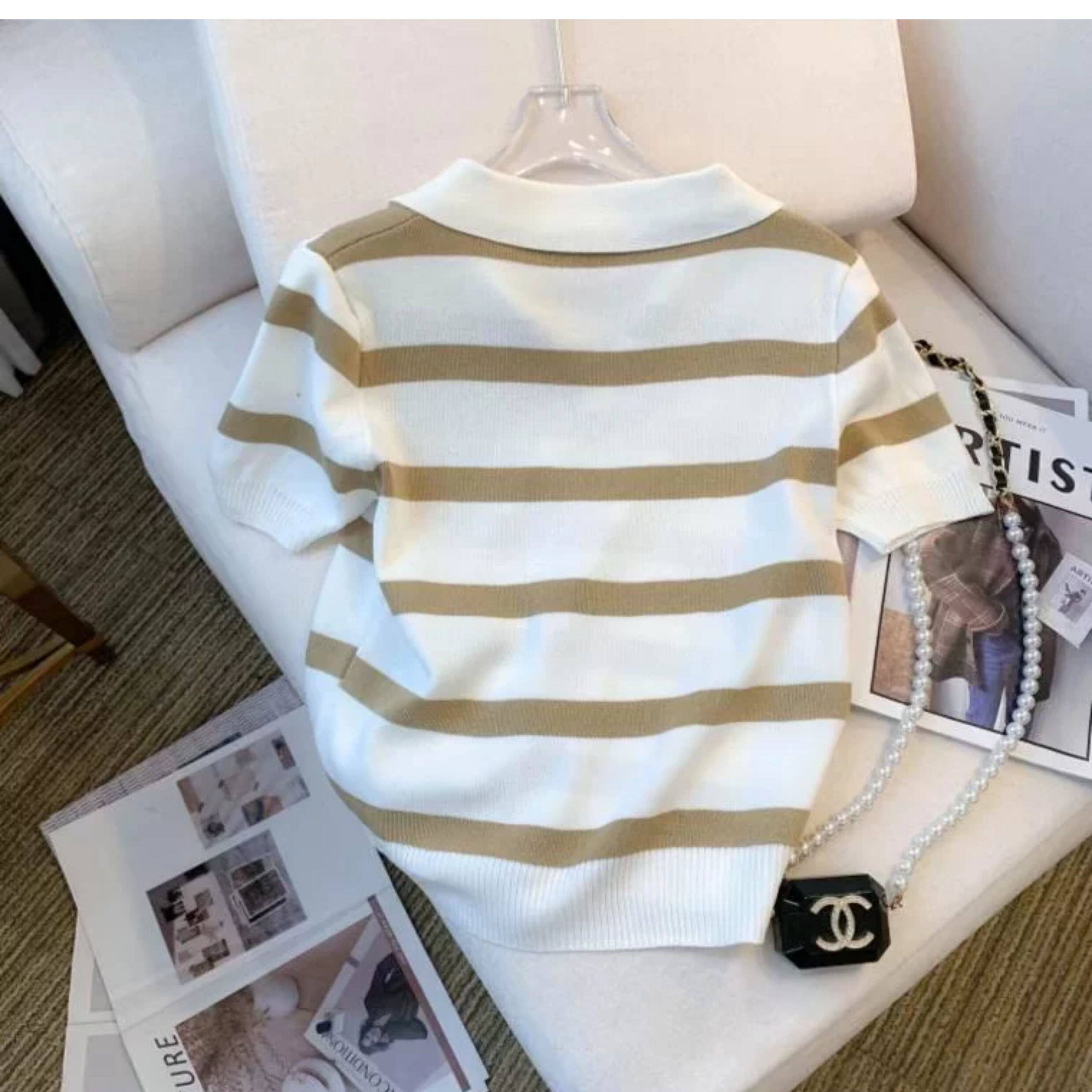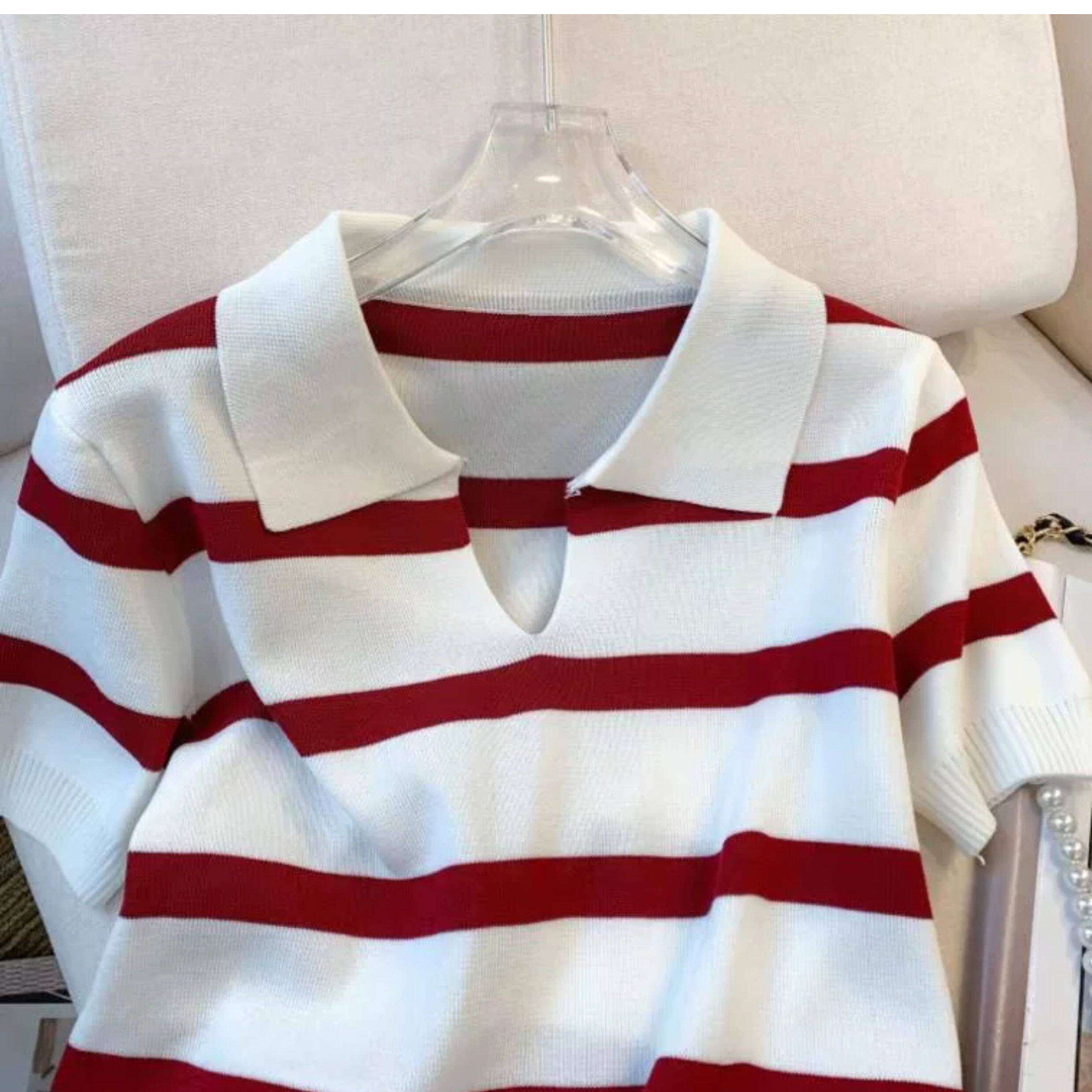 小个子短款条纹短袖t恤女夏2026新款韩版简约小众时尚Polo领上衣