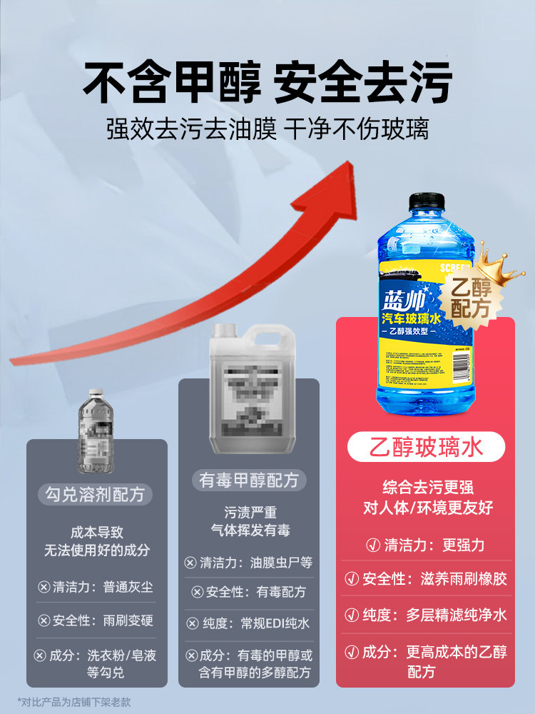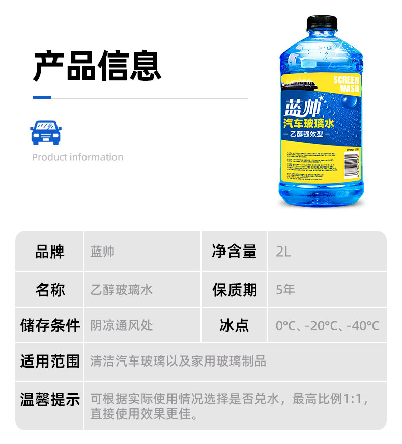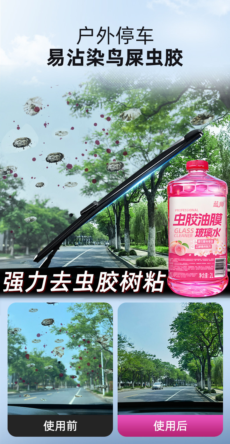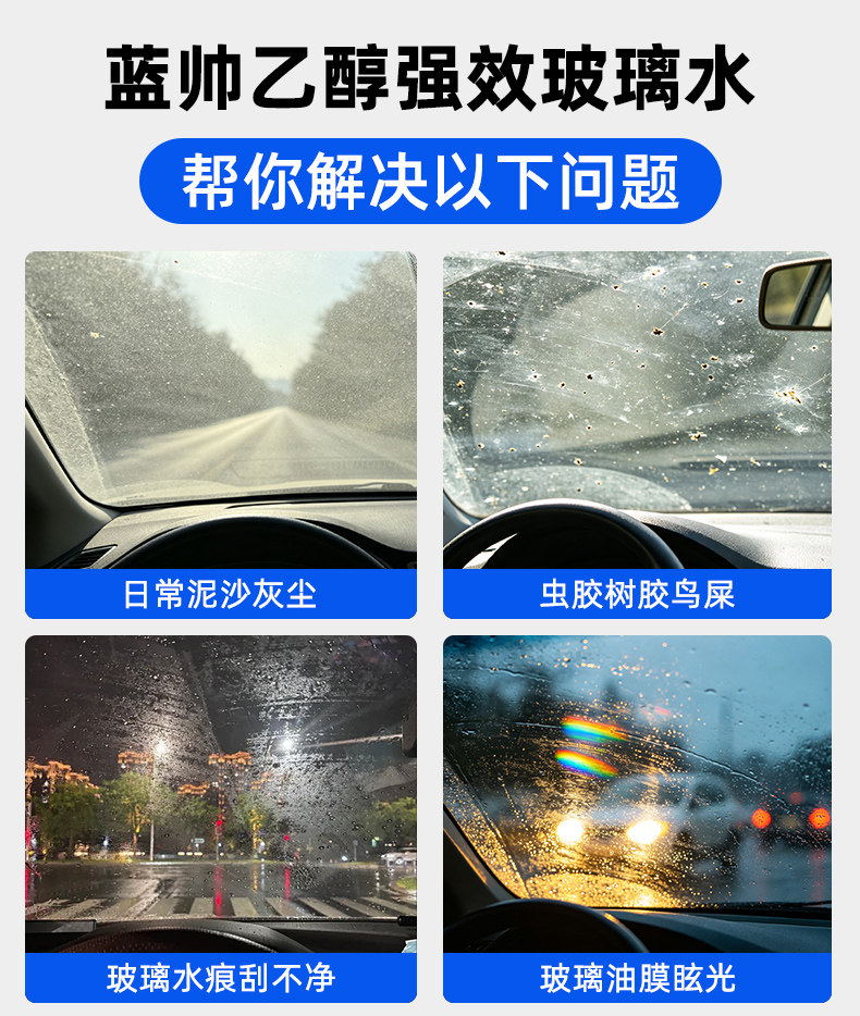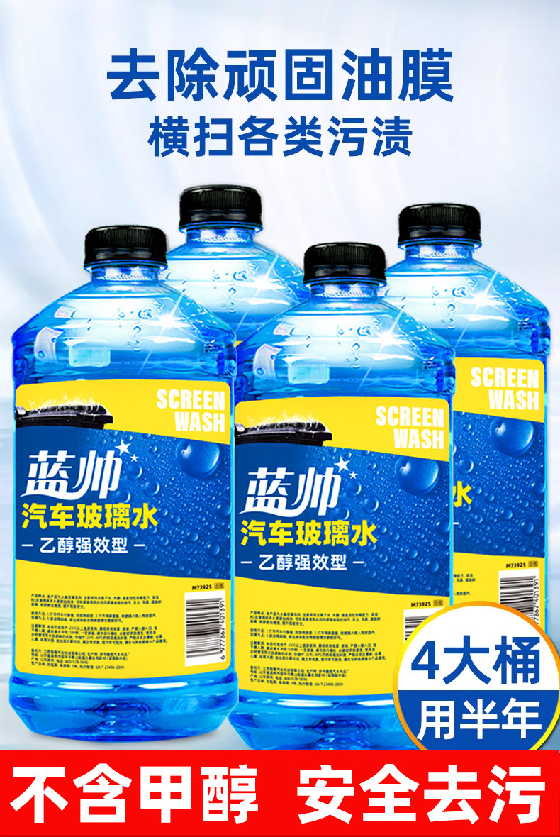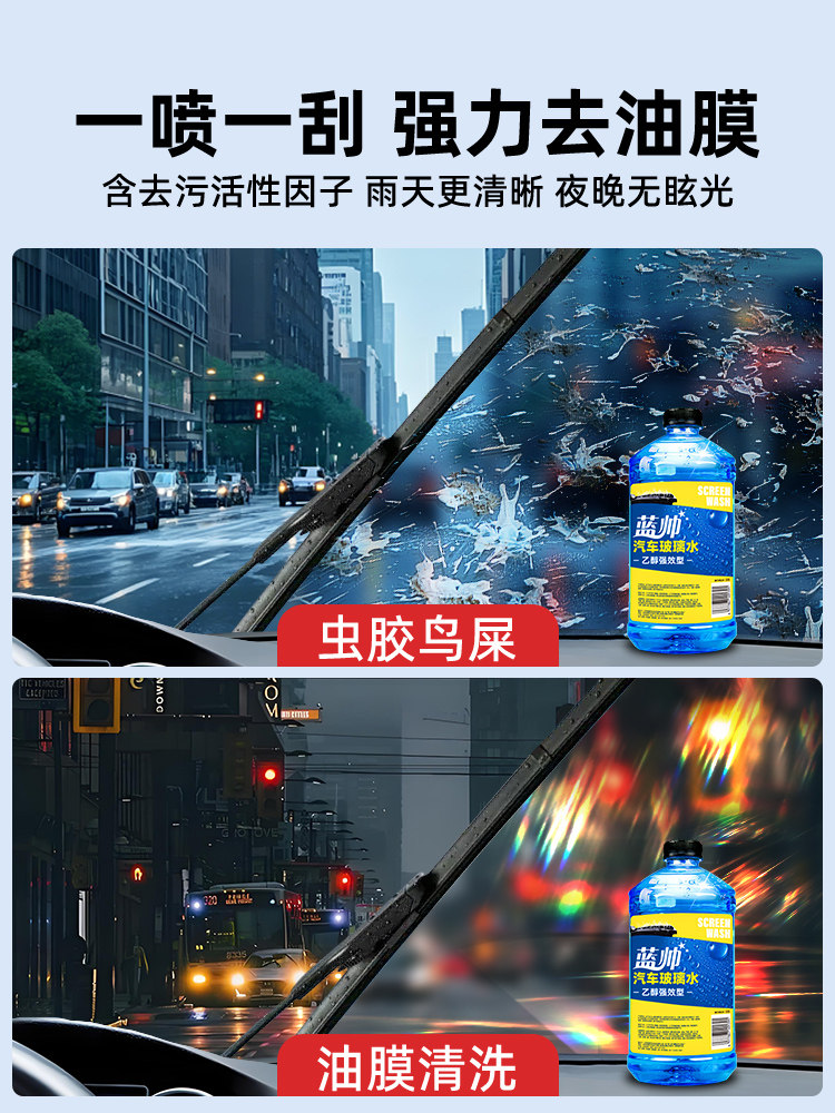 蓝帅汽车玻璃水强力去污去油膜虫胶专用车用乙醇雨刮器液四季通用