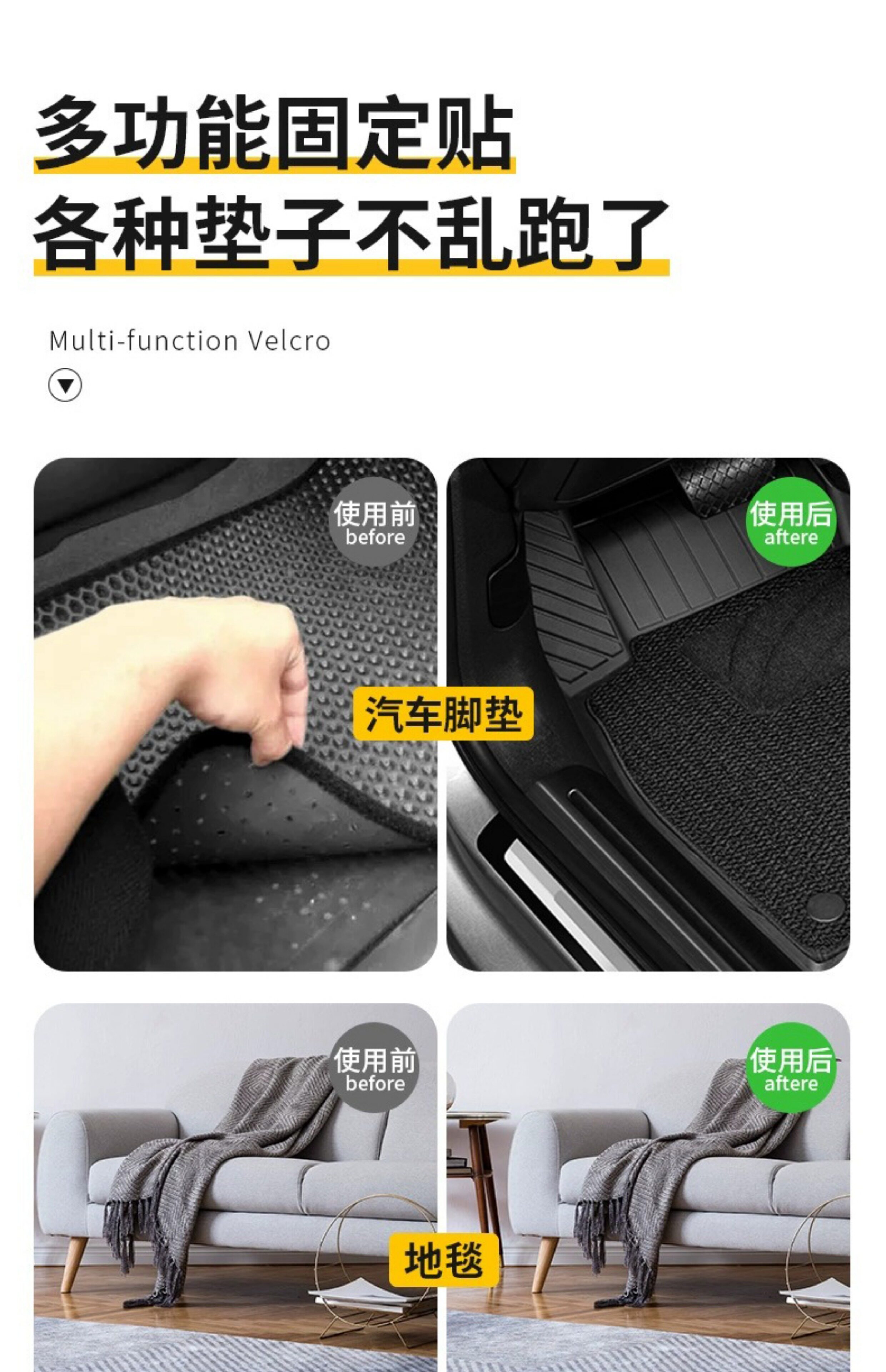 汽车脚垫隐形固定贴神器卡扣防滑耐高温双面胶魔术贴车用背胶贴片