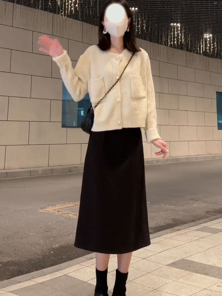 HomeProducts秋装修身显瘦短款毛衣时尚减龄上衣小香风长袖单排扣圆领针织衫女