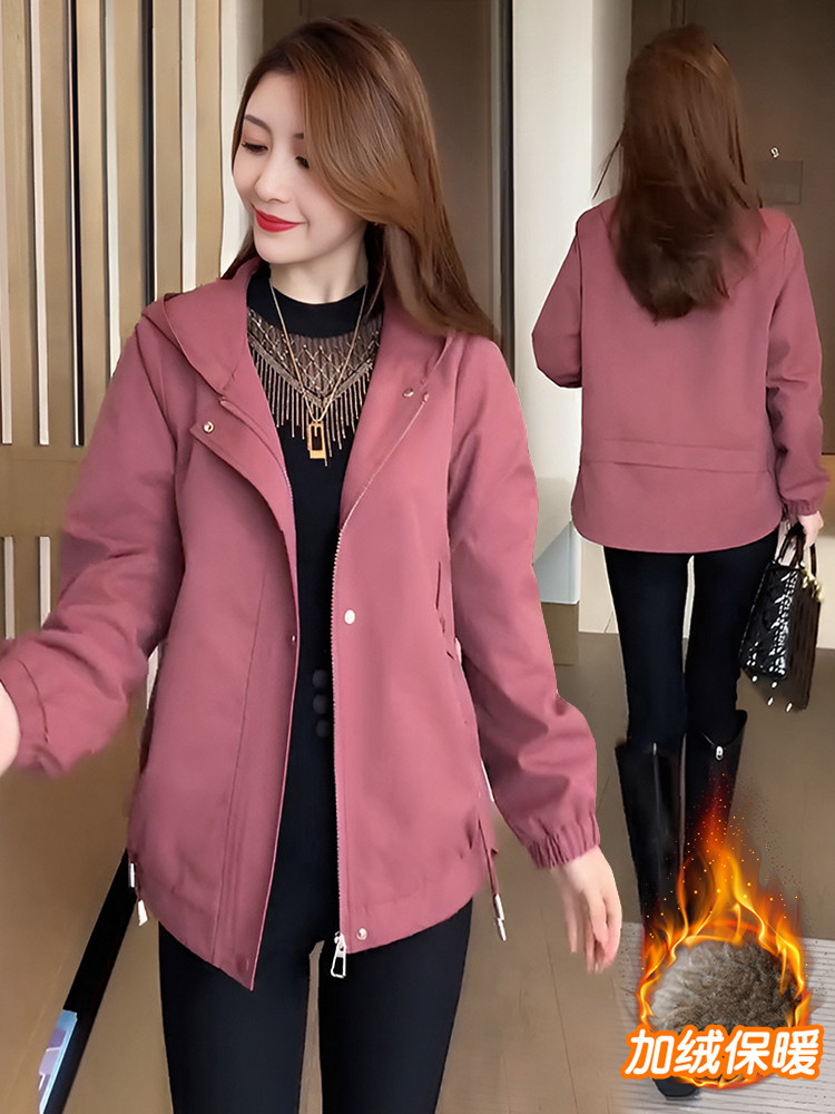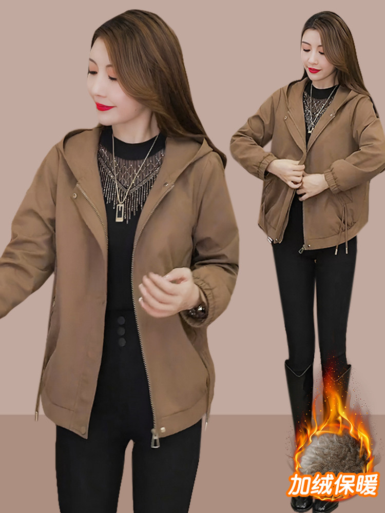 秋冬休闲连帽外套女2025新款爆款时尚妈妈装大码女士加绒夹克上衣