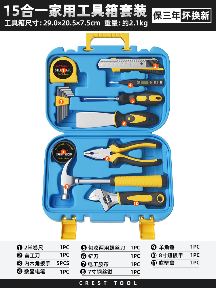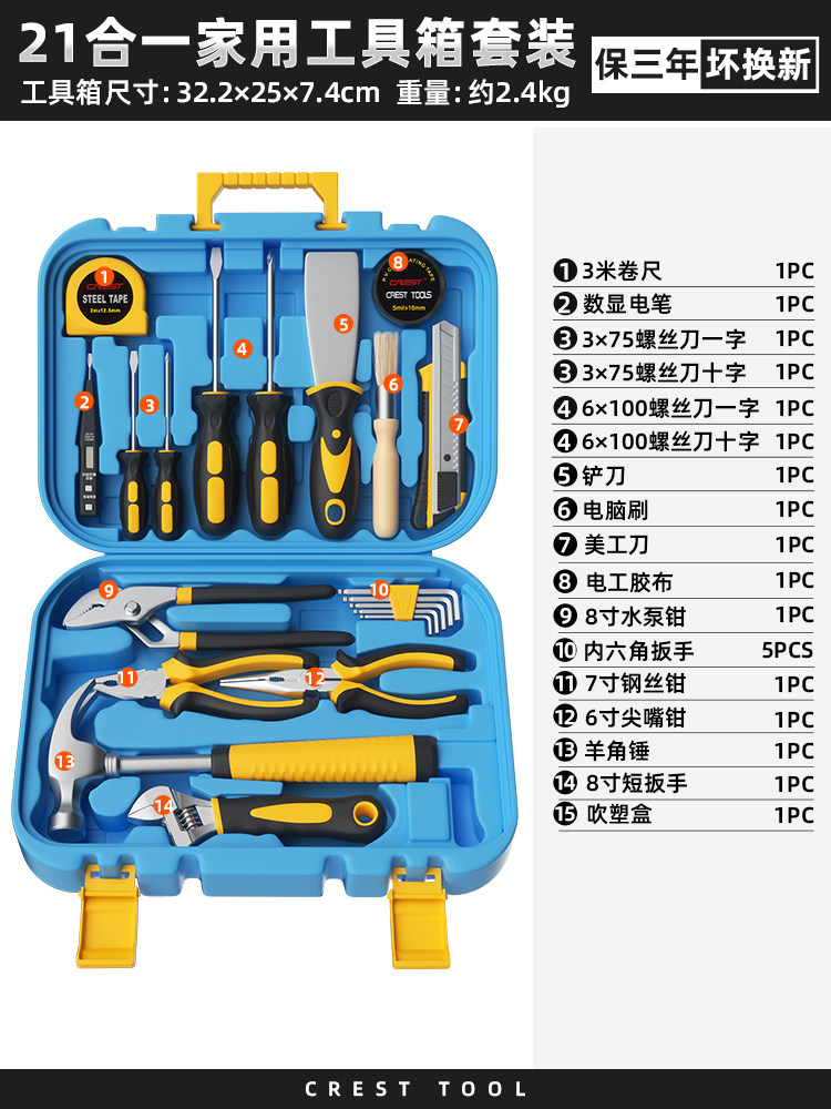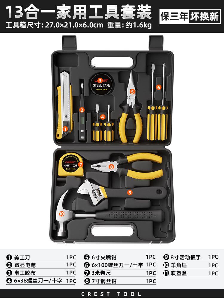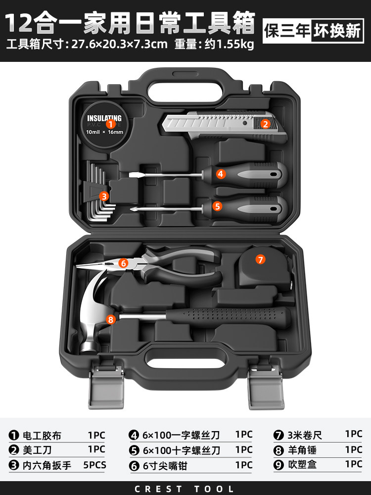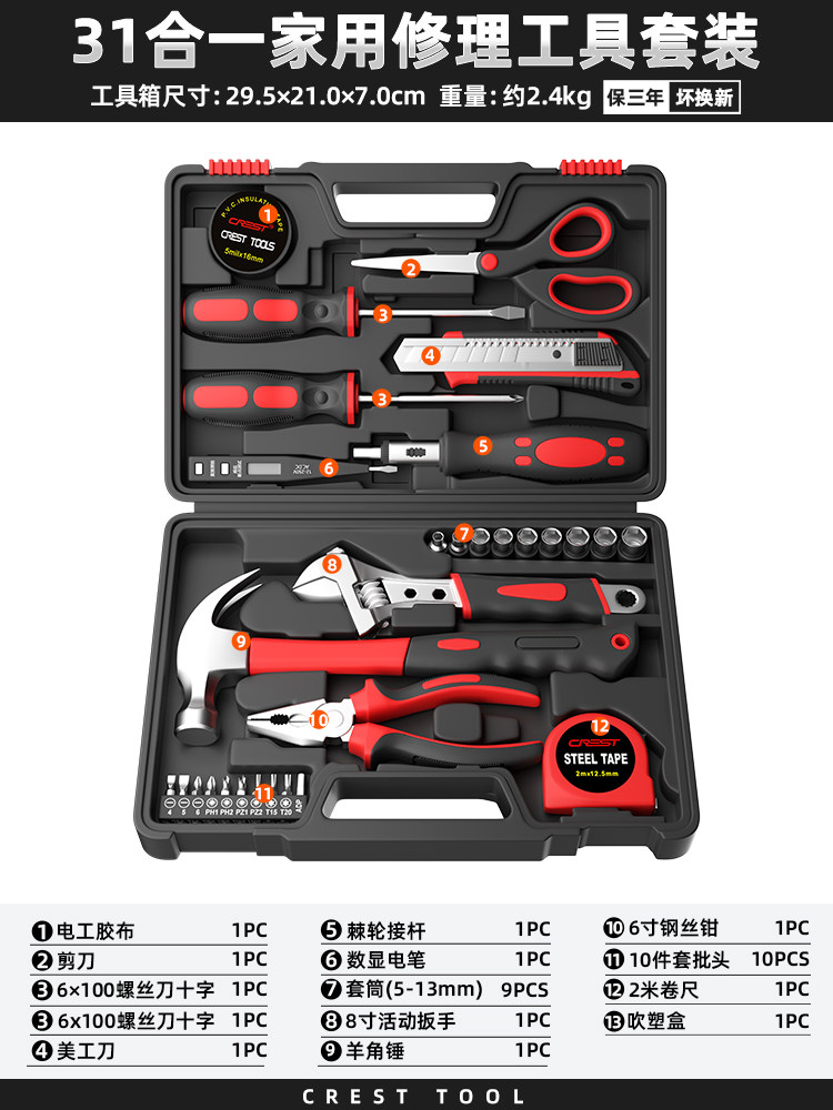 瑞德工具经典家用组合工具套装锤子钳子螺丝刀卷尺扳手全能工具