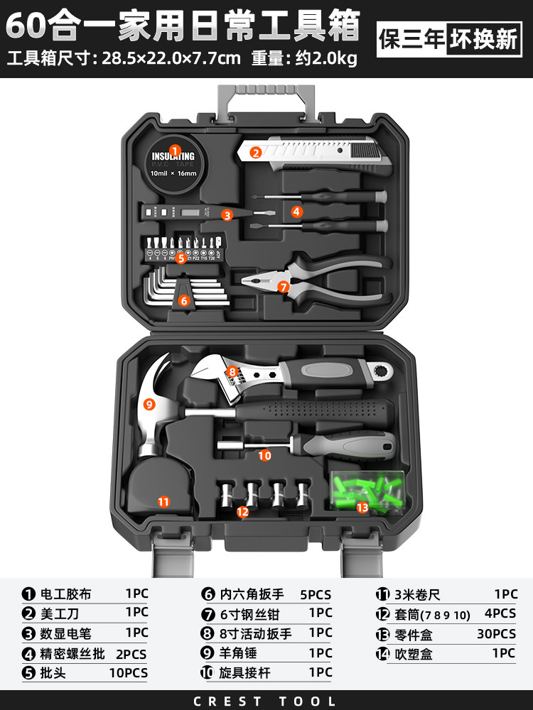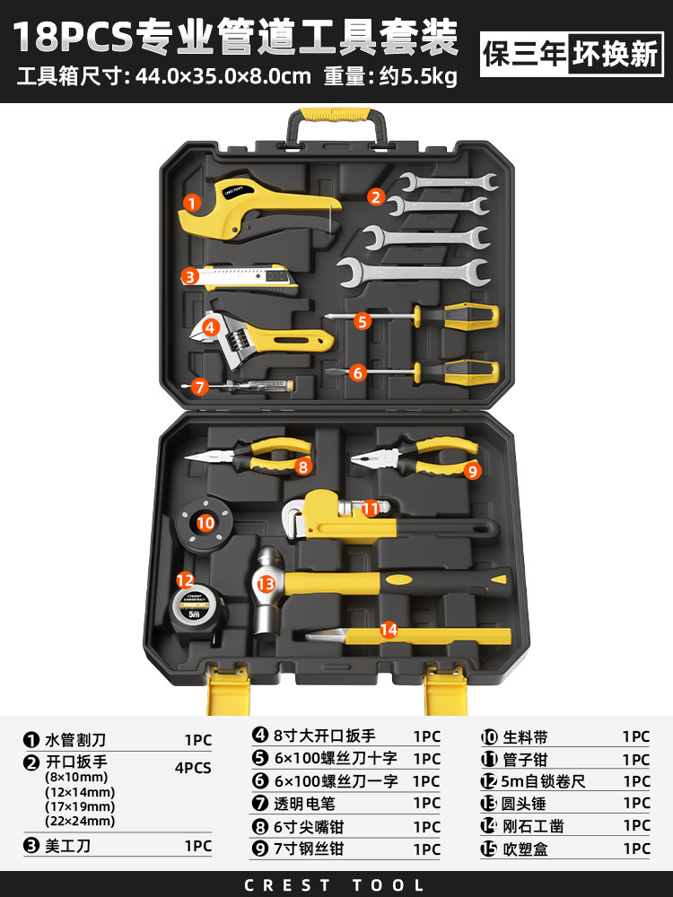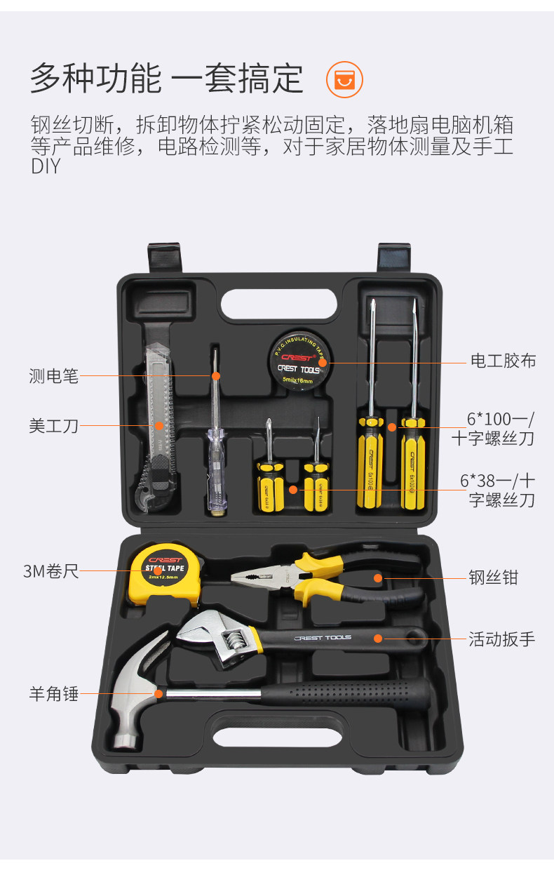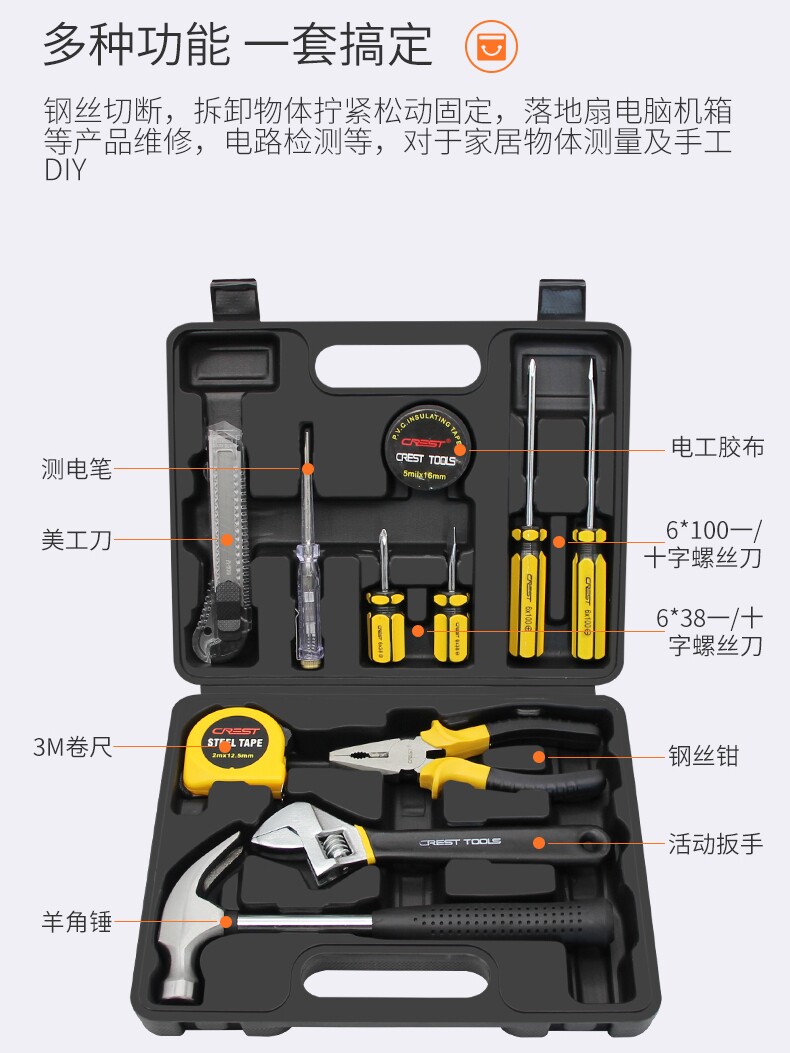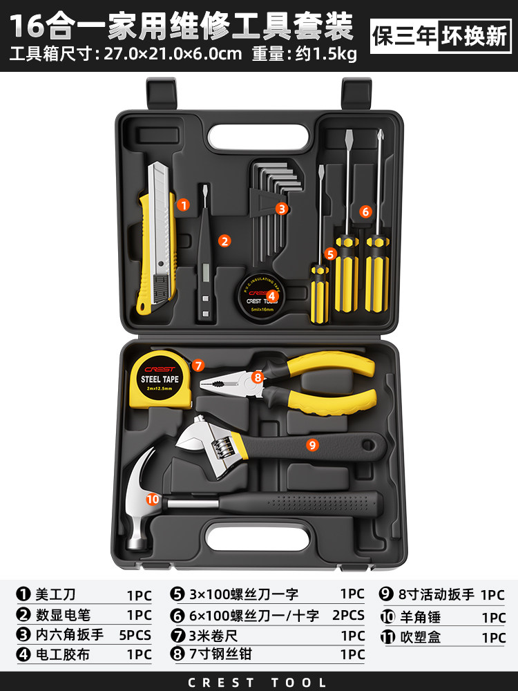 瑞德工具经典家用组合工具套装锤子钳子螺丝刀卷尺扳手全能工具