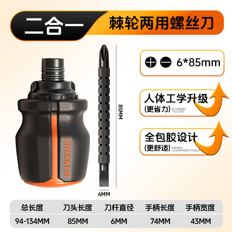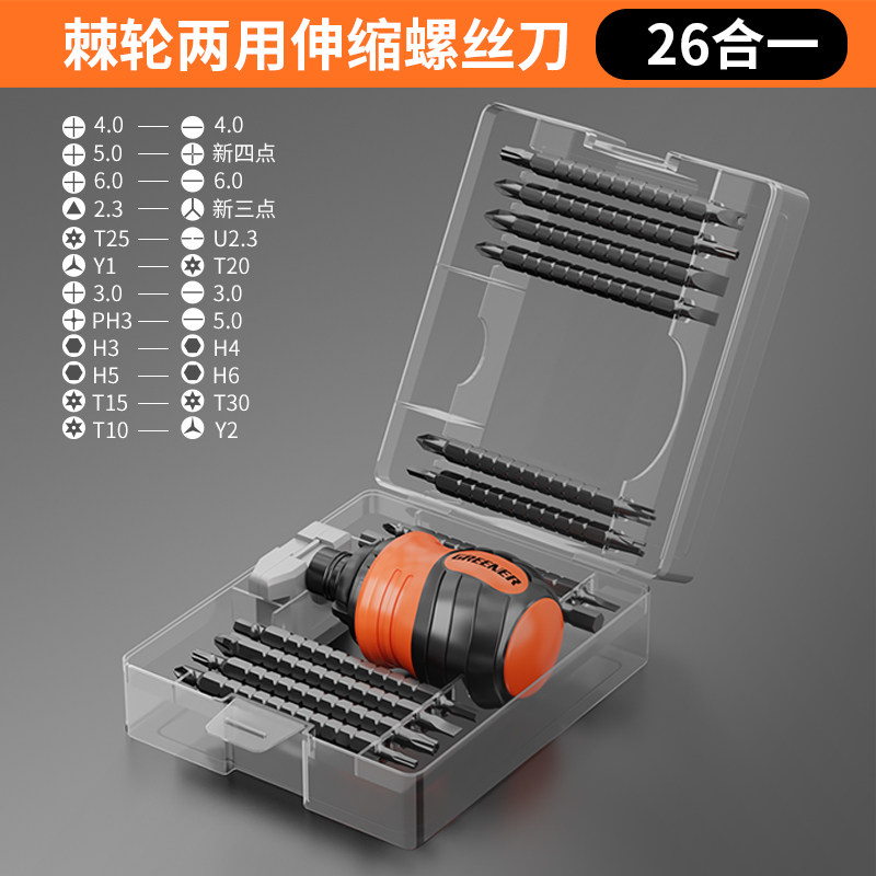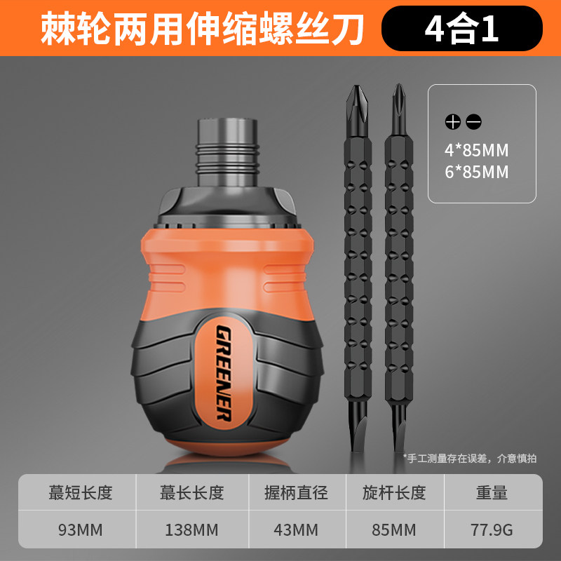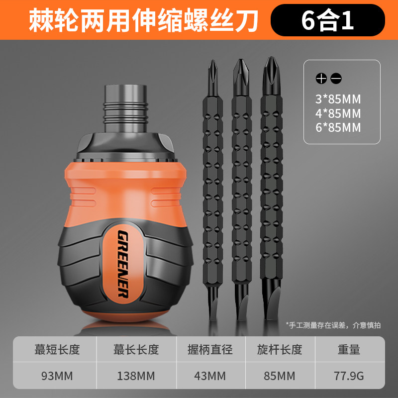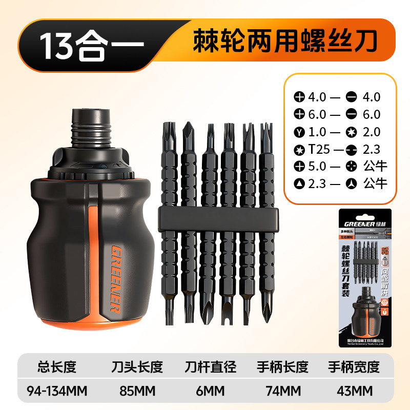 绿林棘轮螺丝刀套装多功能十字一字两用伸缩起子异形短螺丝批工具