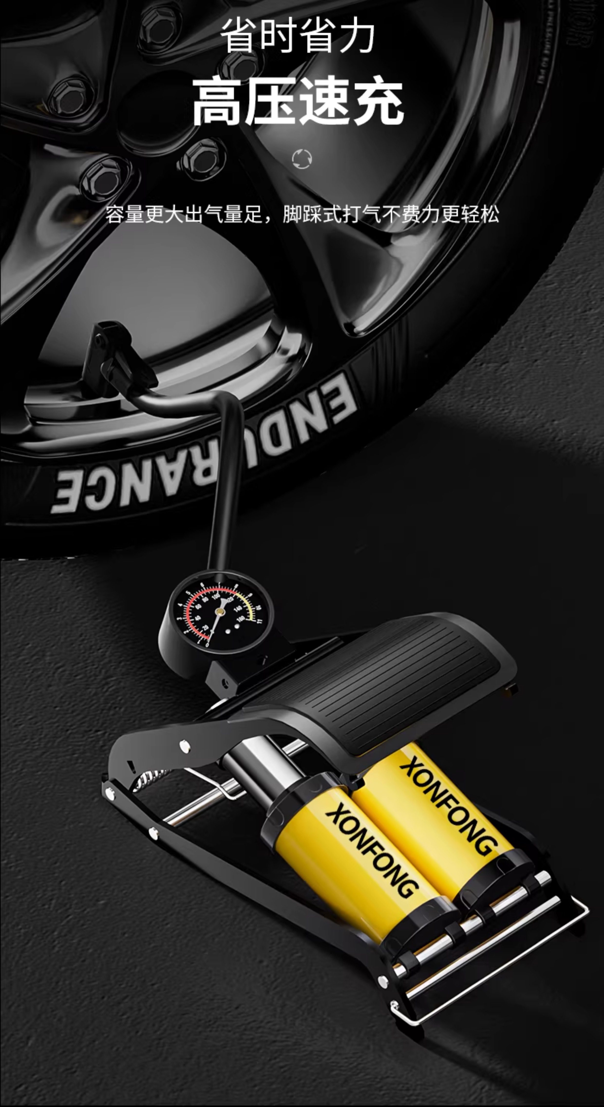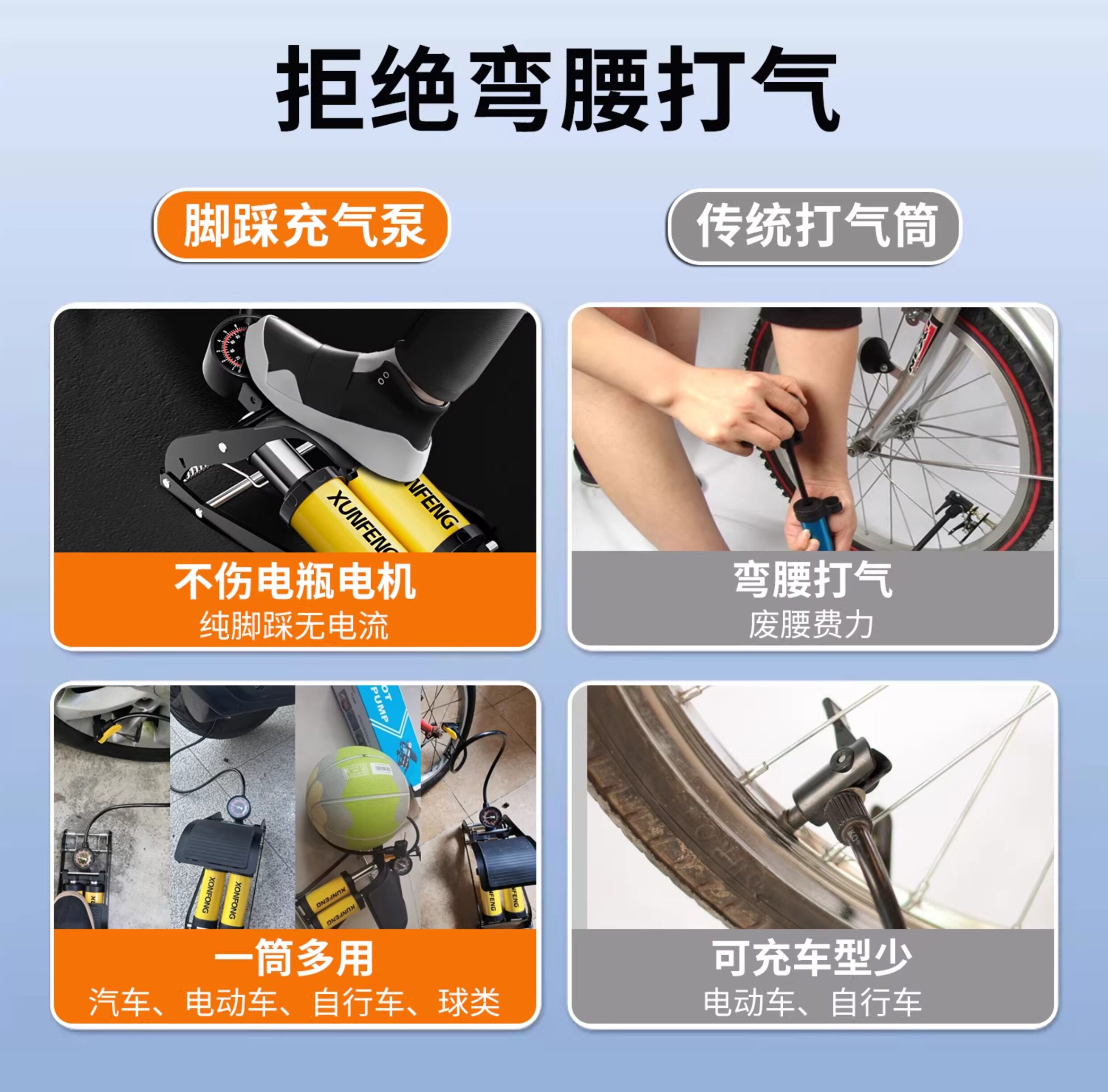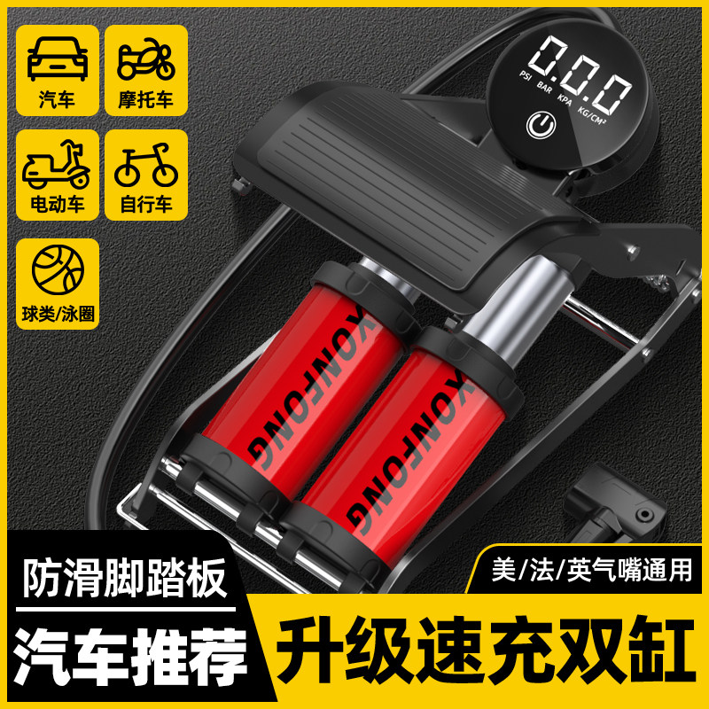 脚踩打气筒汽车小轿车用轮胎高压电动摩托车脚踏打气泵车载充气泵