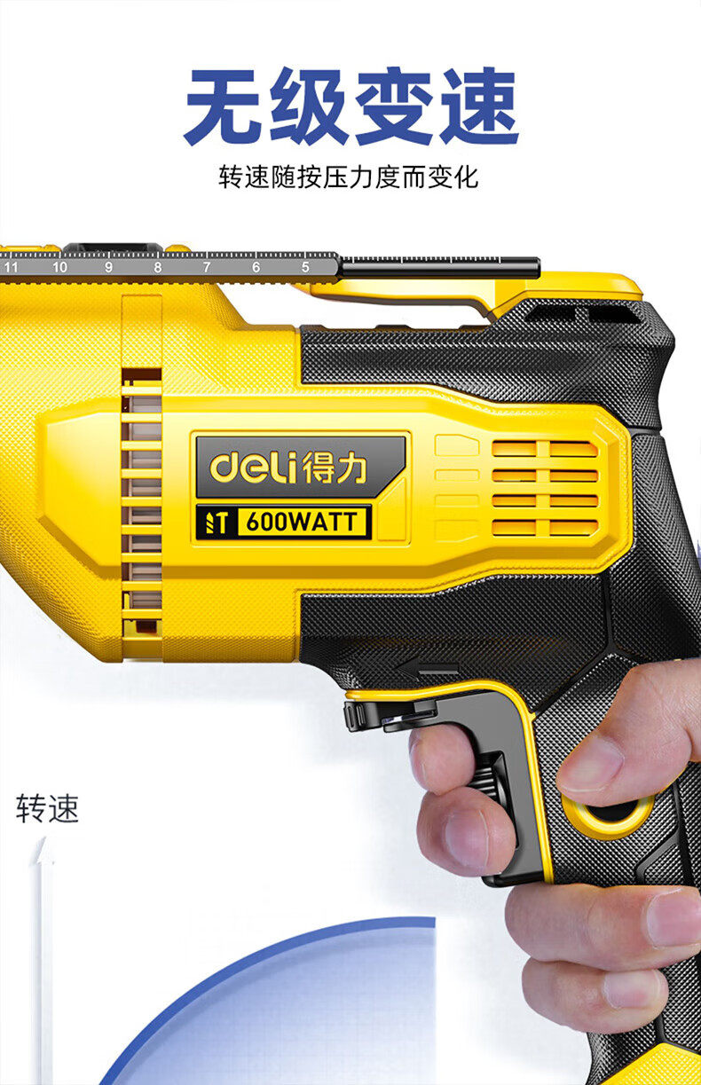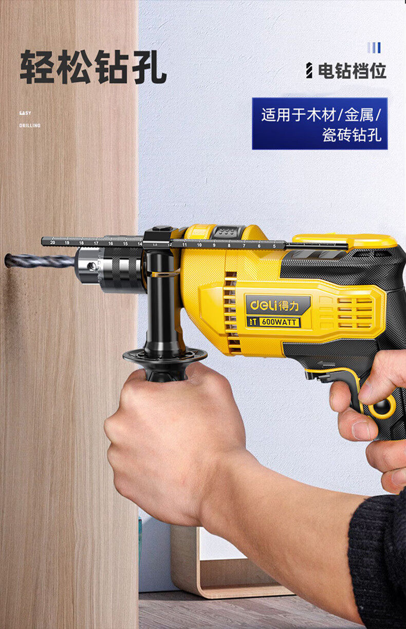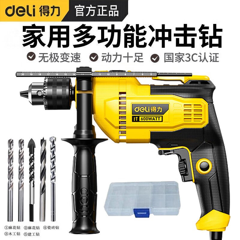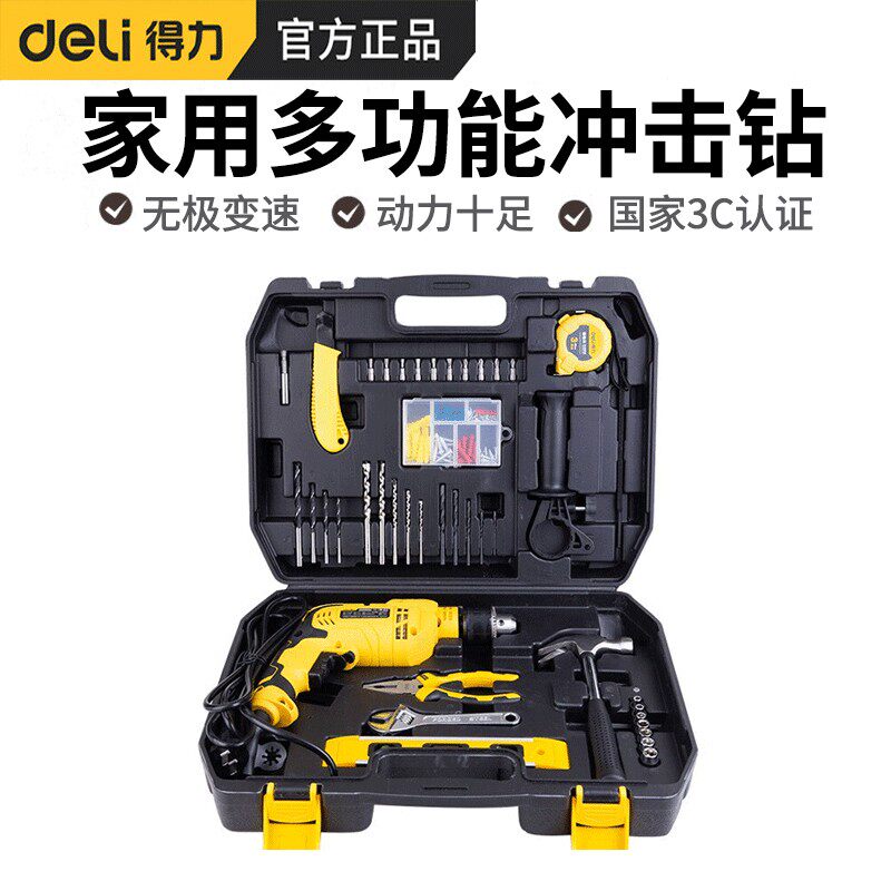 HomeProducts得力电钻冲击钻家用大功率手打混凝土可调速小型多功能工具箱套装