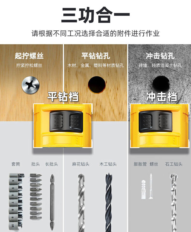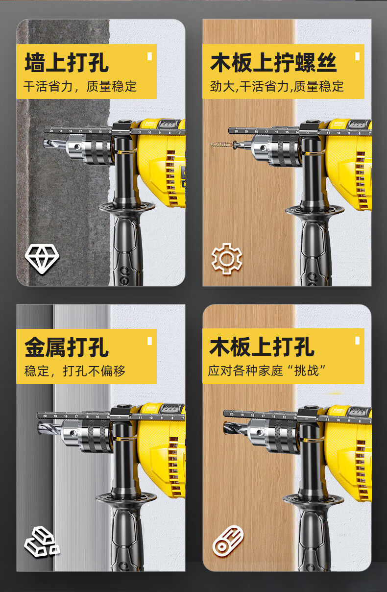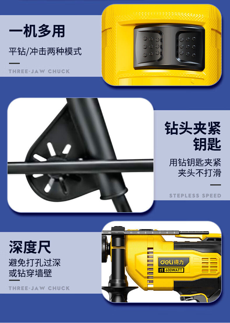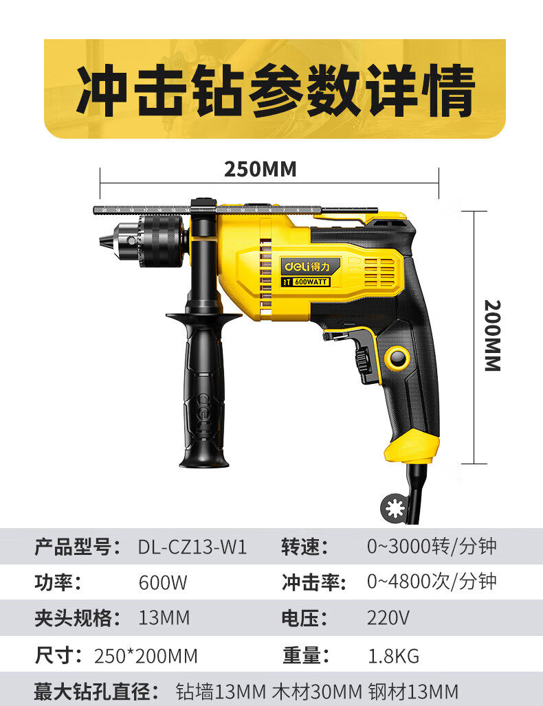 HomeProducts得力电钻冲击钻家用大功率手打混凝土可调速小型多功能工具箱套装