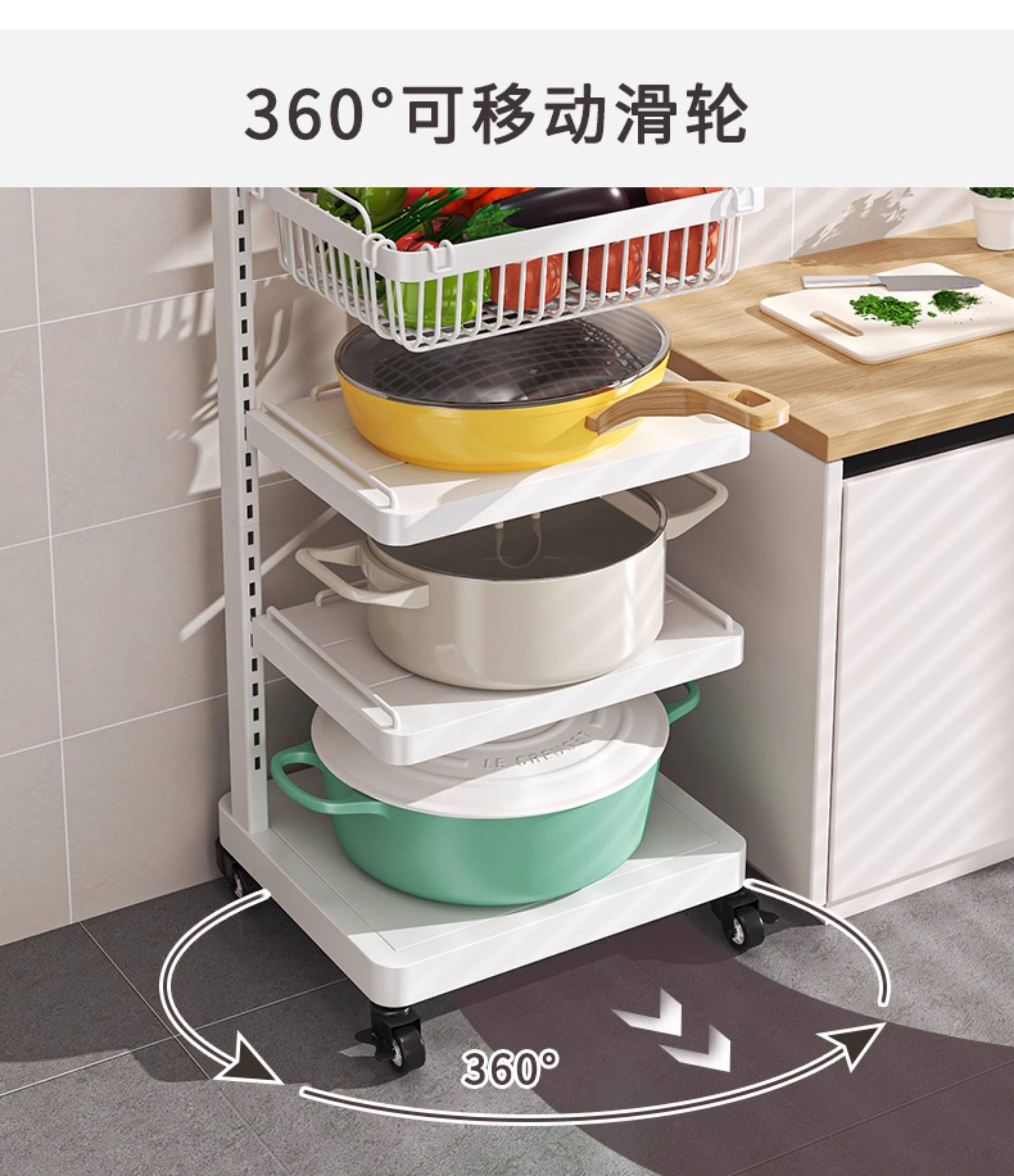 厨房锅架置物架家用落地多层水果蔬菜篮小推车多功能放锅具收纳架