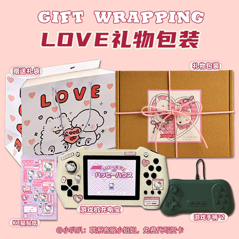 掌上游戏掌机迷你充电宝二合一怀旧方块复古网红Kitty520情人节