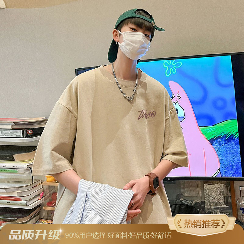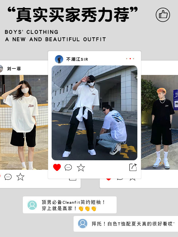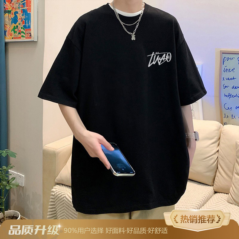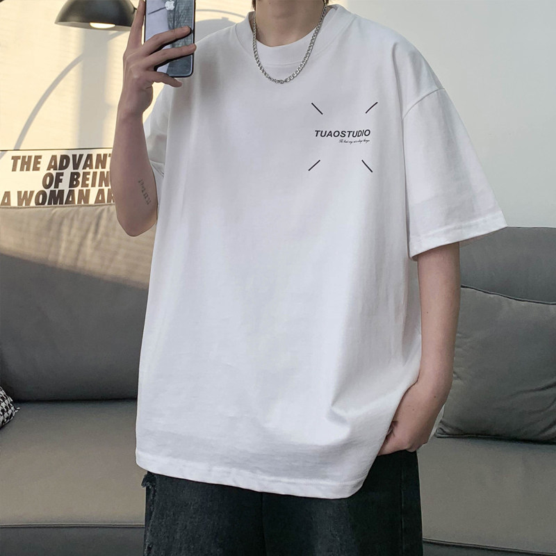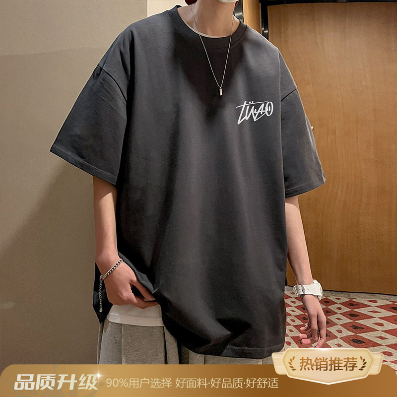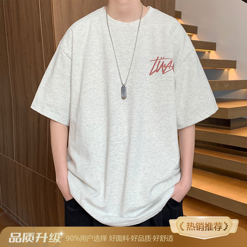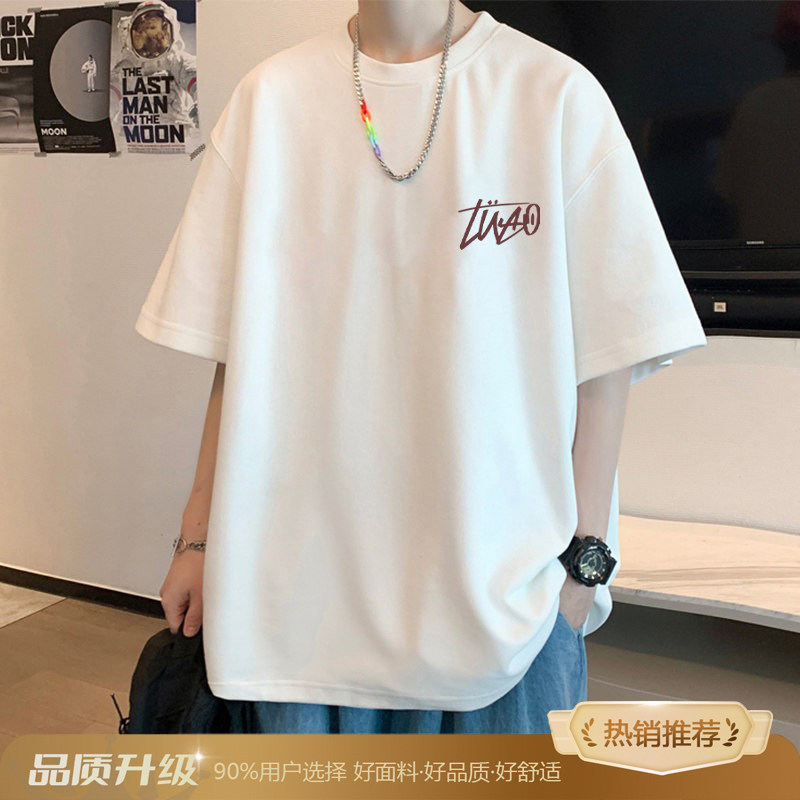 重磅短袖t恤男士2026新款夏季纯棉美式半袖潮流宽松白色百搭衣服