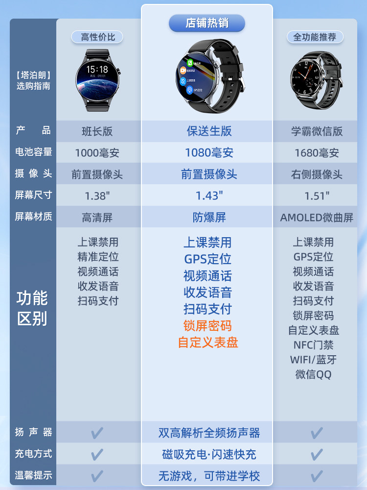 【家长优选】学生电话手表初中生专用高中青少年儿童定位手表智能电话只能接打无游戏超长续航官方旗舰店正品