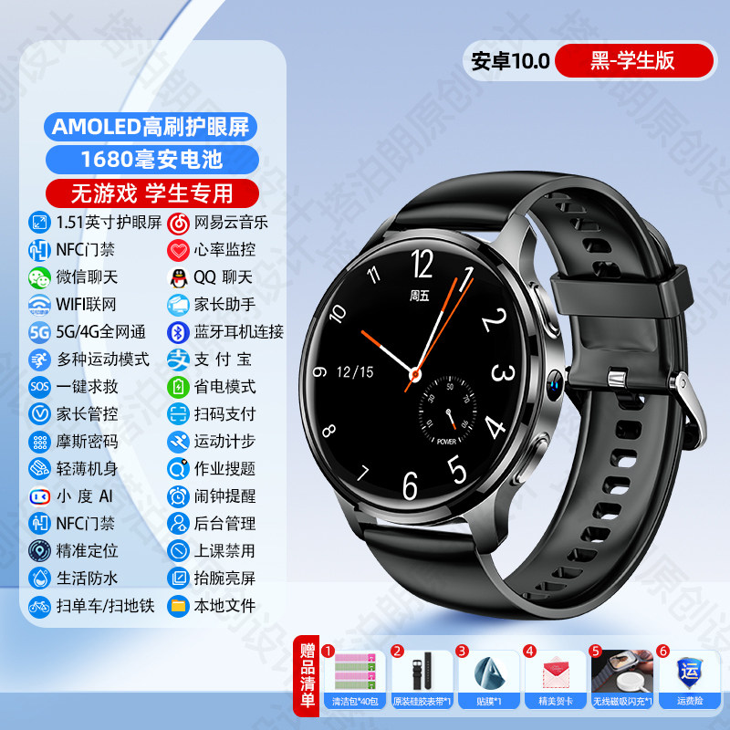 【旗舰版丨黑】全彩屏+视频通话+精准定位+闹钟+高清通话+上课禁用
