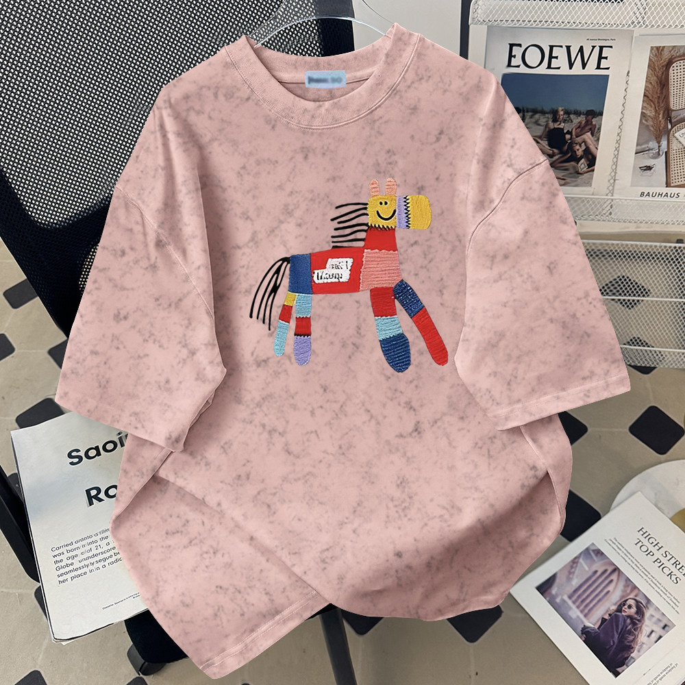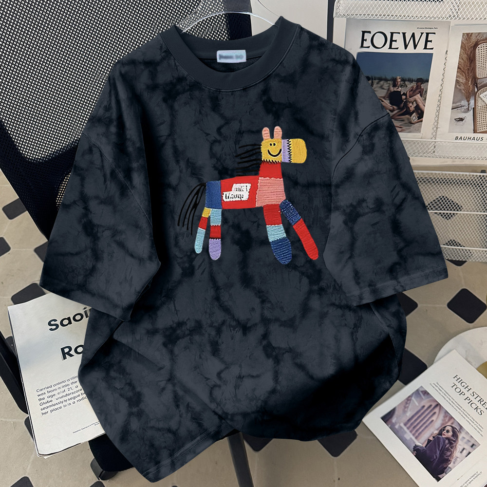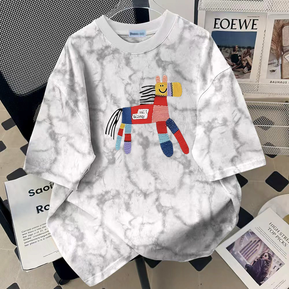 HomeProducts甜美清新扎染圆领短袖男女同款时尚洋气宽松显瘦遮肉夏季休闲百搭