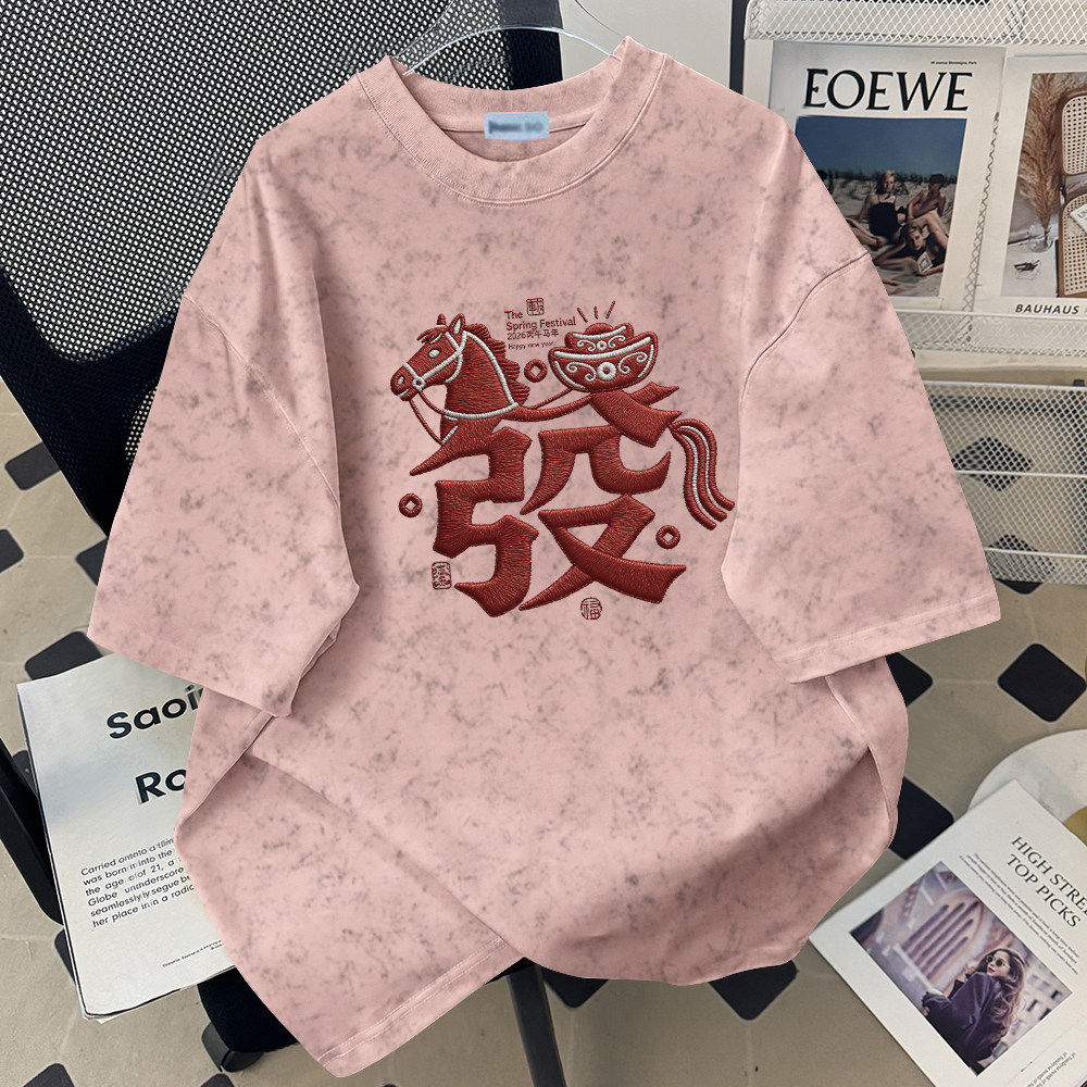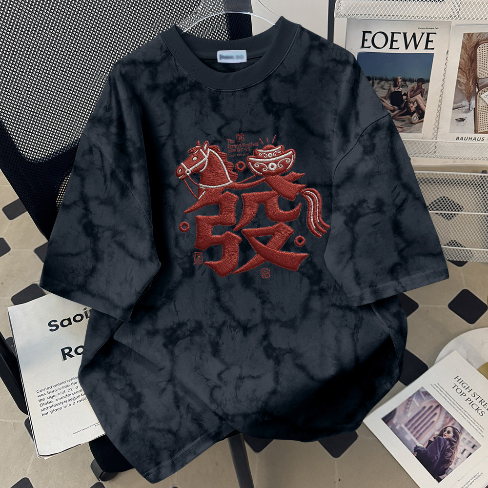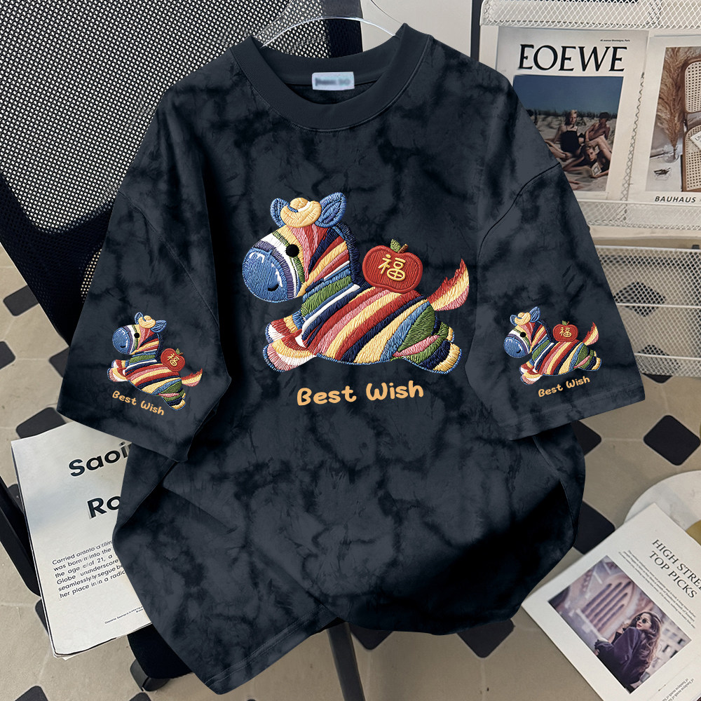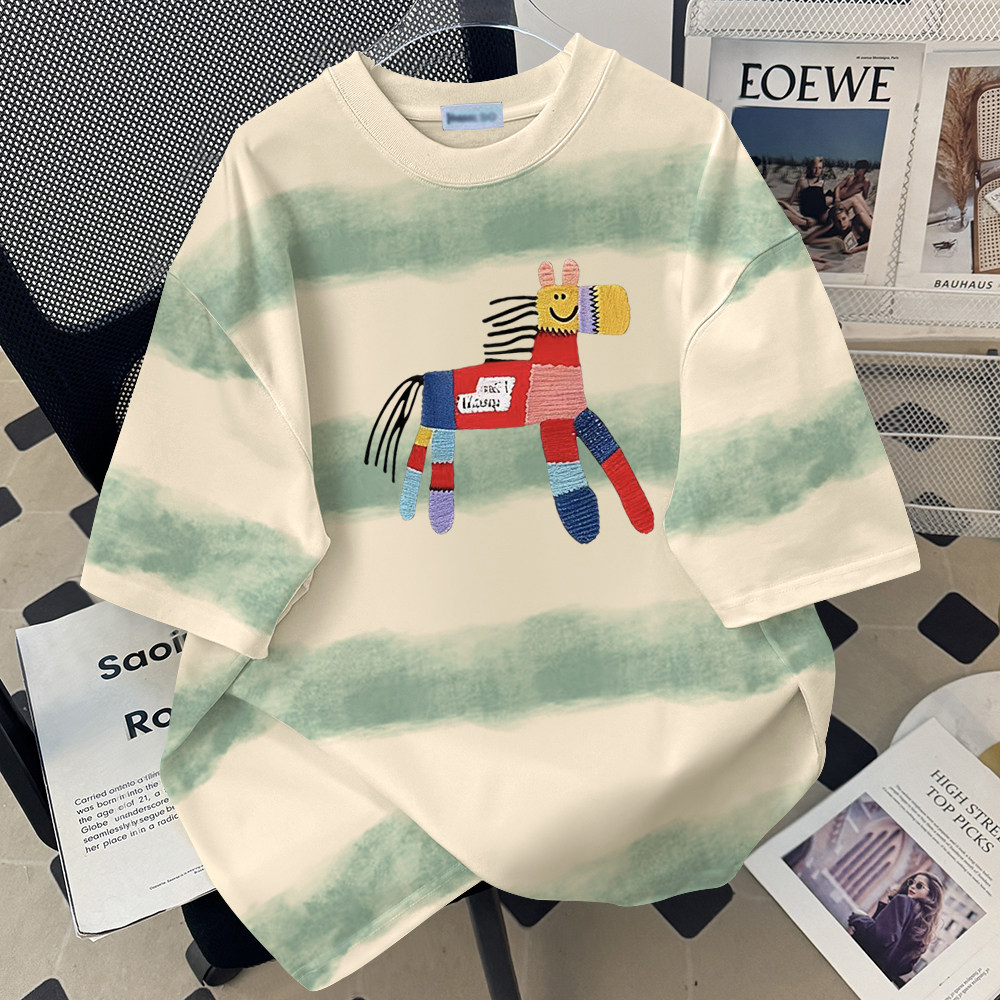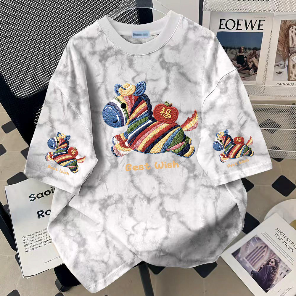 甜美清新扎染圆领短袖男女同款时尚洋气宽松显瘦遮肉夏季休闲百搭