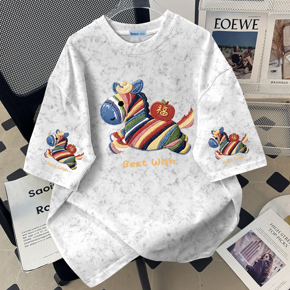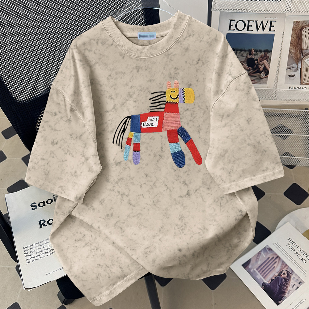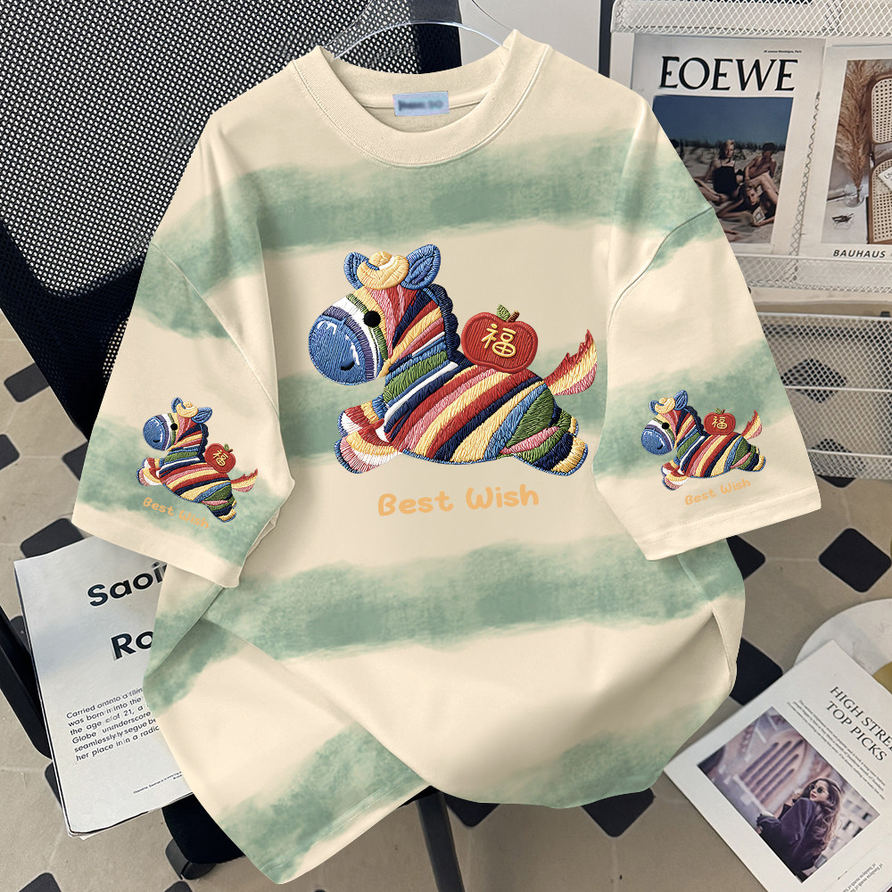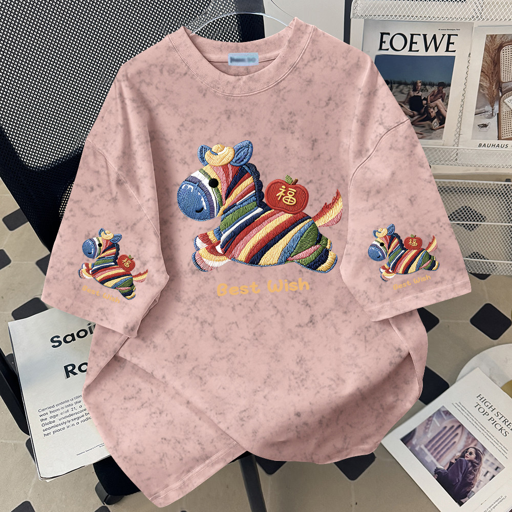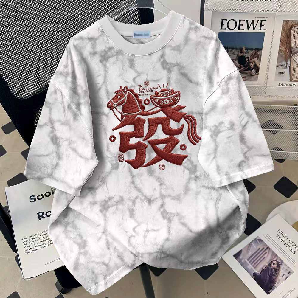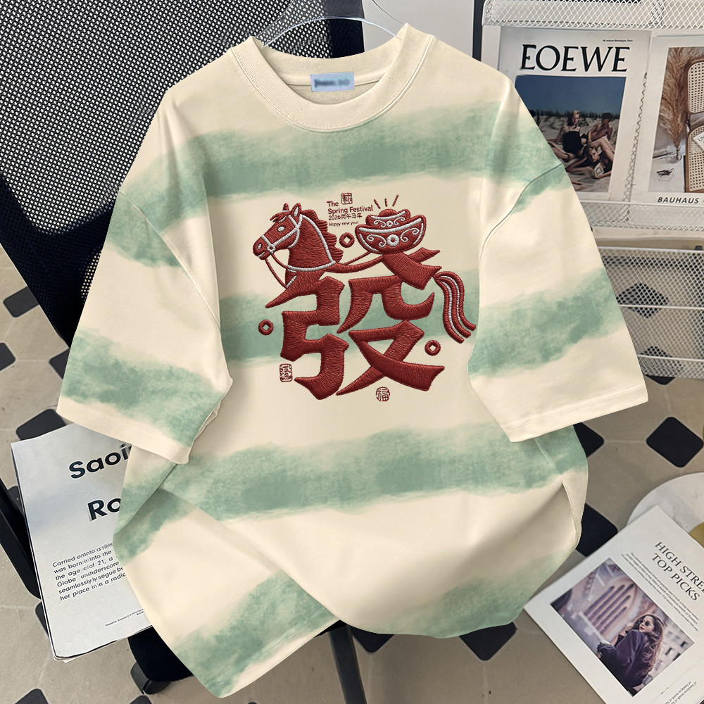 甜美清新扎染圆领短袖男女同款时尚洋气宽松显瘦遮肉夏季休闲百搭