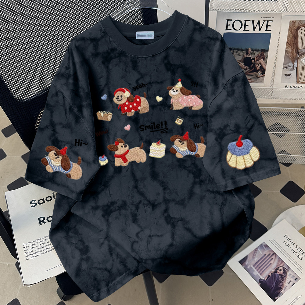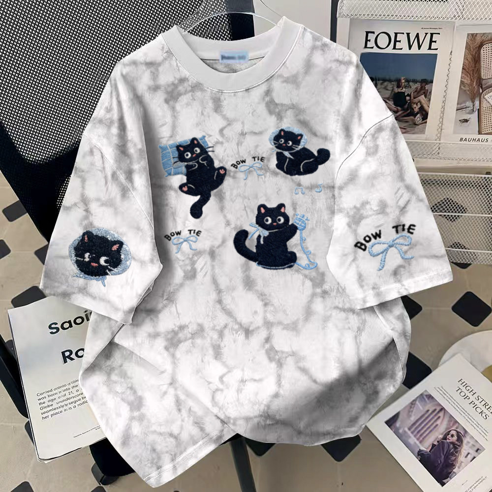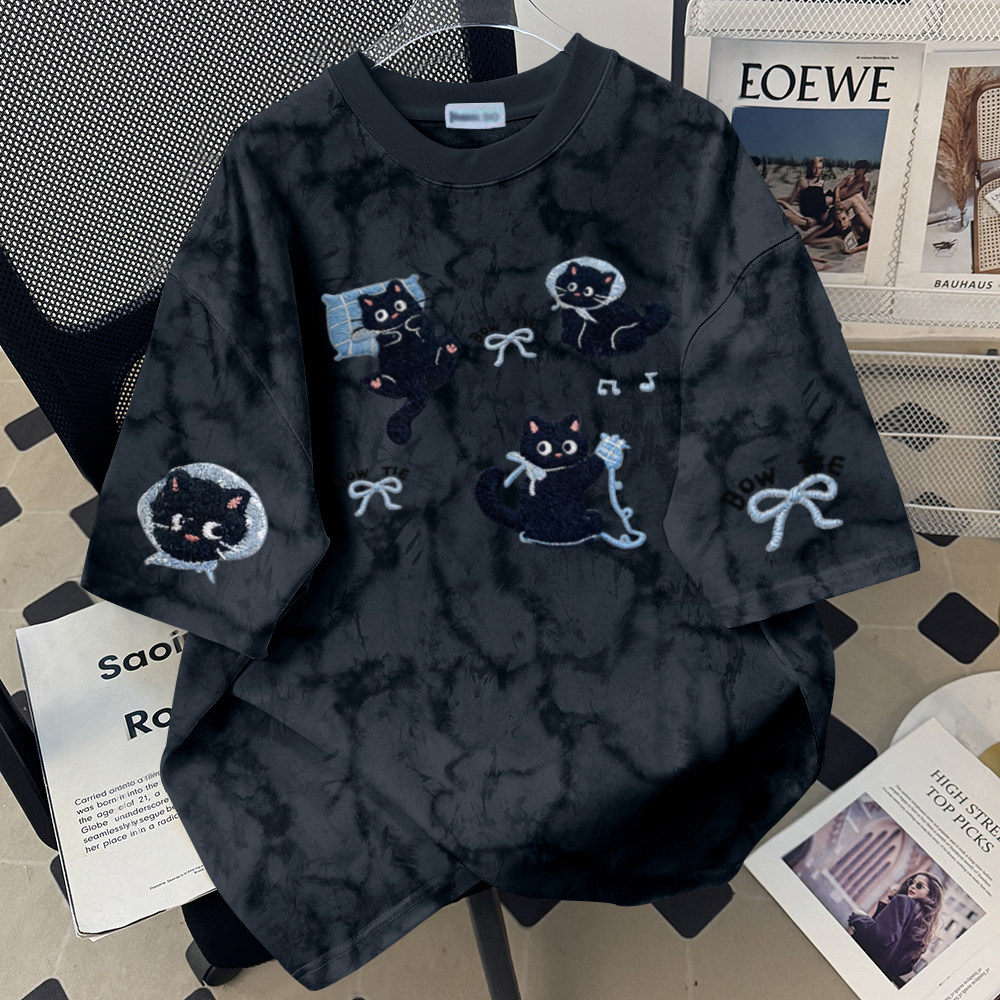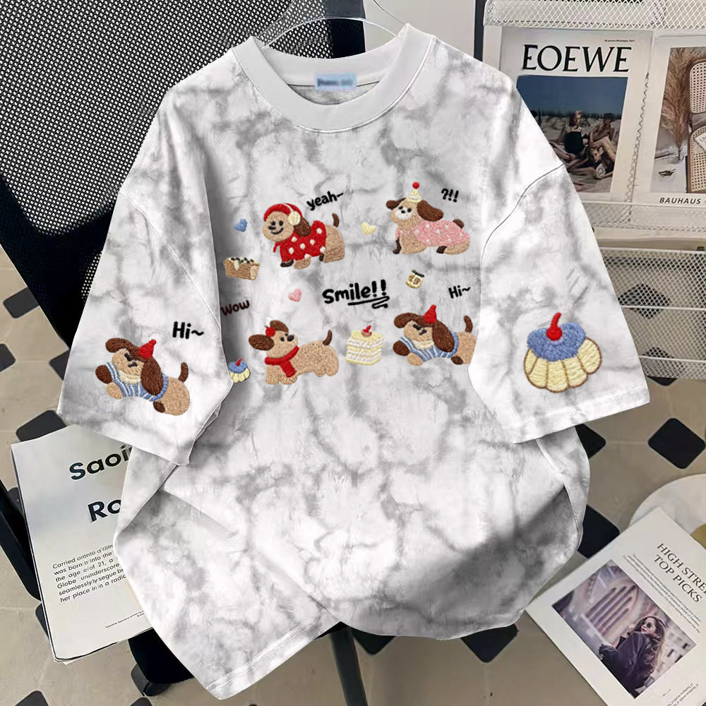 圆领T恤男女扎染宽松显瘦洋气时尚夏季复古休闲舒适简约气质百搭