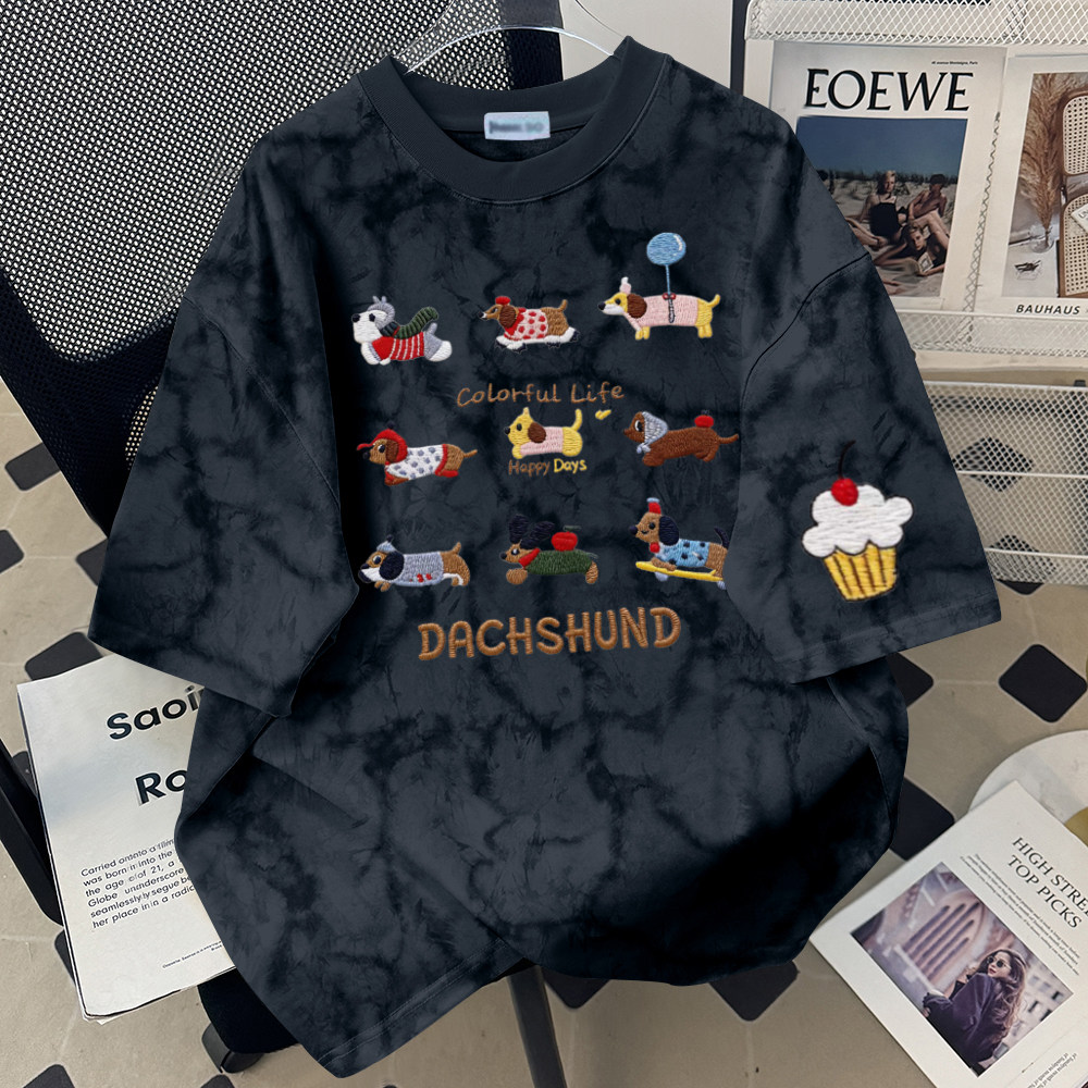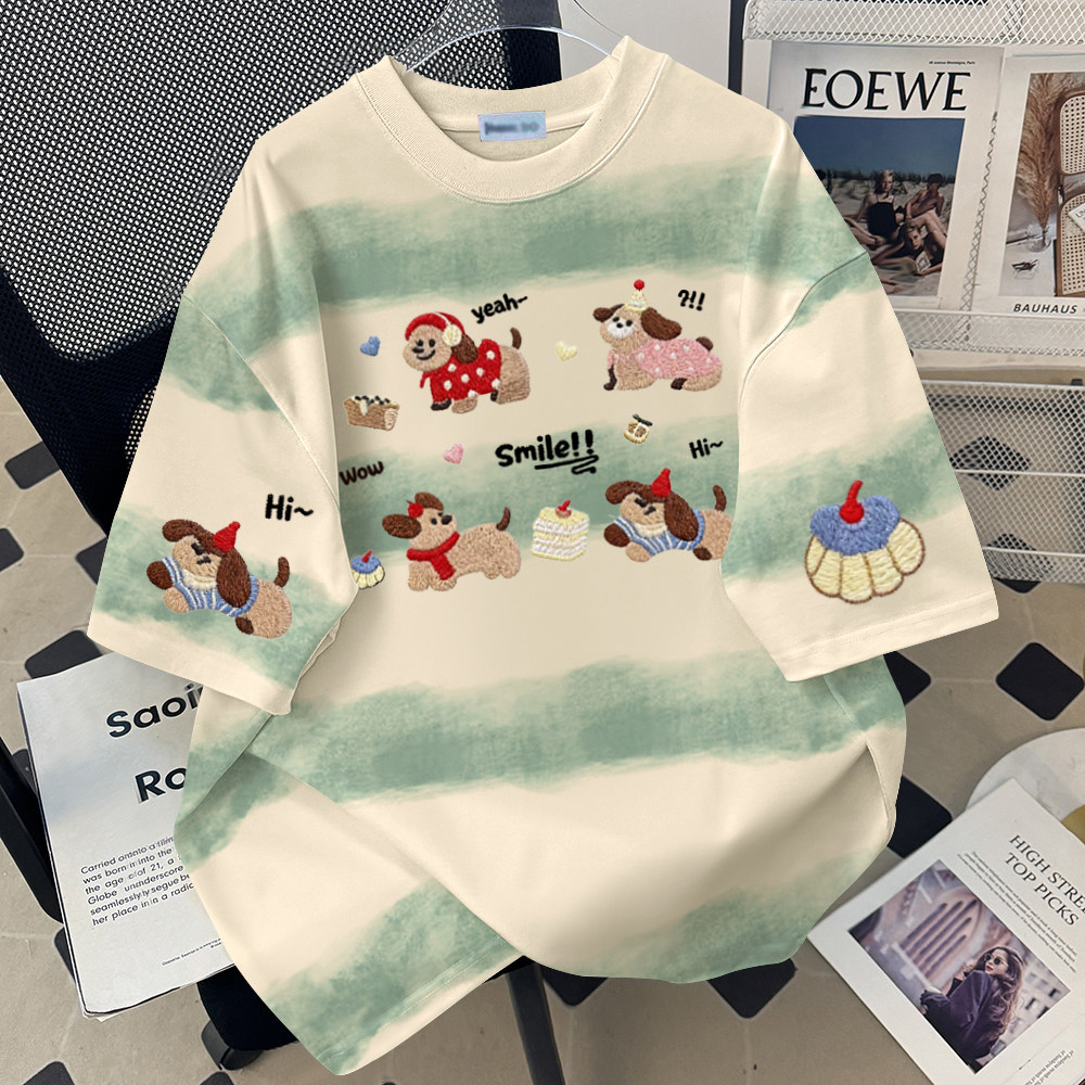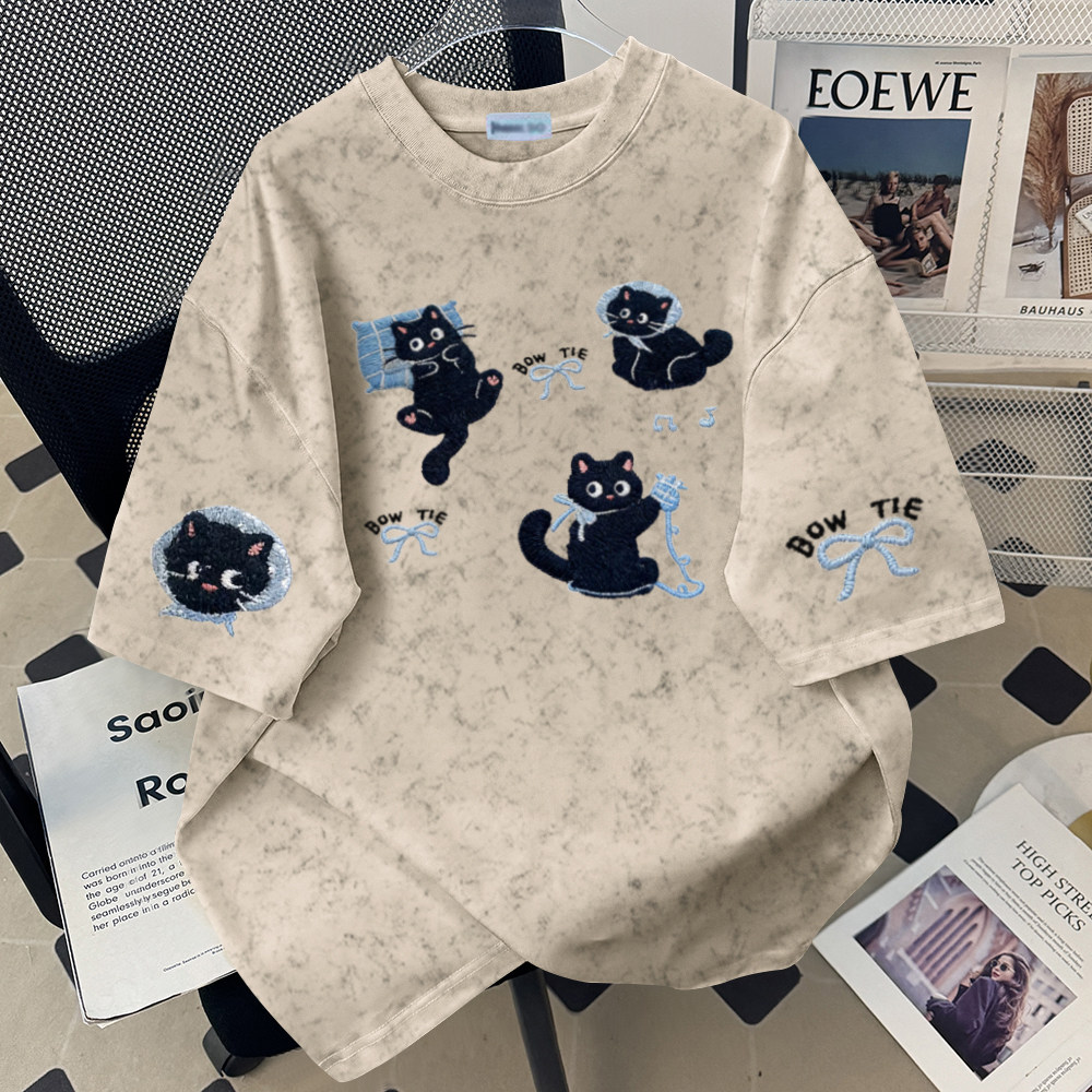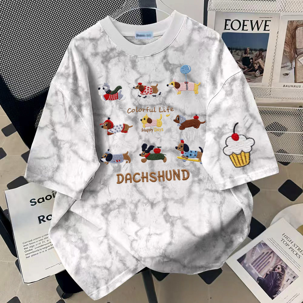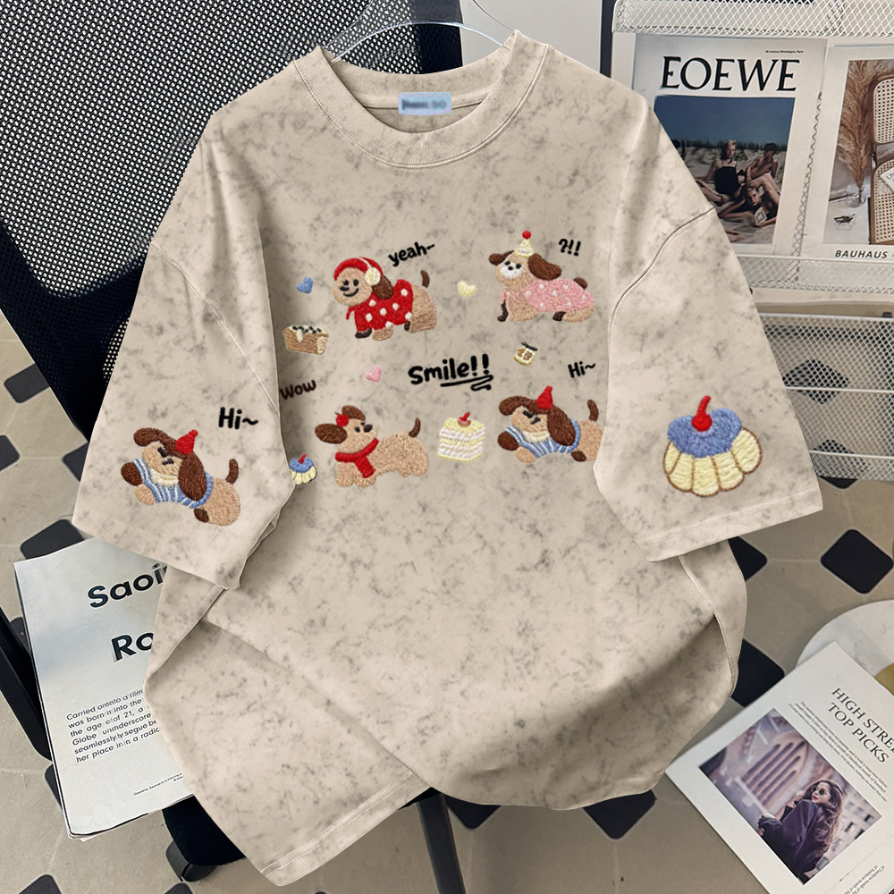 圆领T恤男女扎染宽松显瘦洋气时尚夏季复古休闲舒适简约气质百搭