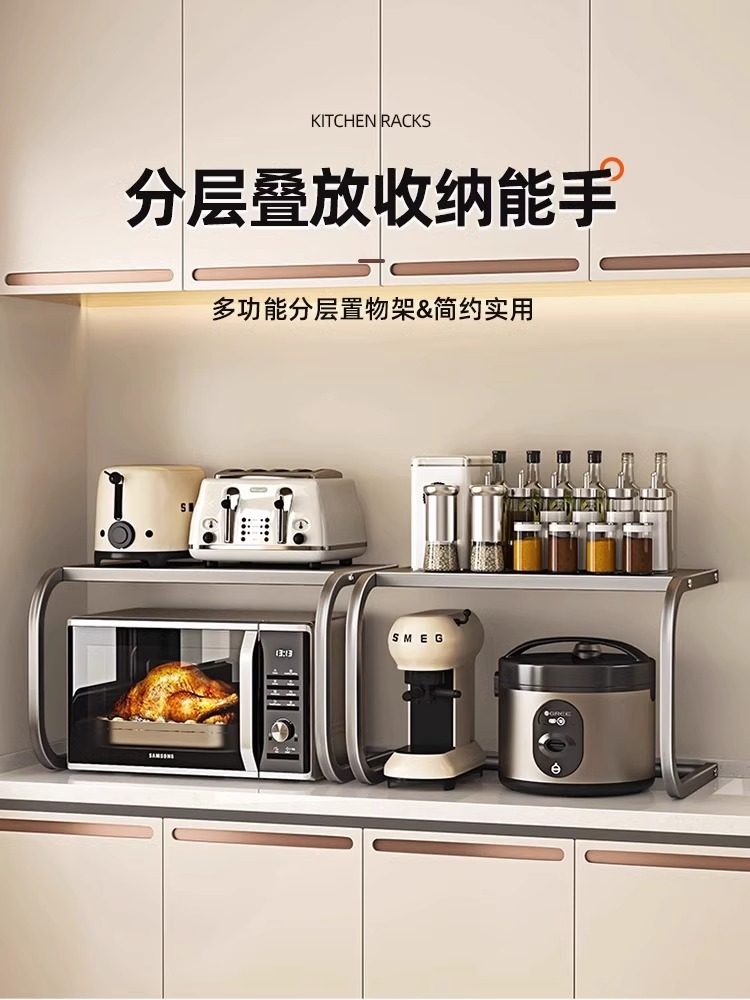 微波炉置物架厨房多功能台面烤箱架子一体家用多层电饭锅收纳支架